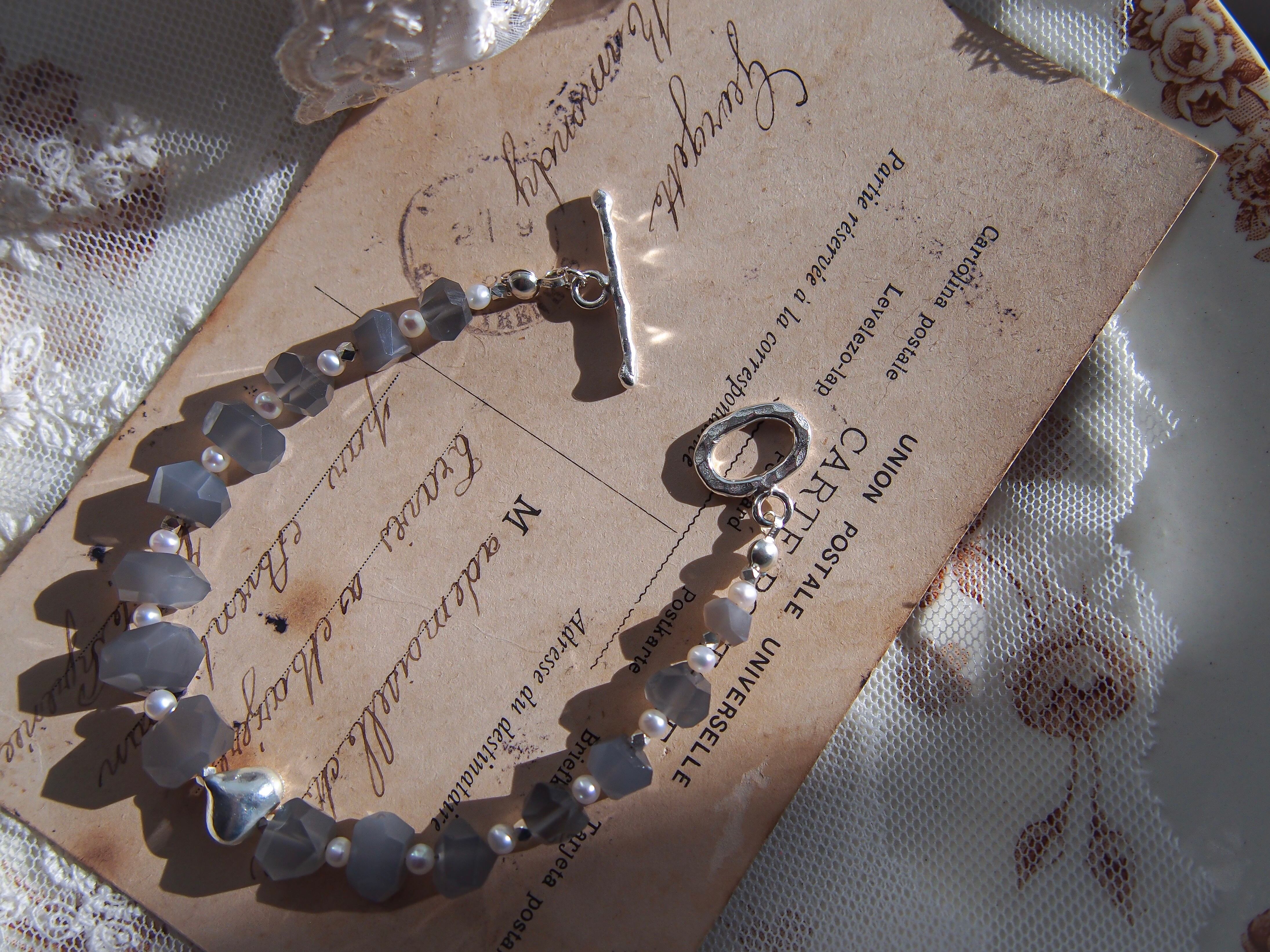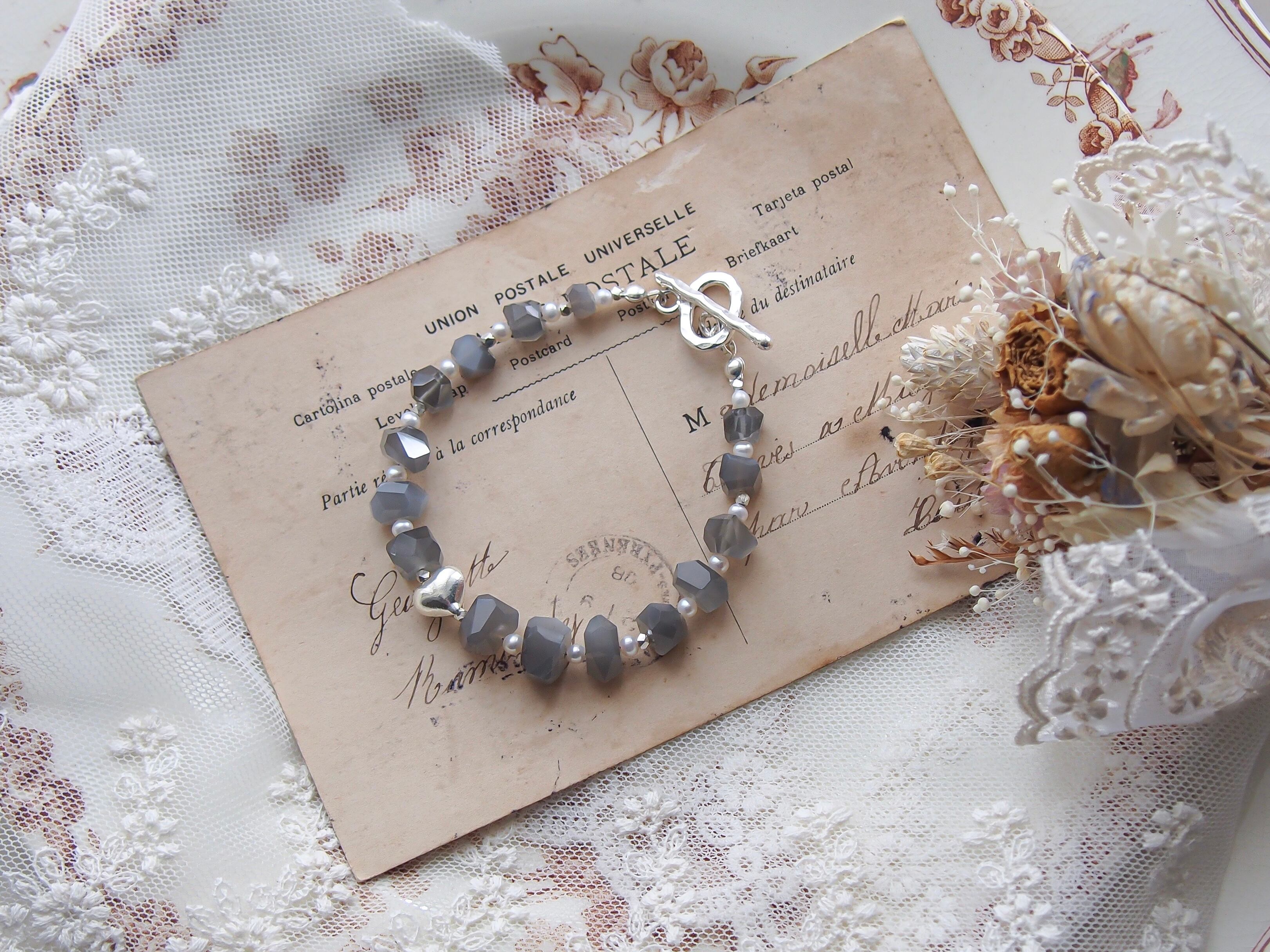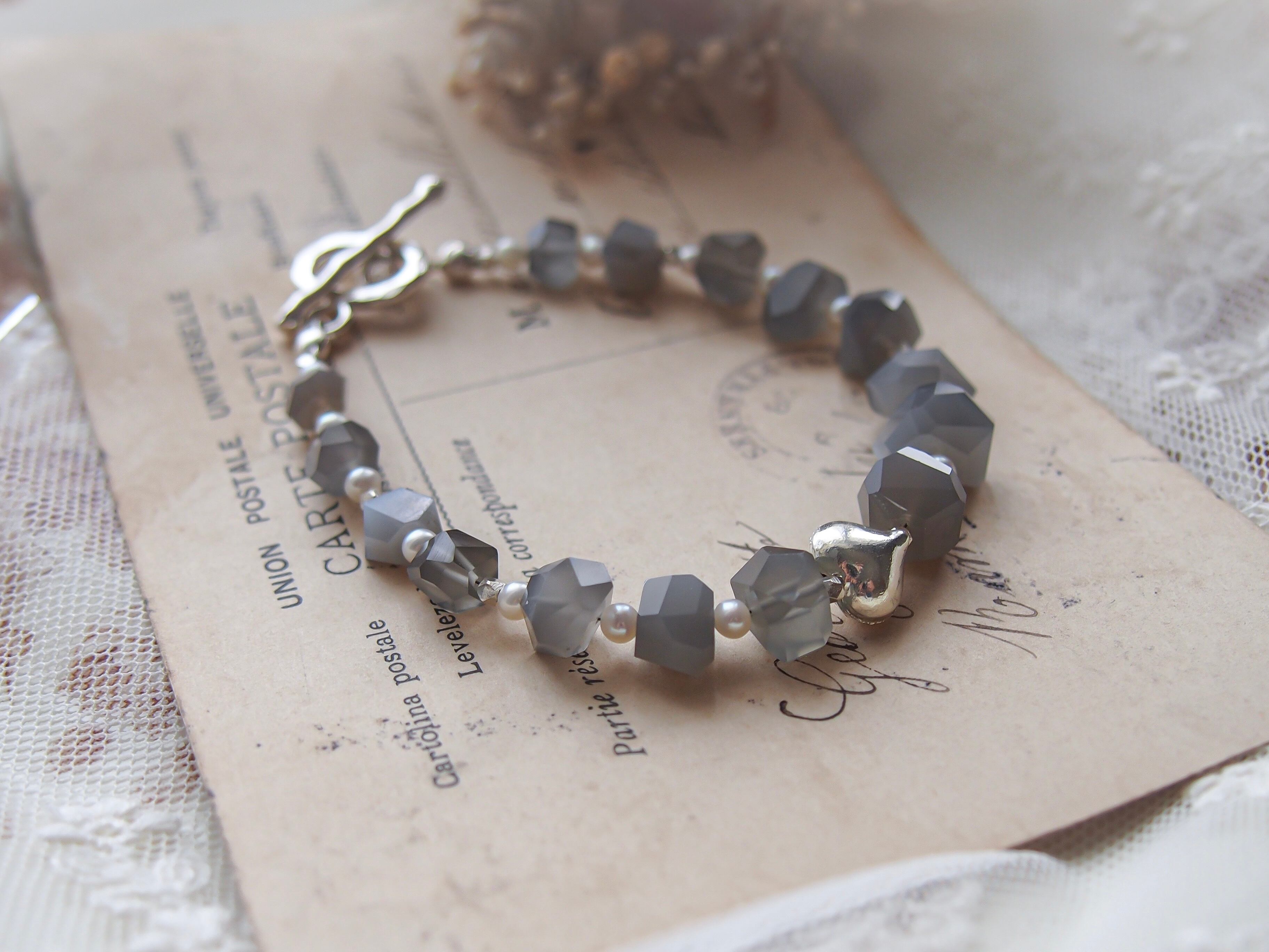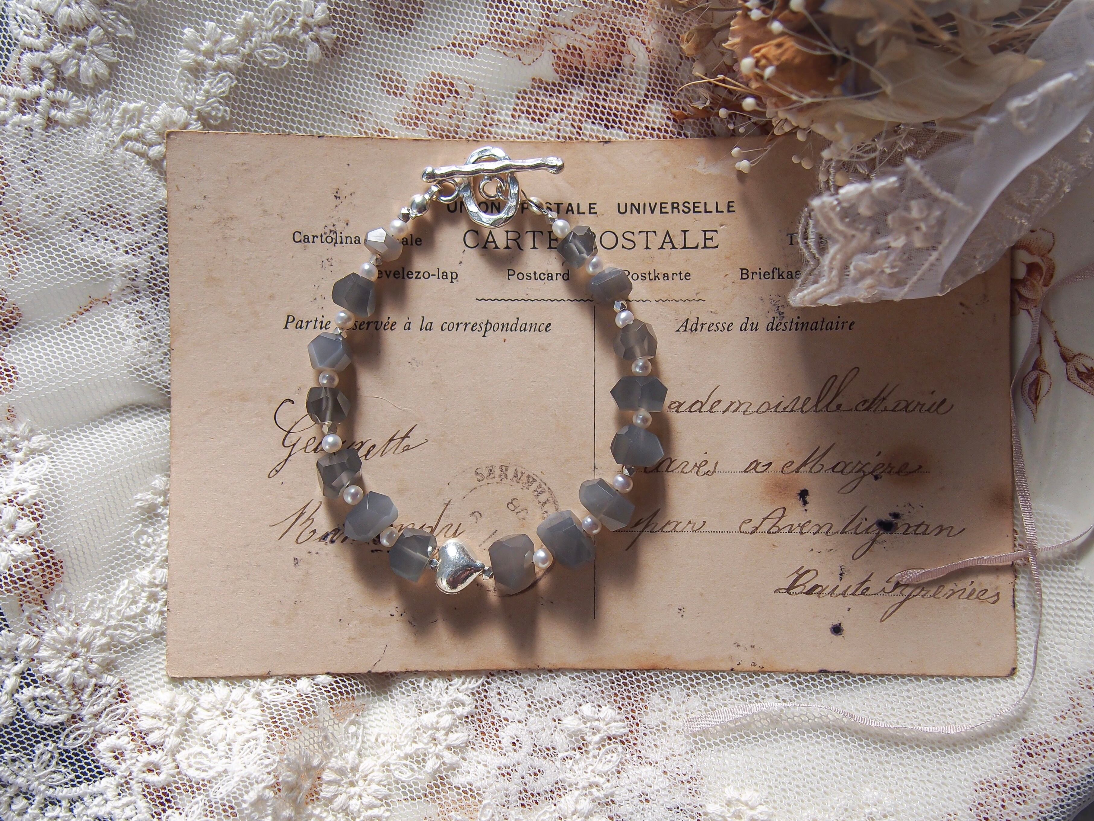 【 Edge of Mist 】高品質 グレームーンストーン × カレンシルバー マンテル ブレスレット