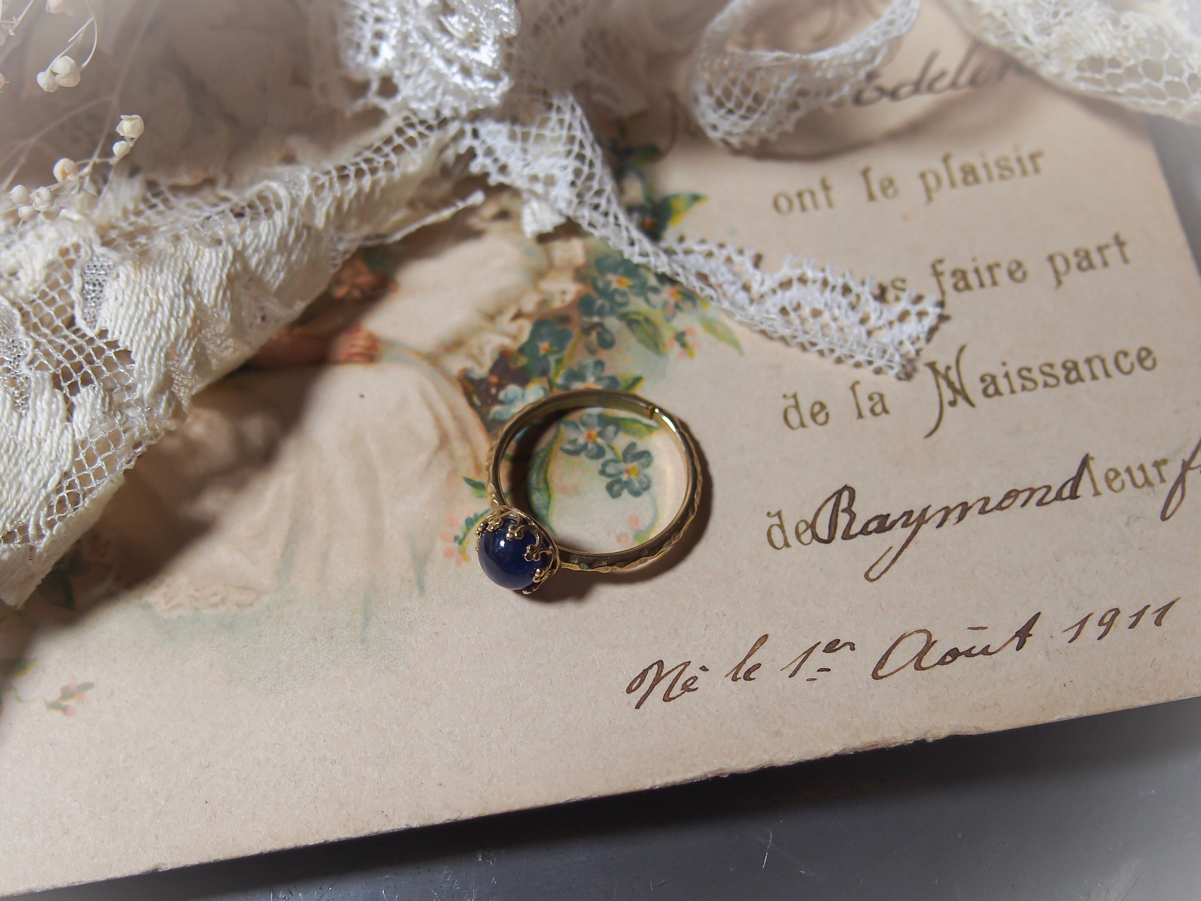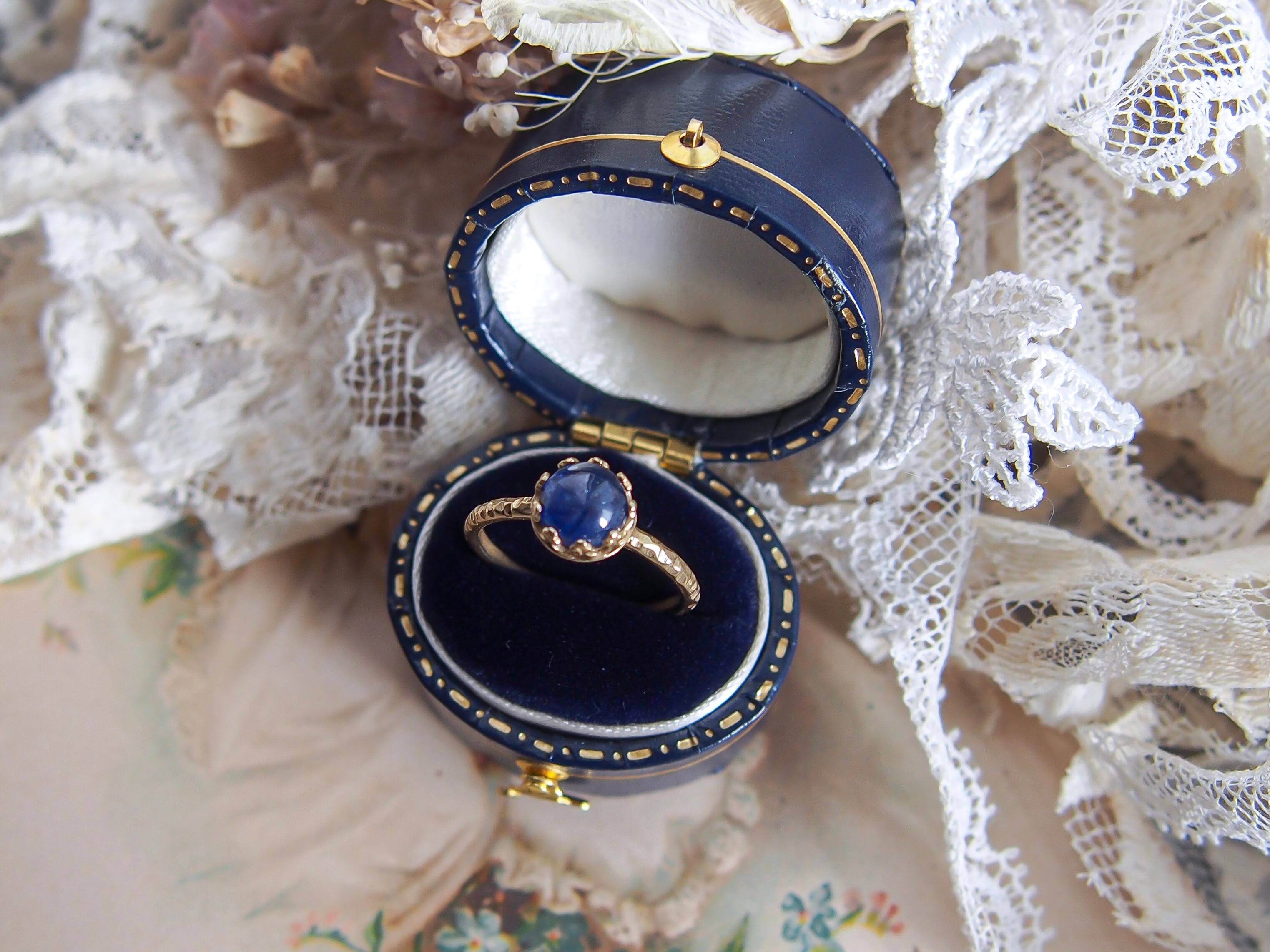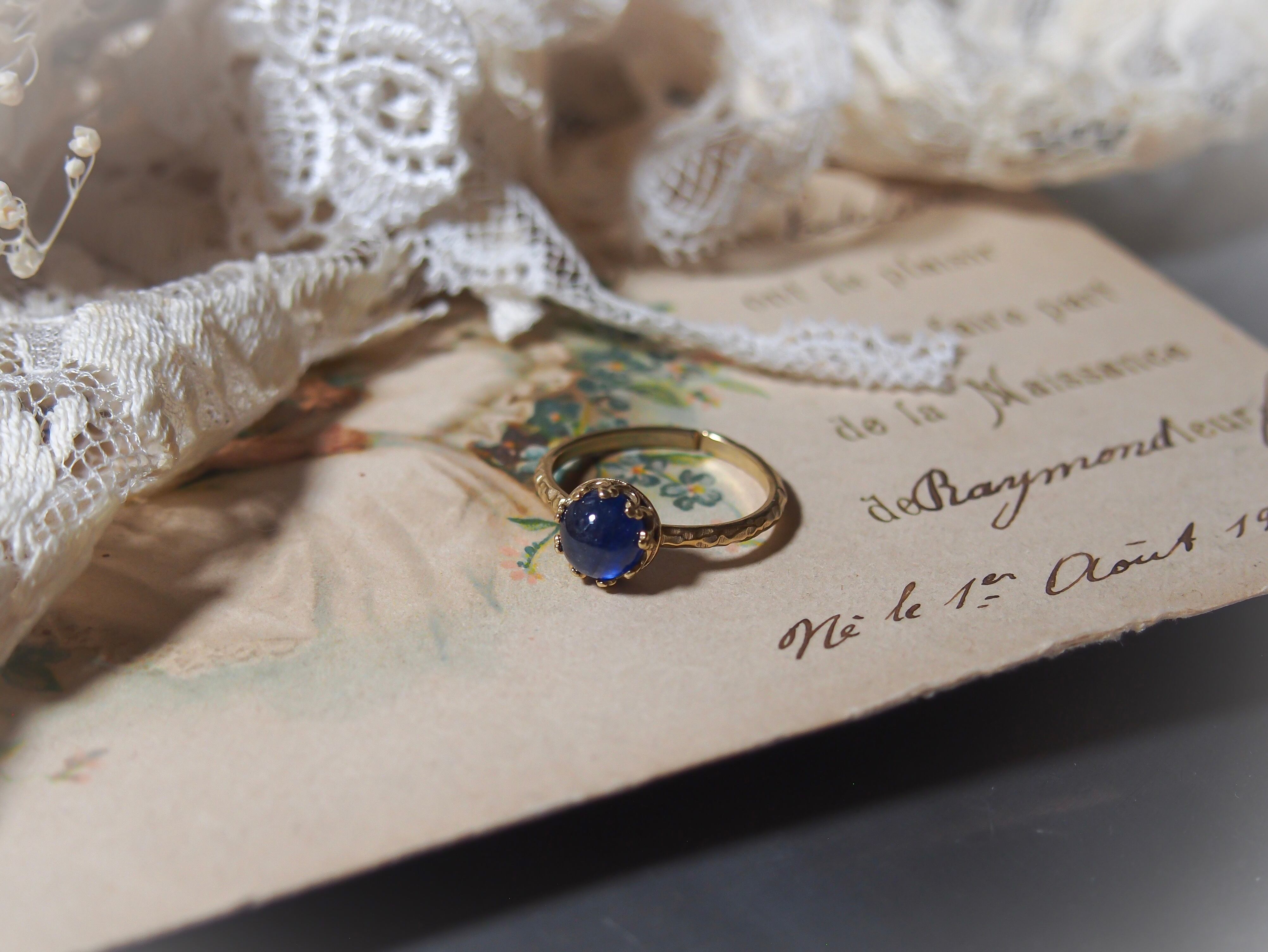 【 紺碧の王冠 - blue sapphire - 】ブルーサファイア クラウンリング|JBB社製 brass ✴︎ ゴールド ✴︎ 9月誕生石