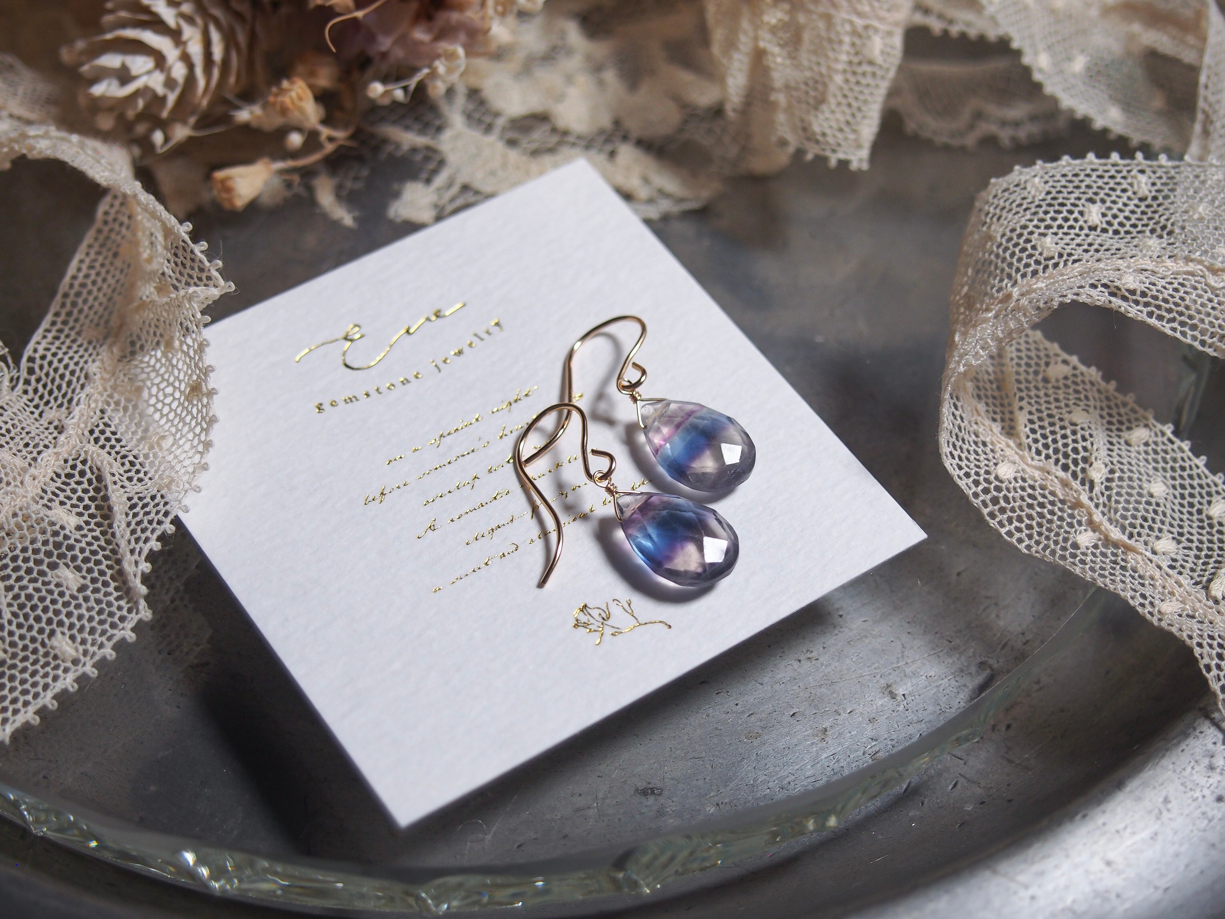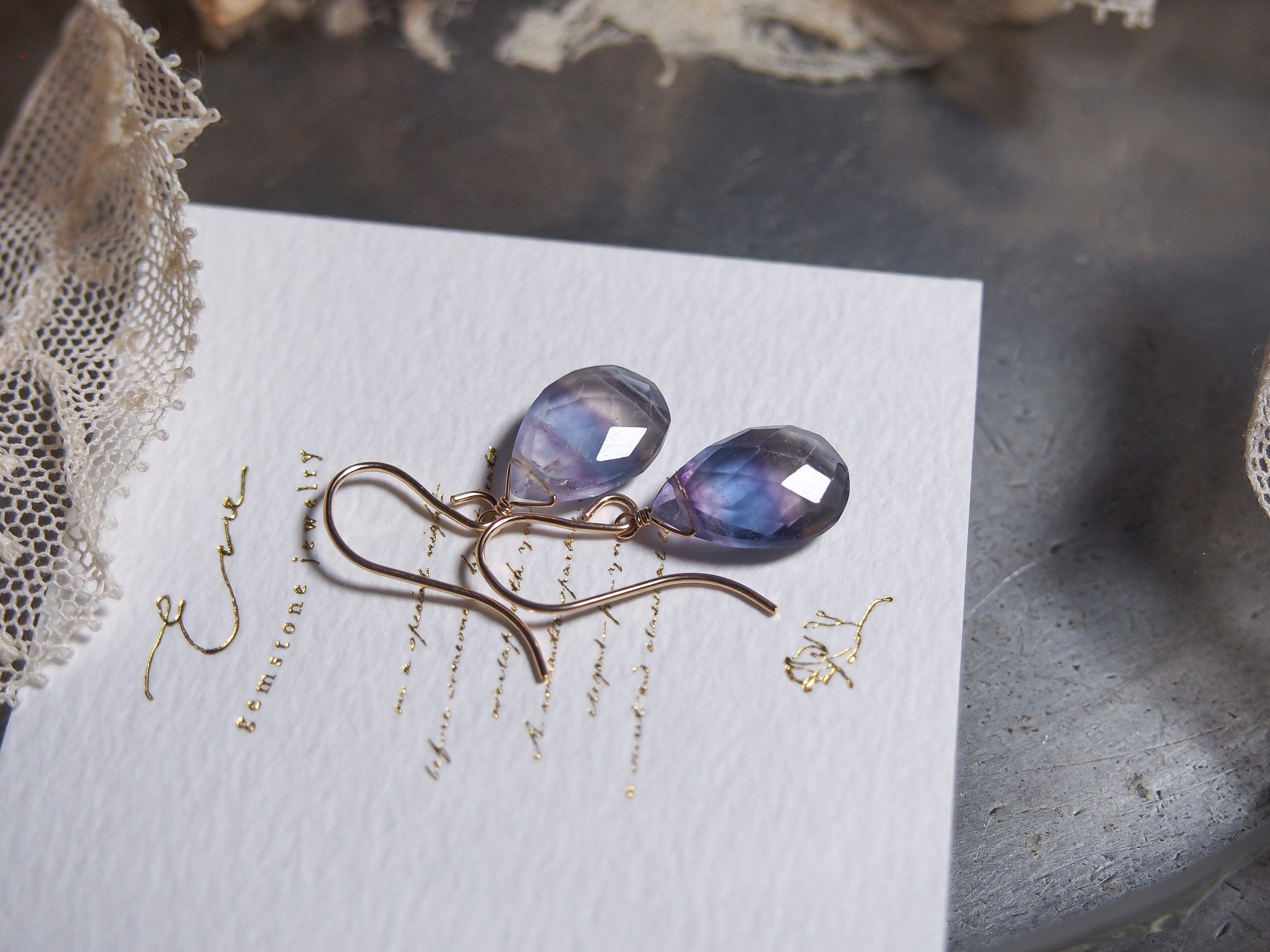 type a.:蒼銀|フローライト ドロップ ピアス/イヤリング|14kgf 天然石