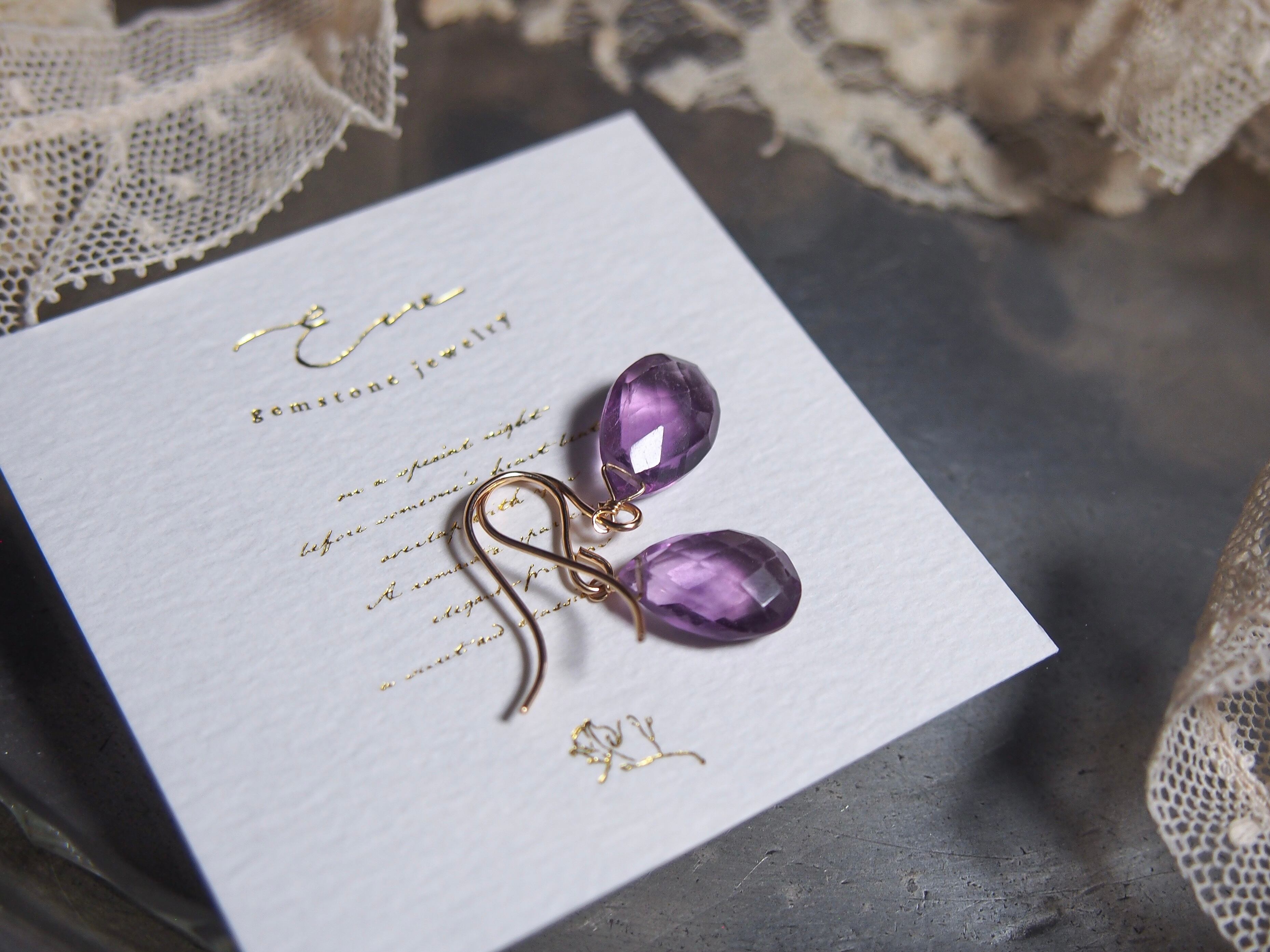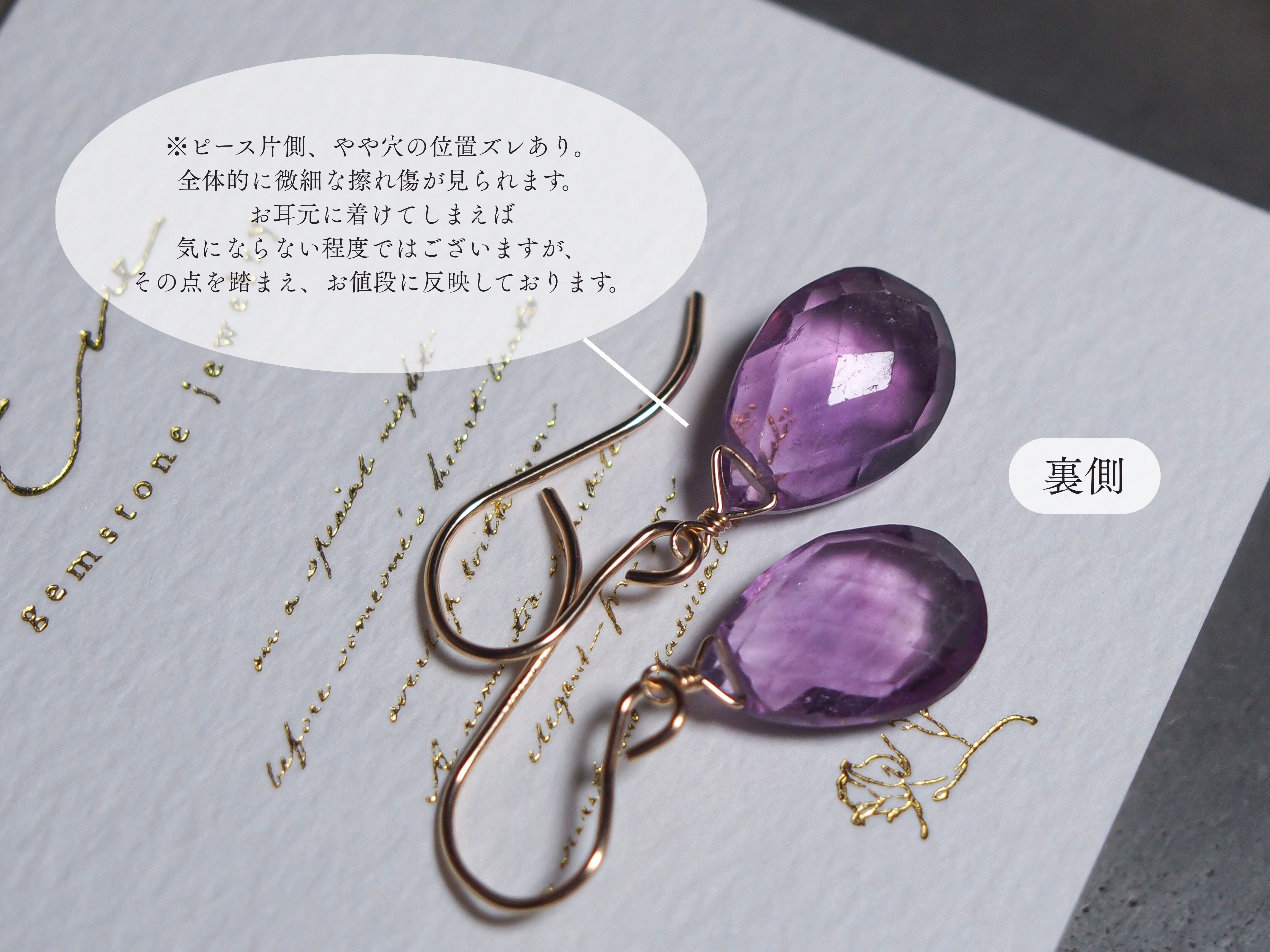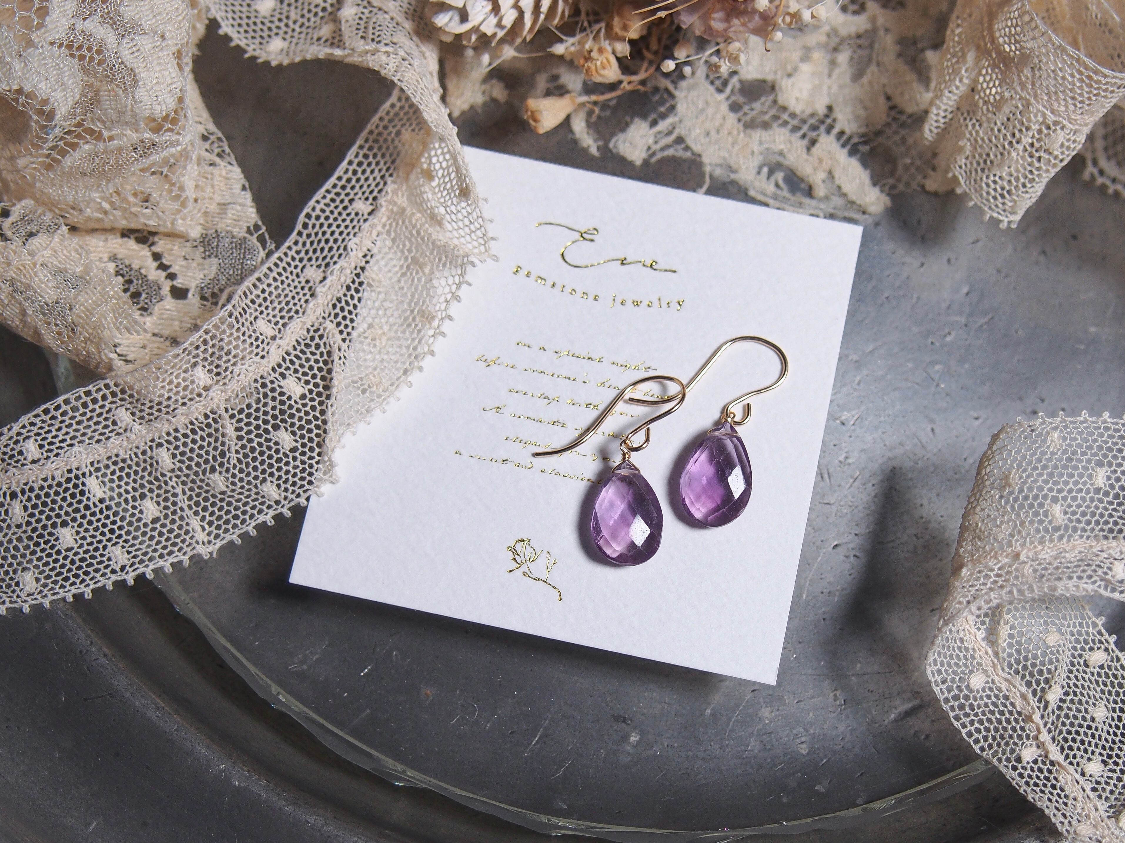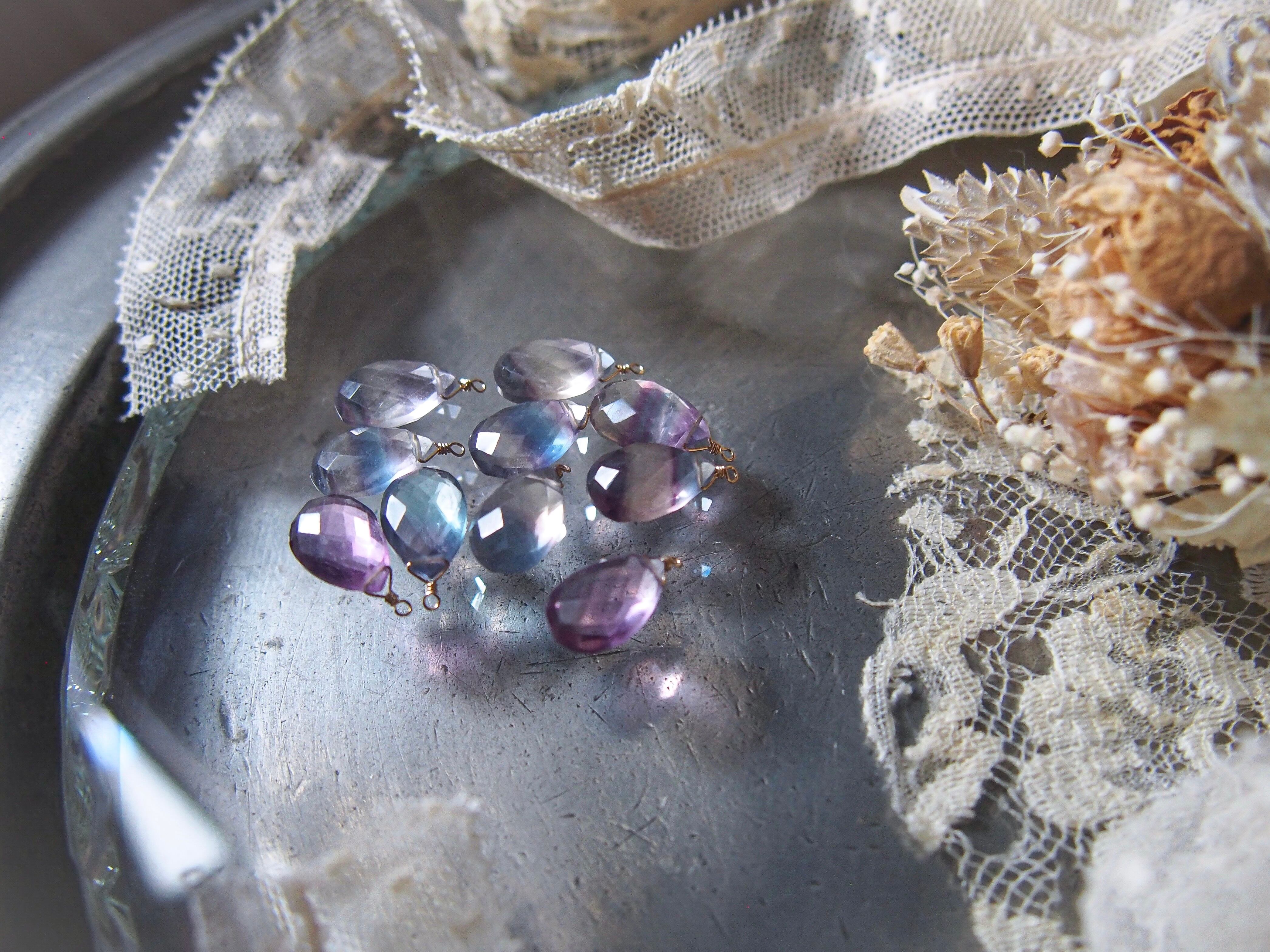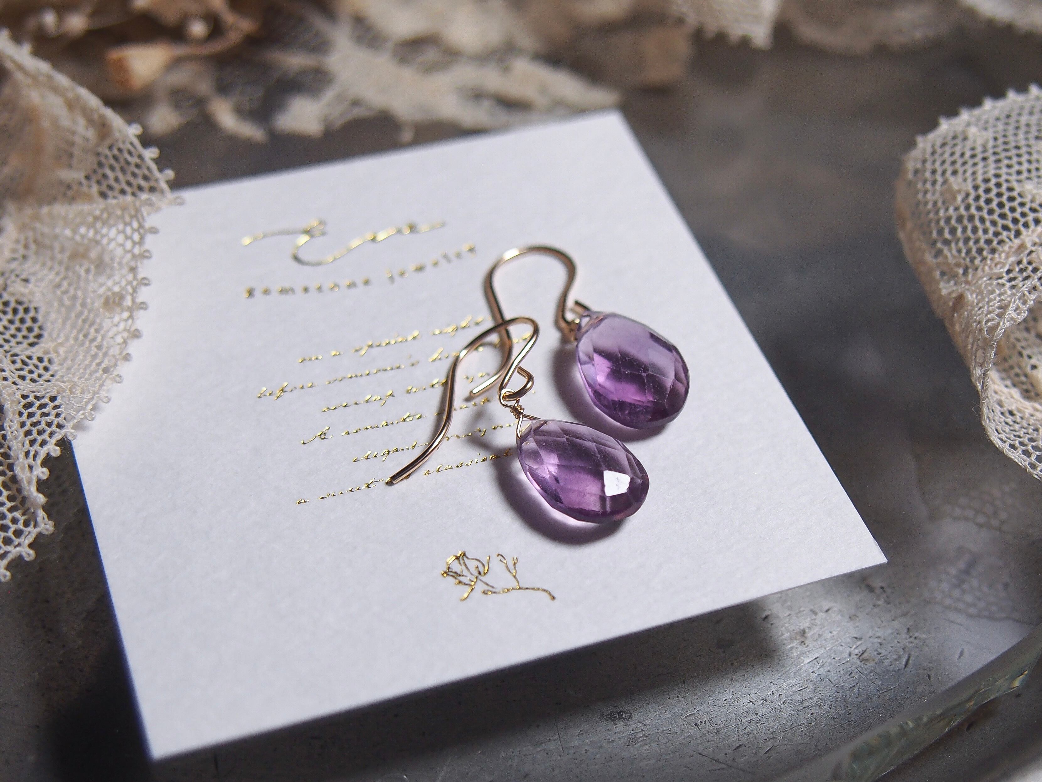 type e.:艶紫|フローライト ドロップ ピアス/イヤリング|14kgf 天然石