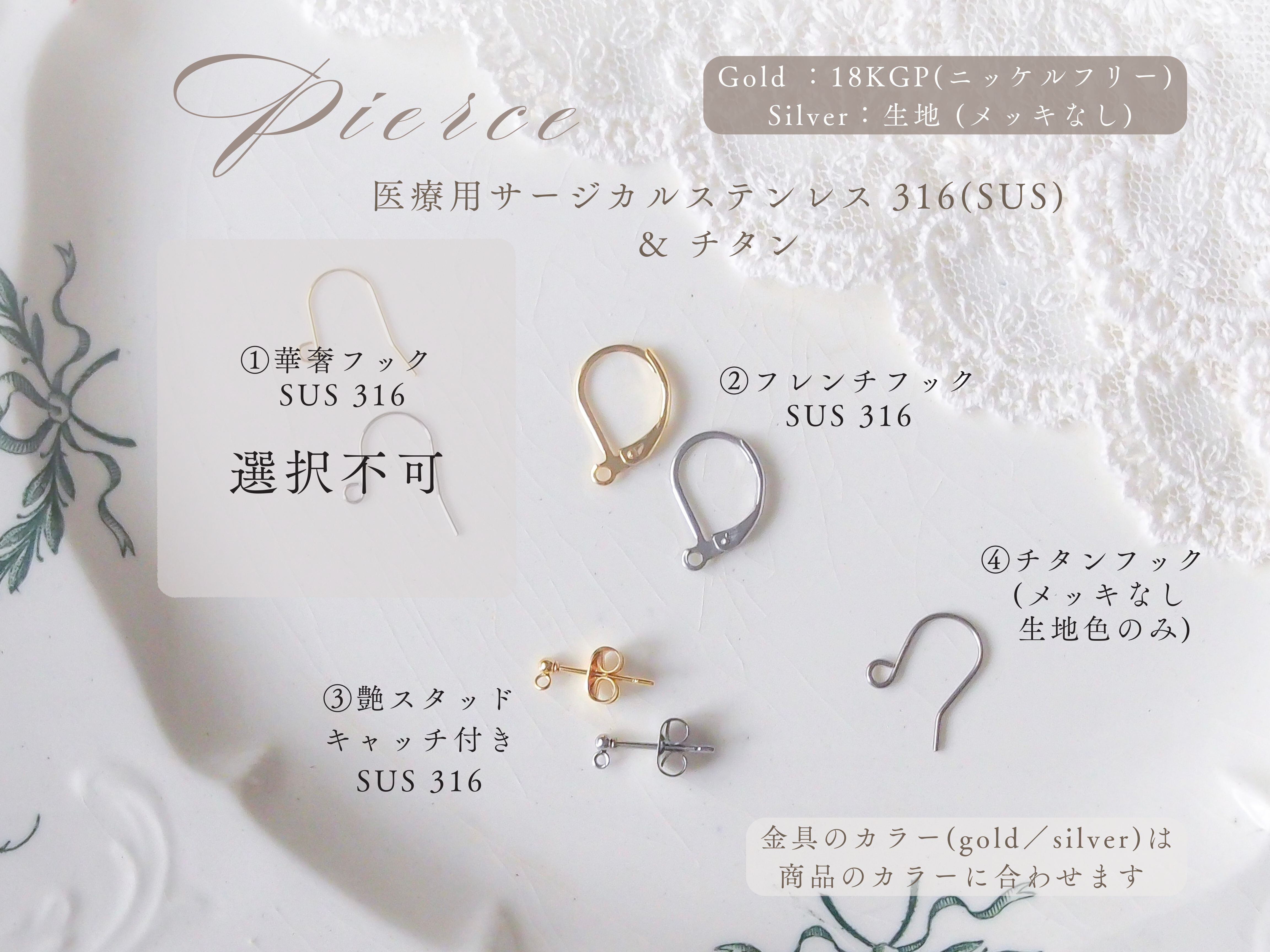 (イヤリング金具:16kgp ニッケルフリーメッキ)