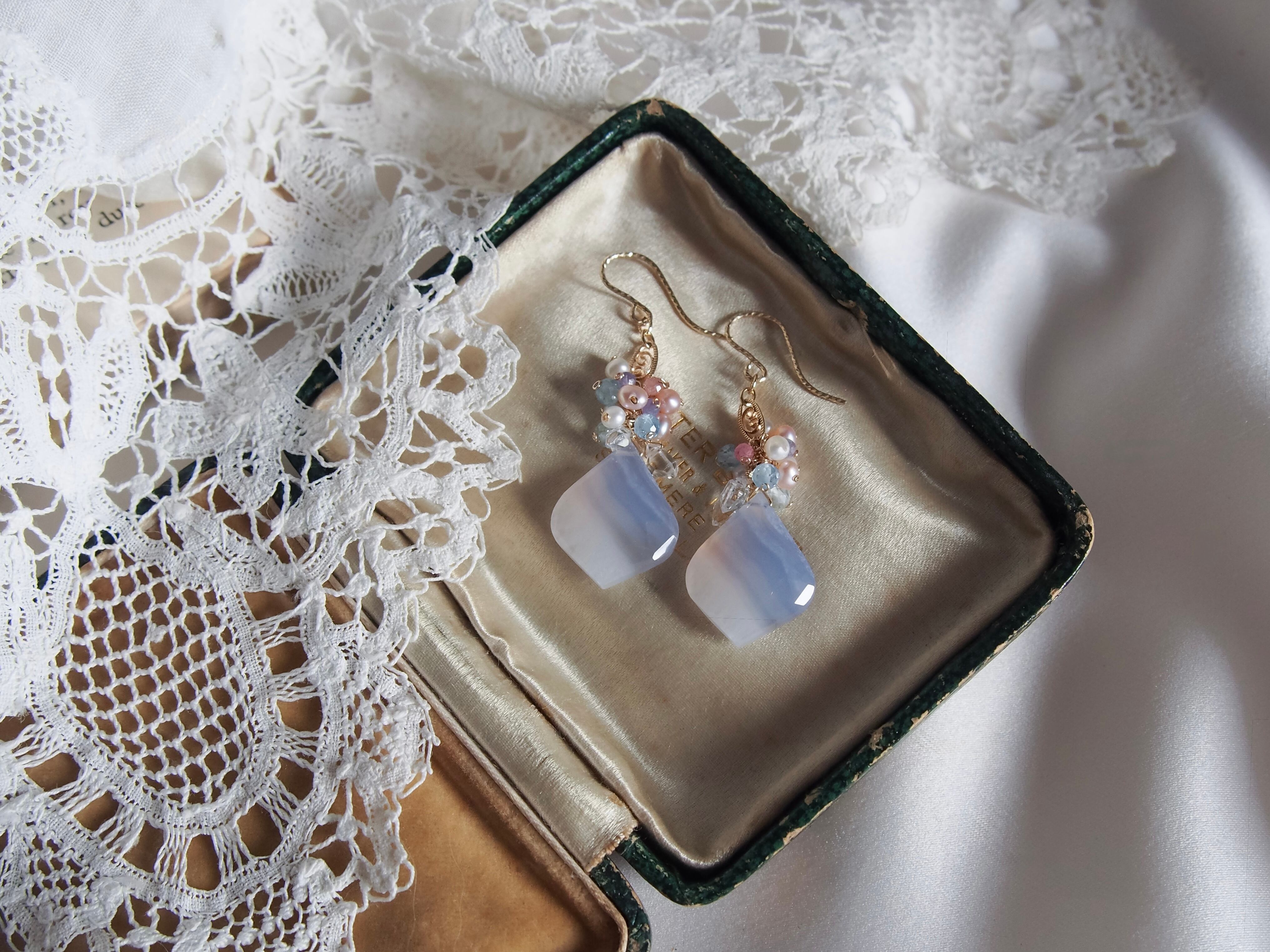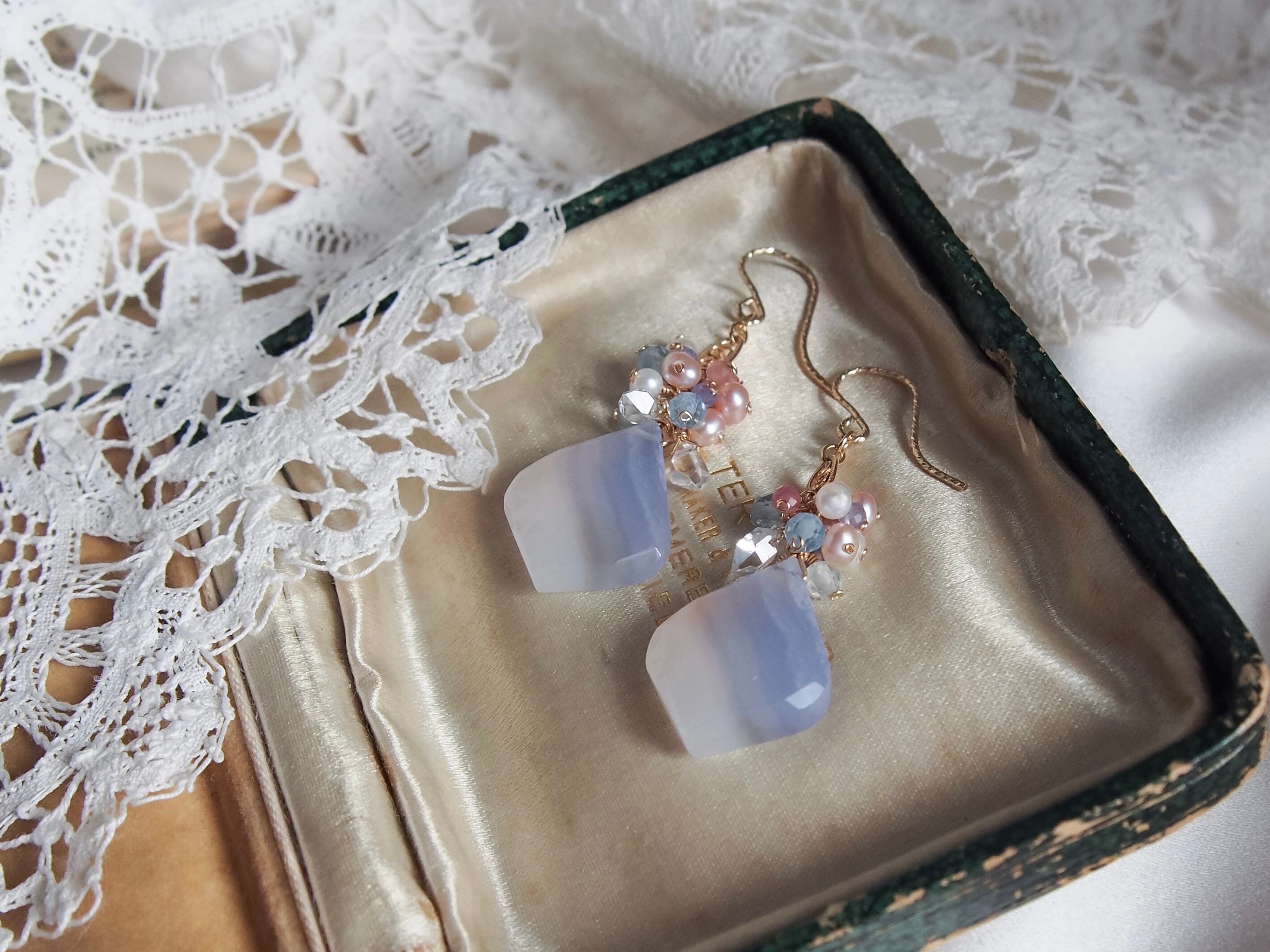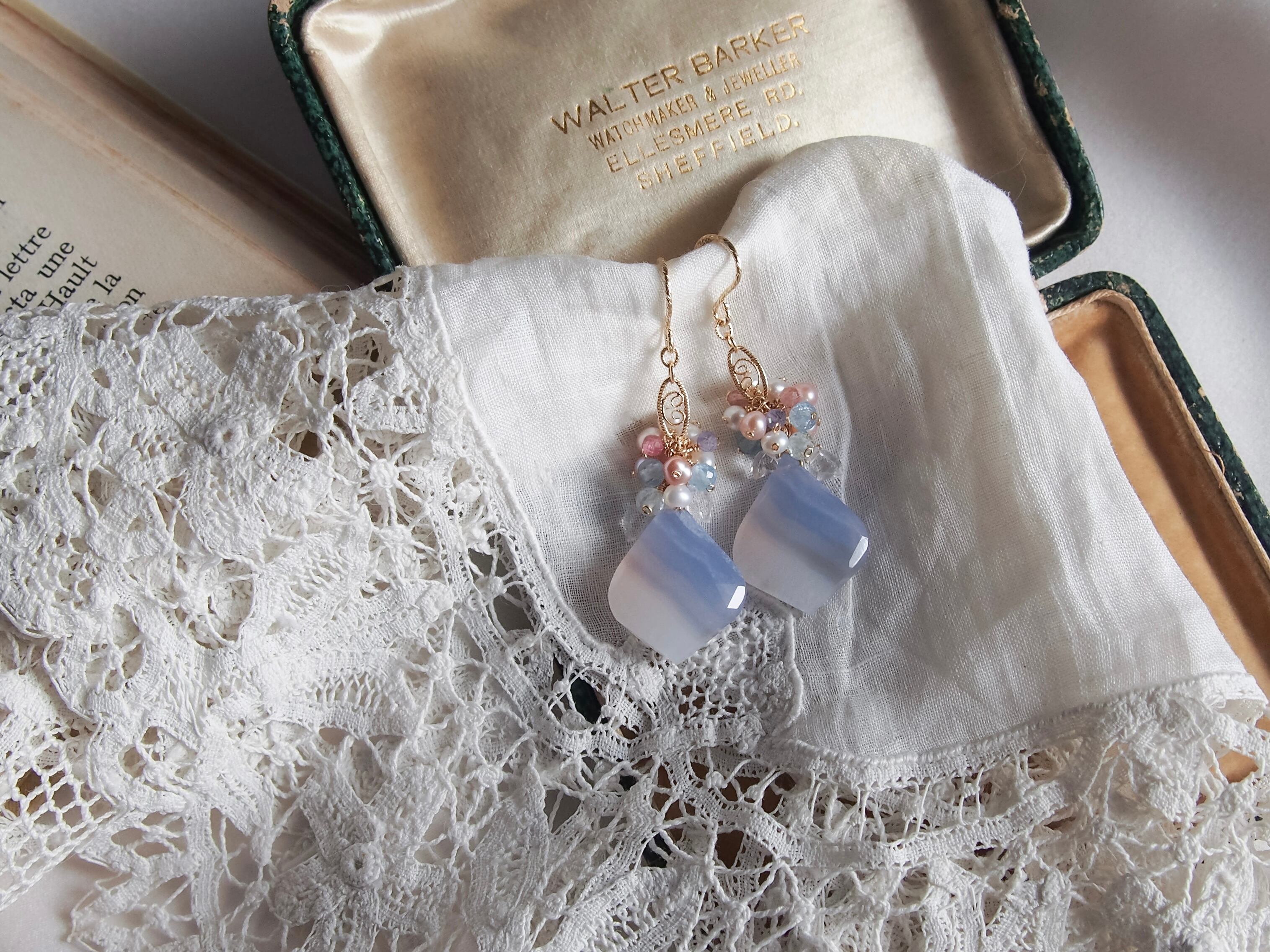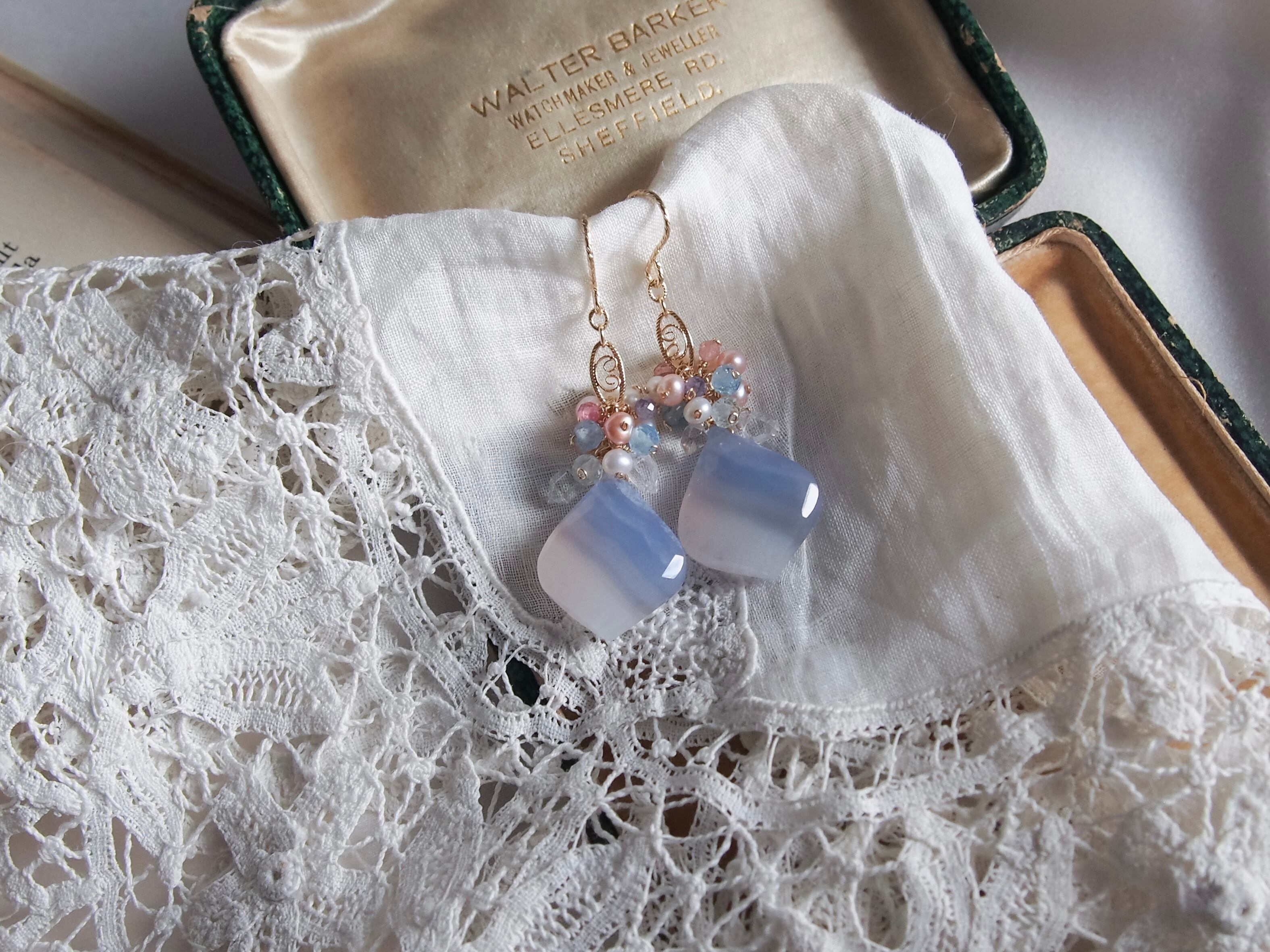 【 Angel Blue - 天使の空色 - 】ブルーレースアゲート × ブーケ フィリグリー ピアス/イヤリング|14kgf 天然石
