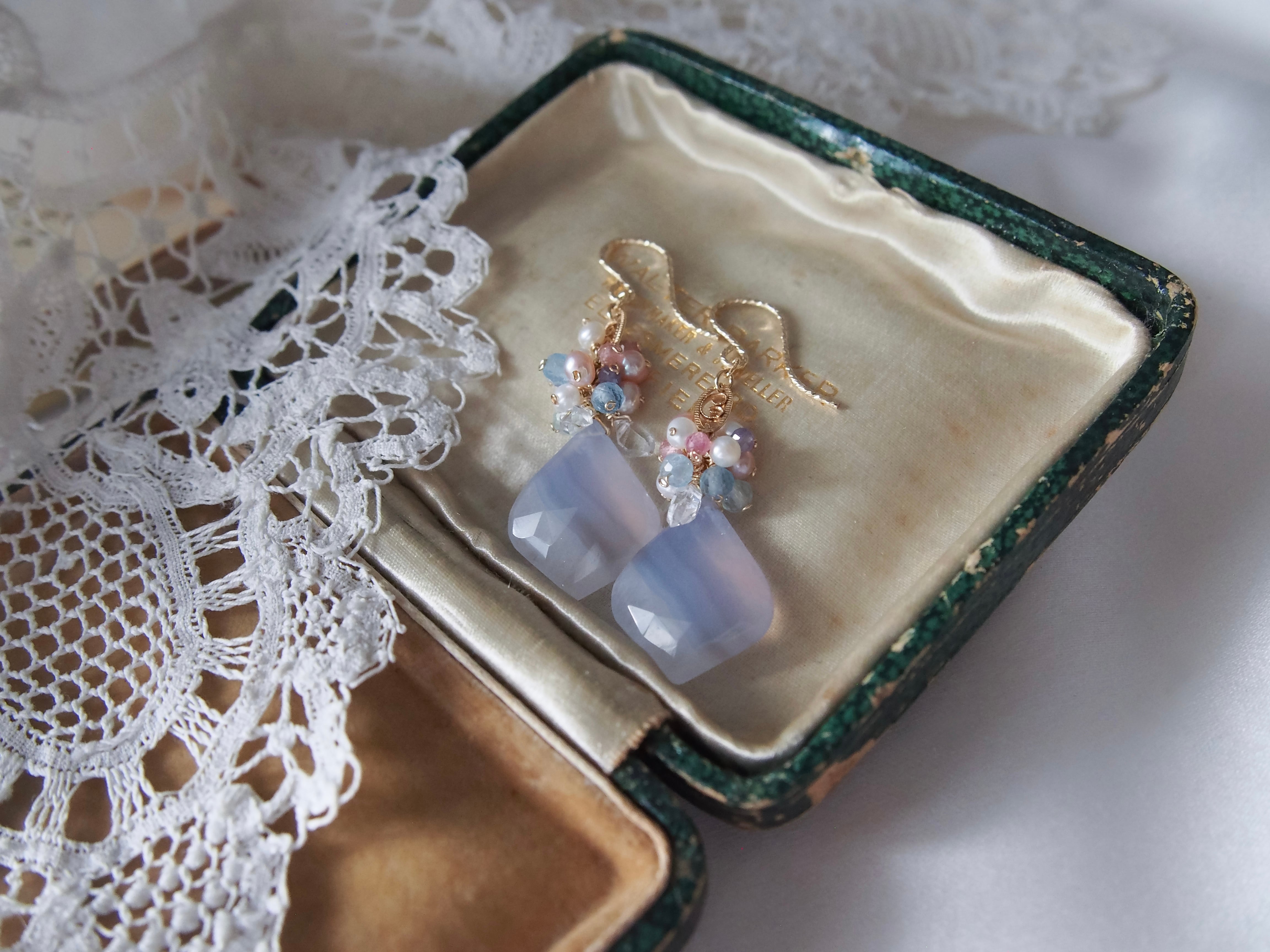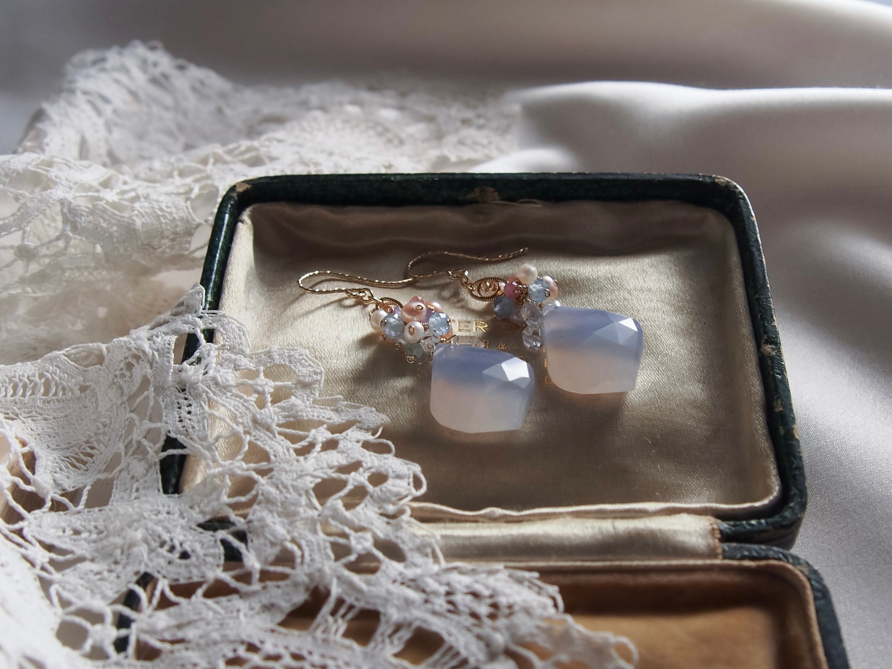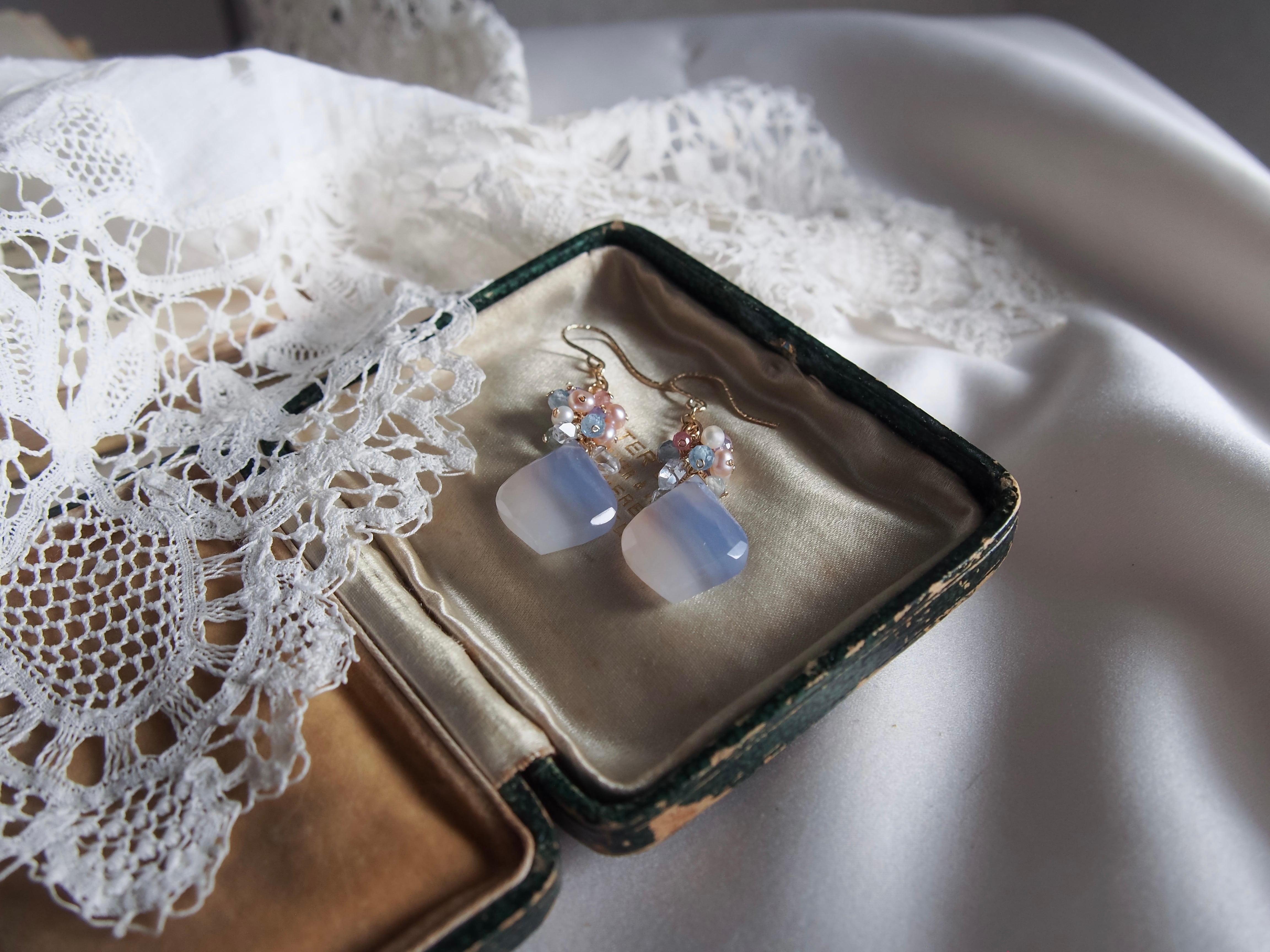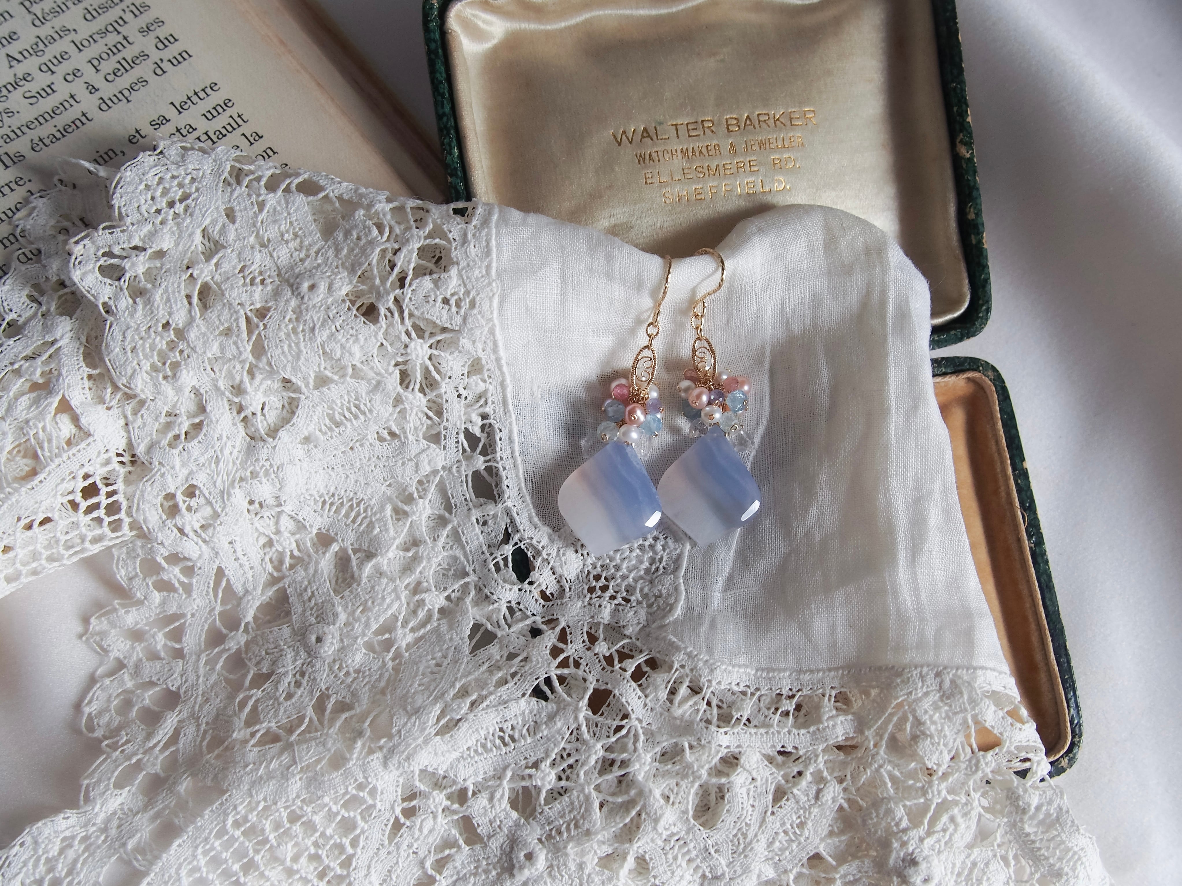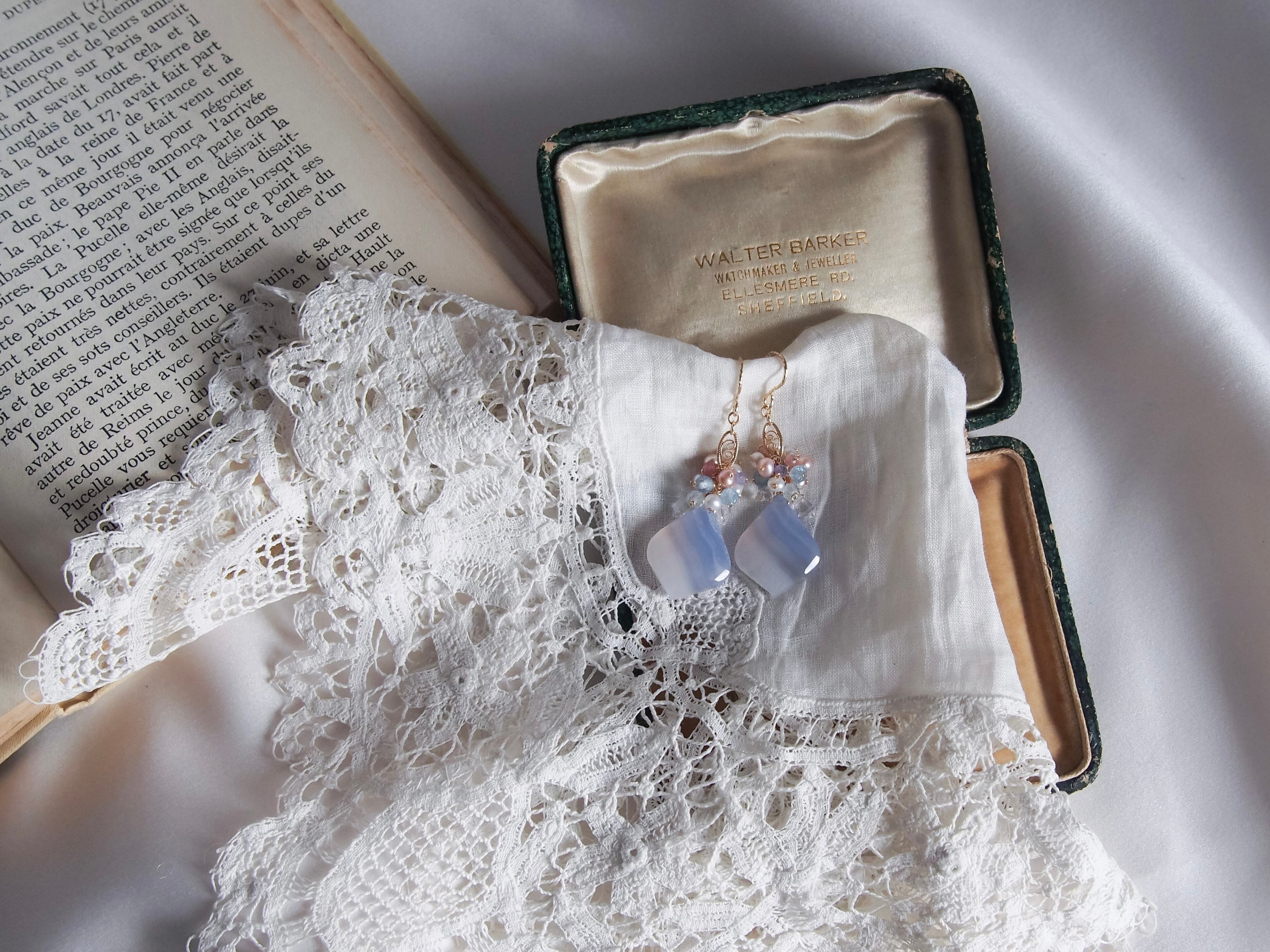 【 Angel Blue - 天使の空色 - 】ブルーレースアゲート × ブーケ フィリグリー ピアス/イヤリング|14kgf 天然石