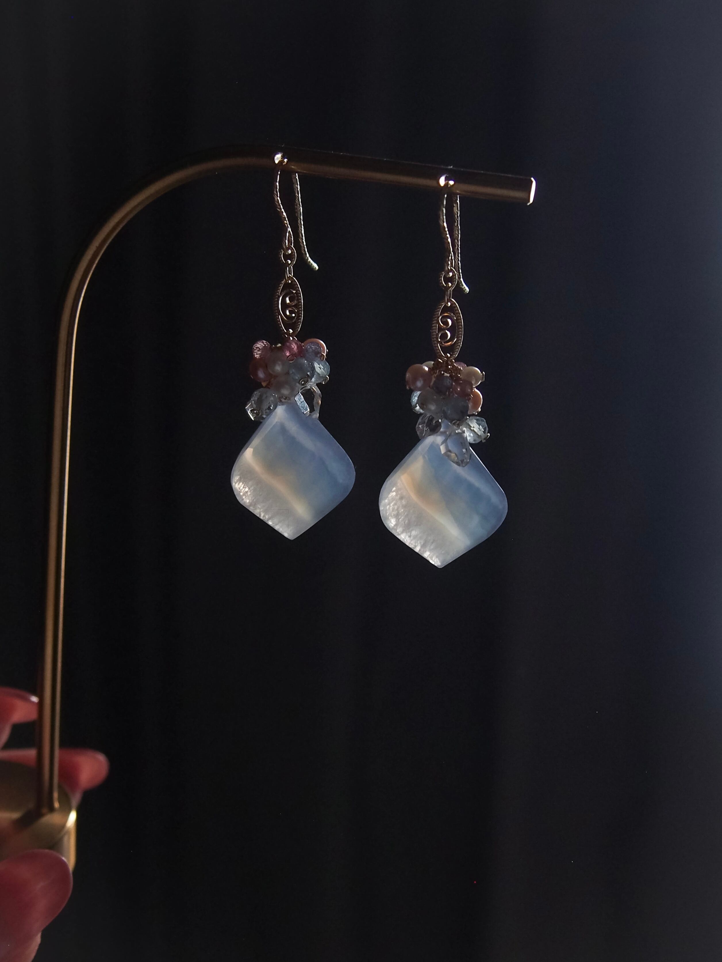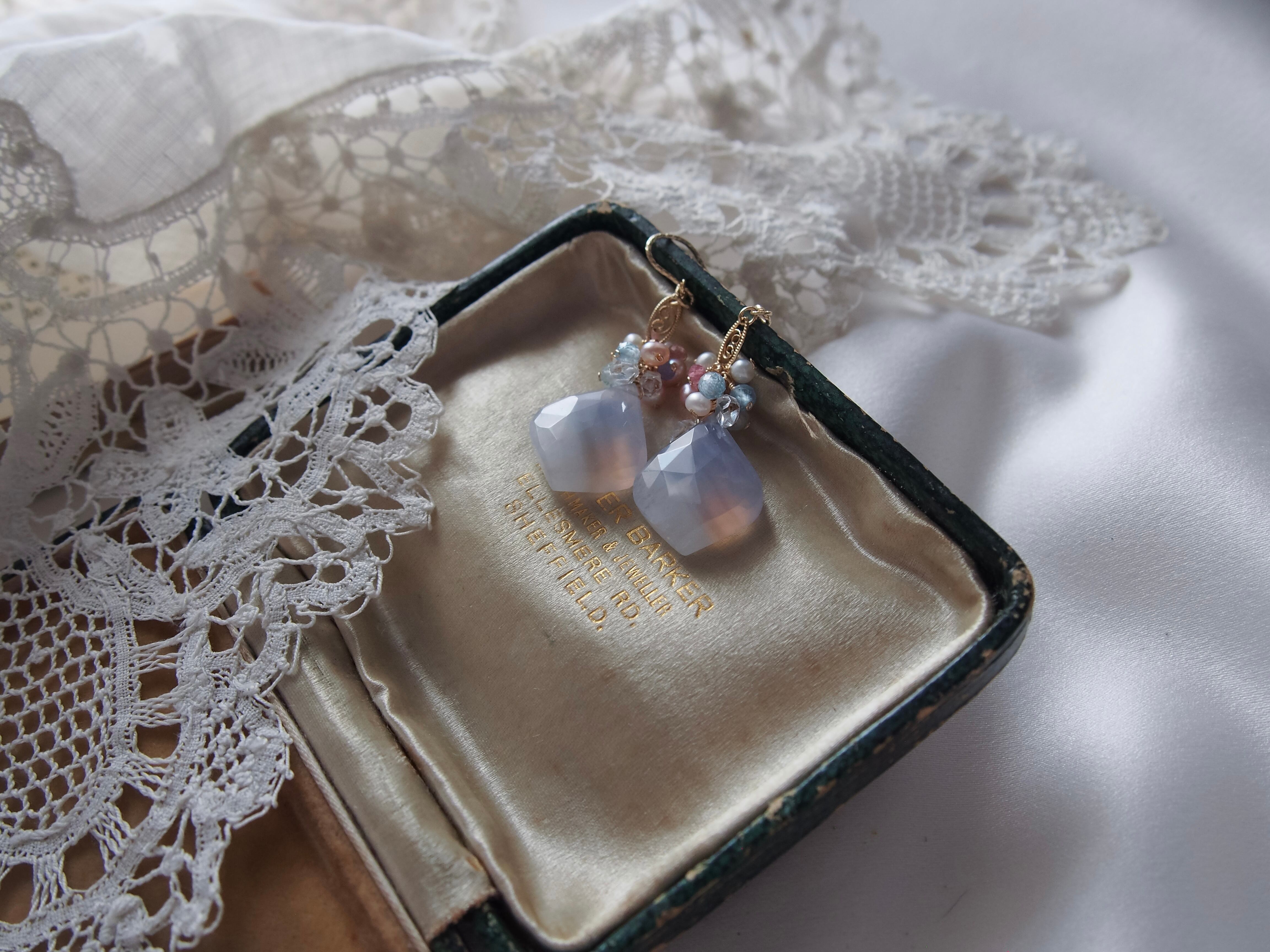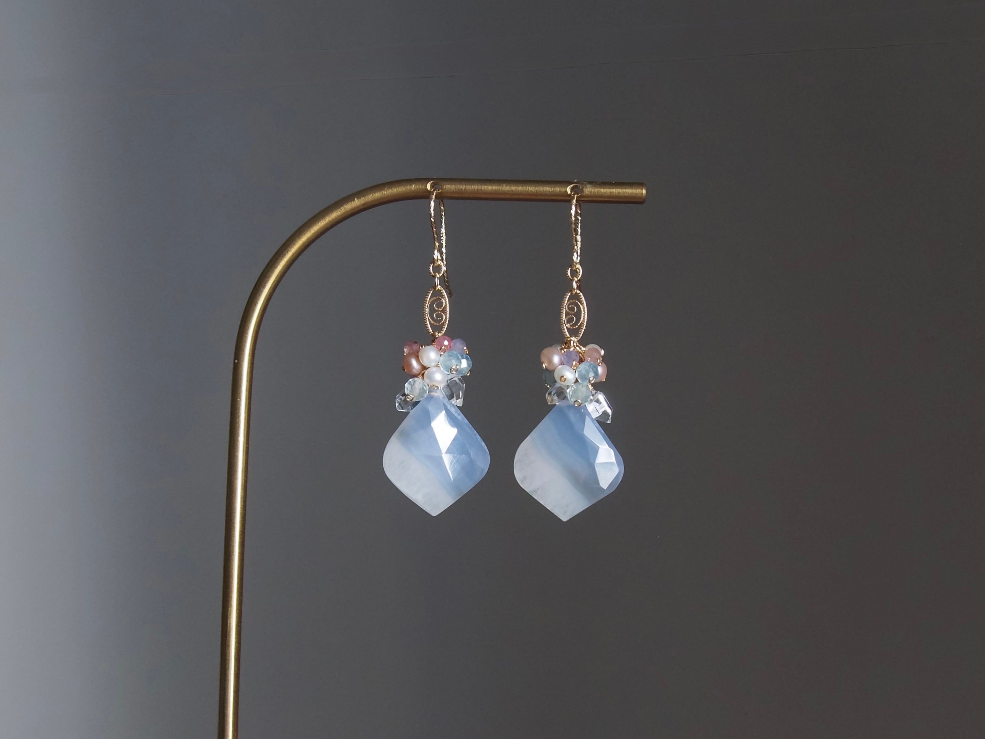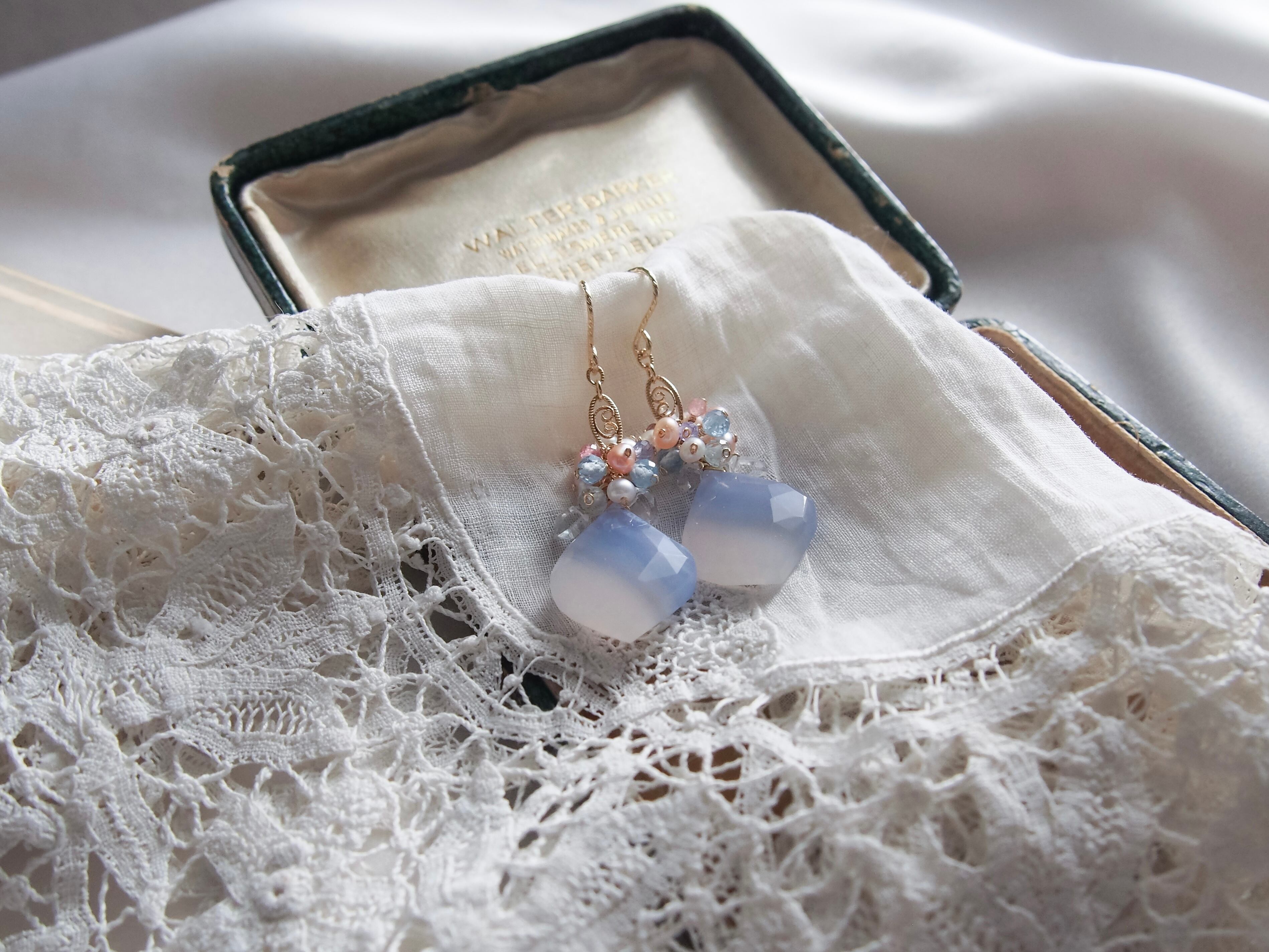【 Angel Blue - 天使の空色 - 】ブルーレースアゲート × ブーケ フィリグリー ピアス/イヤリング|14kgf 天然石
