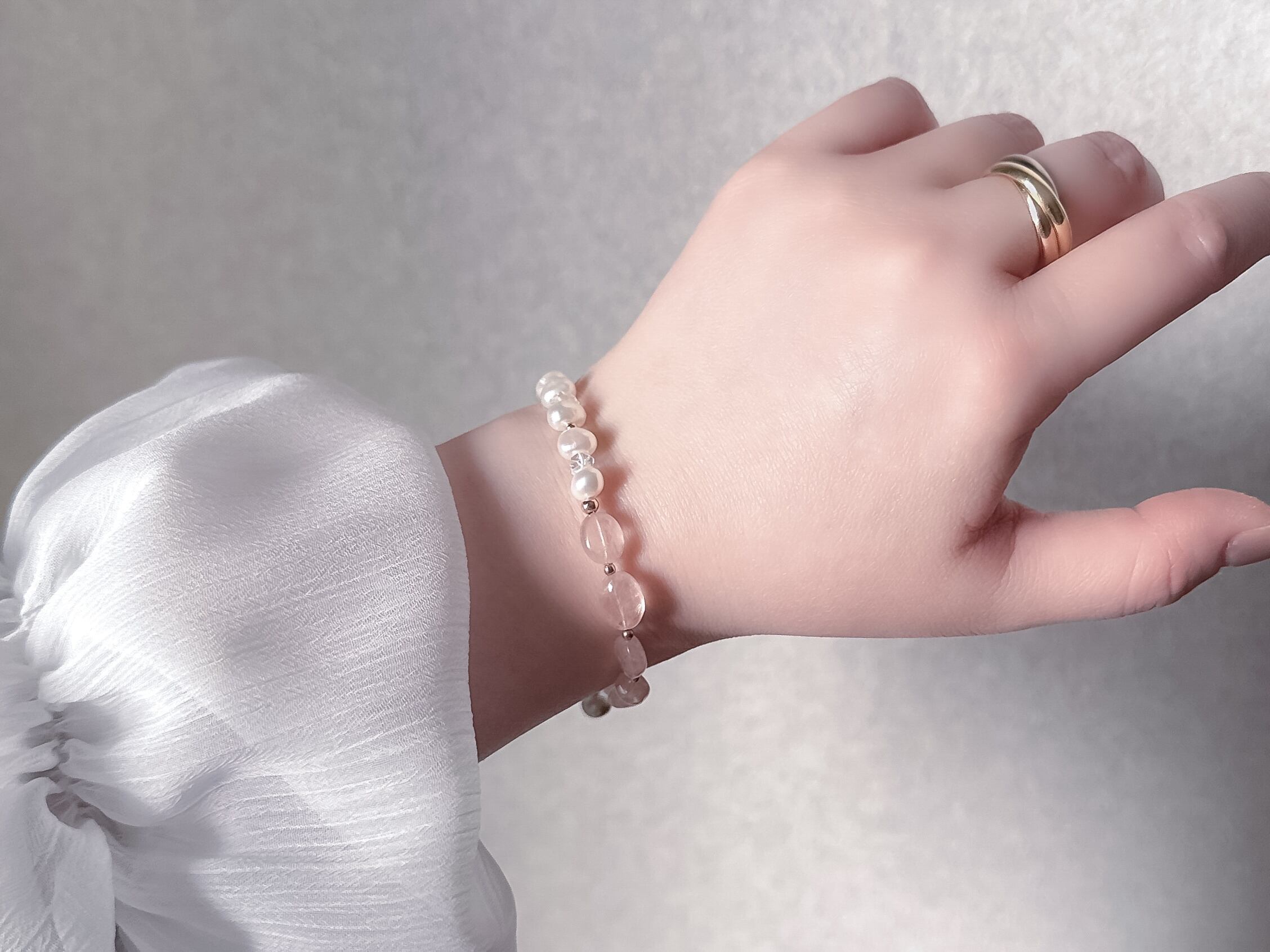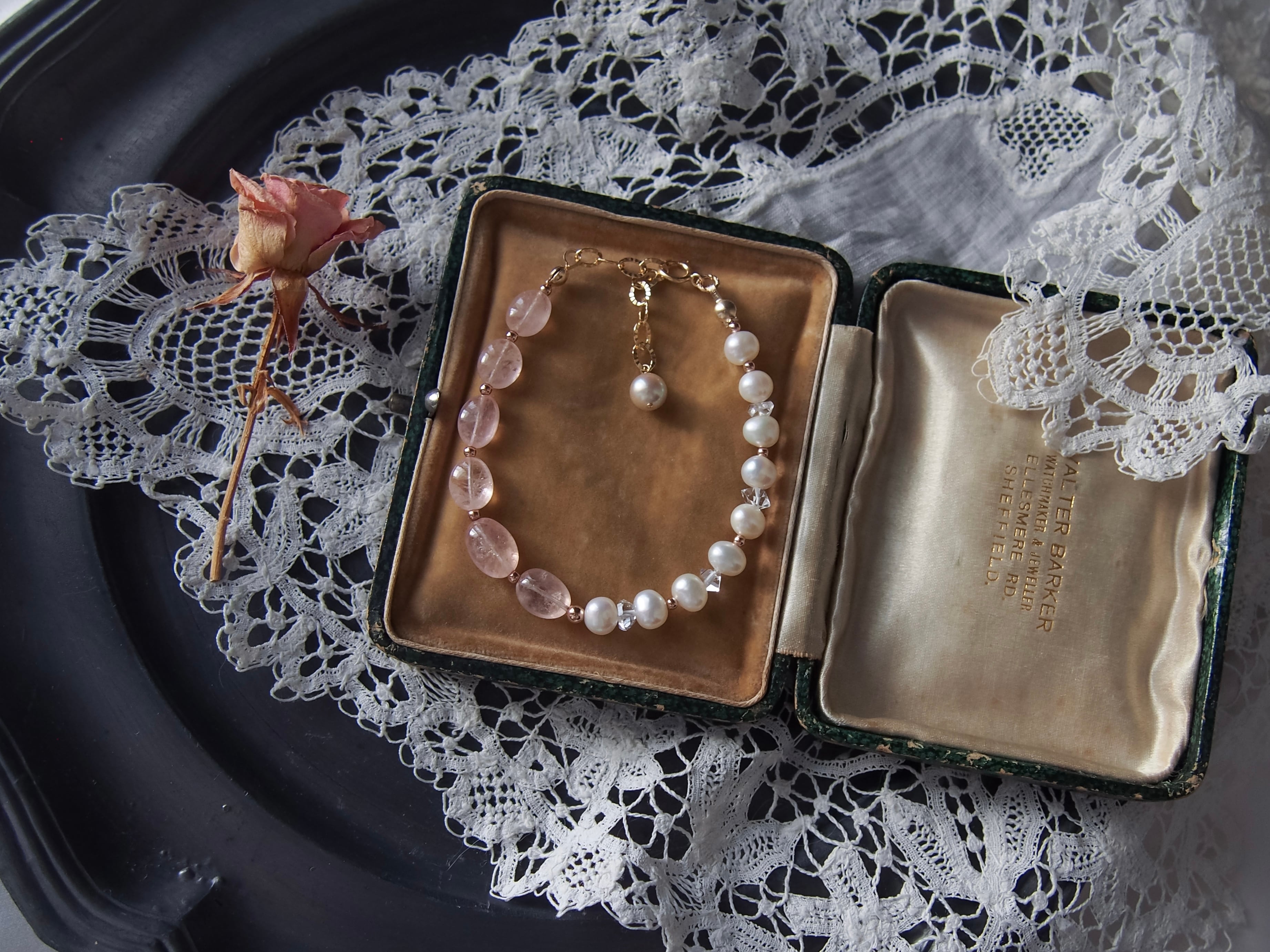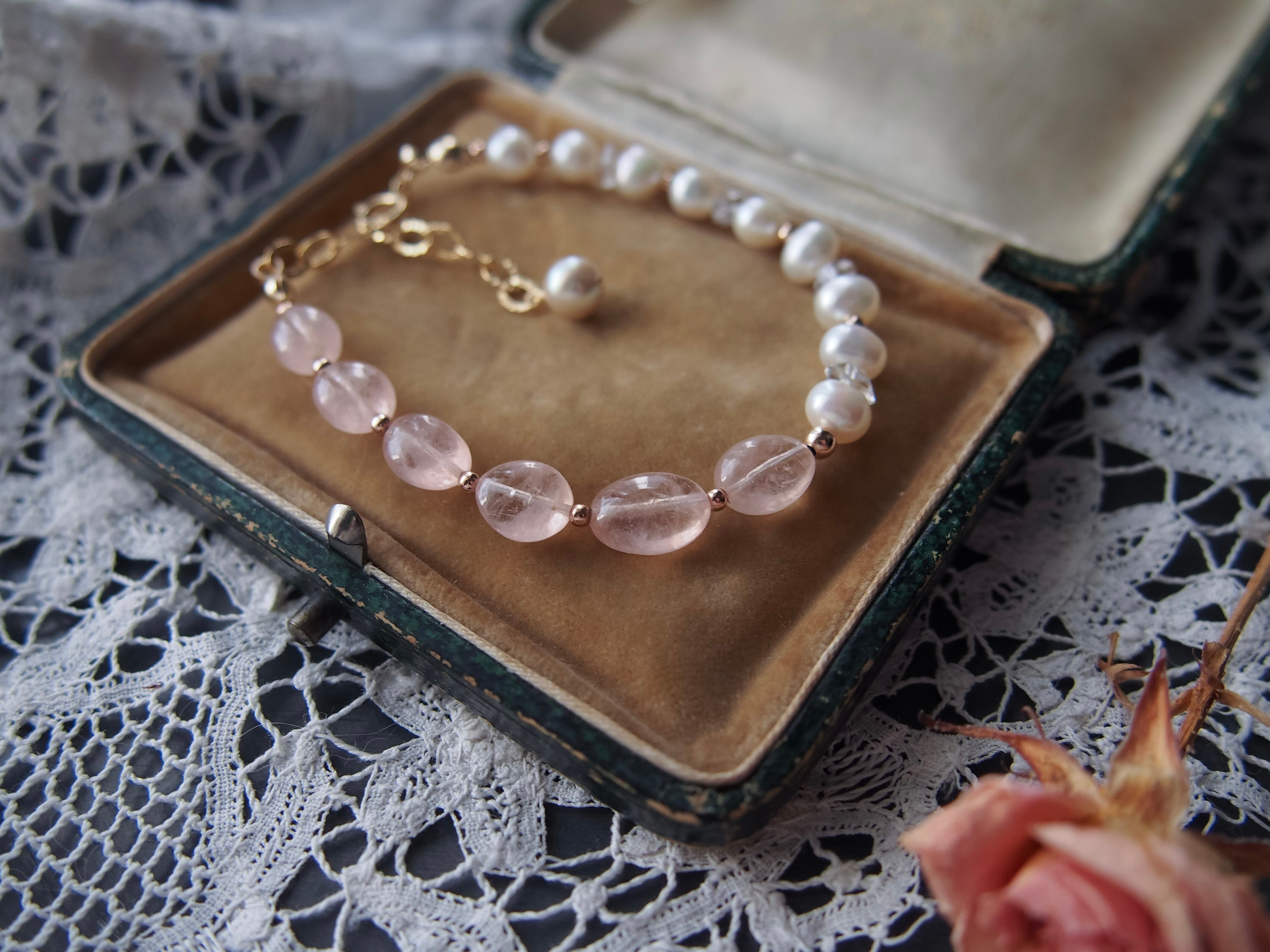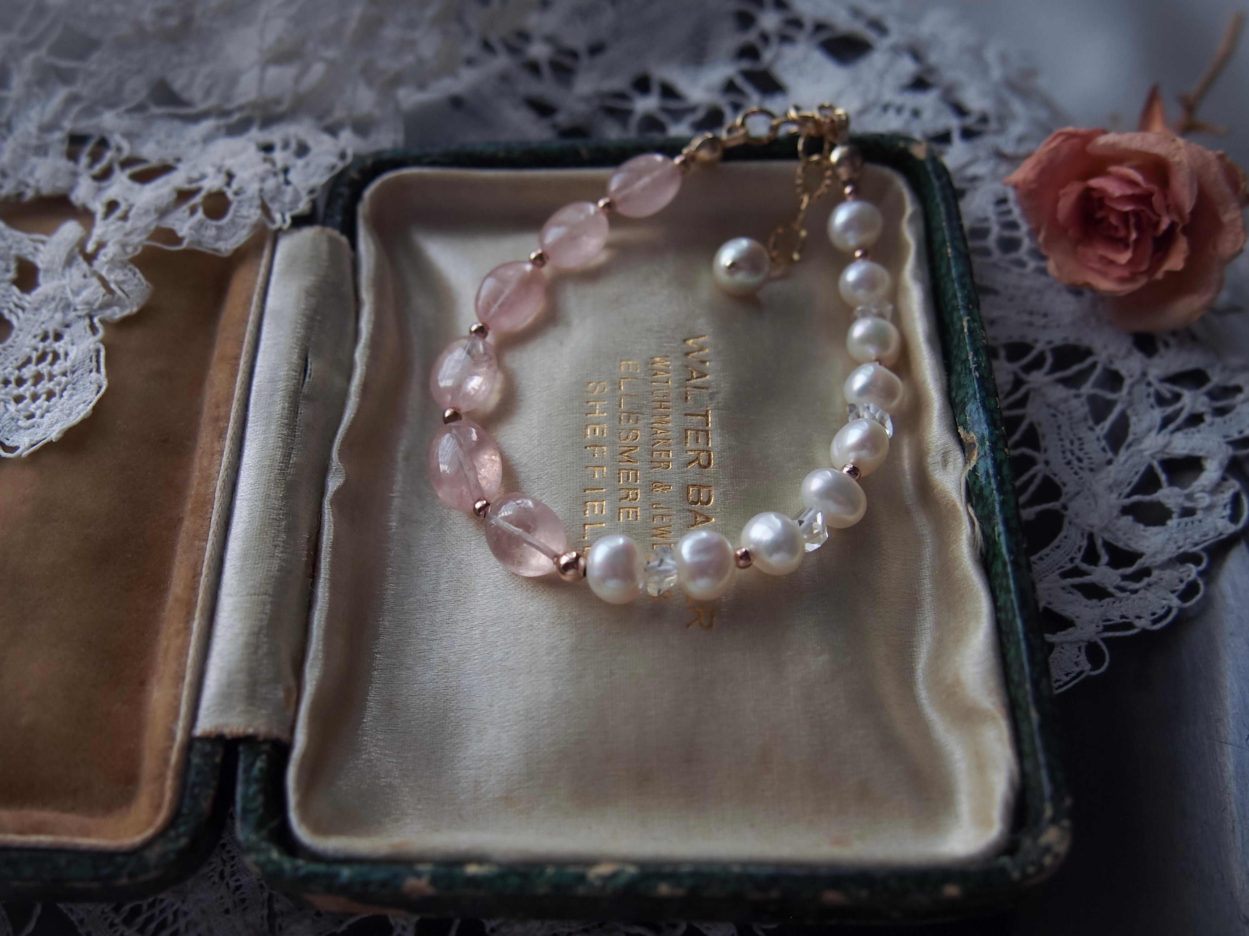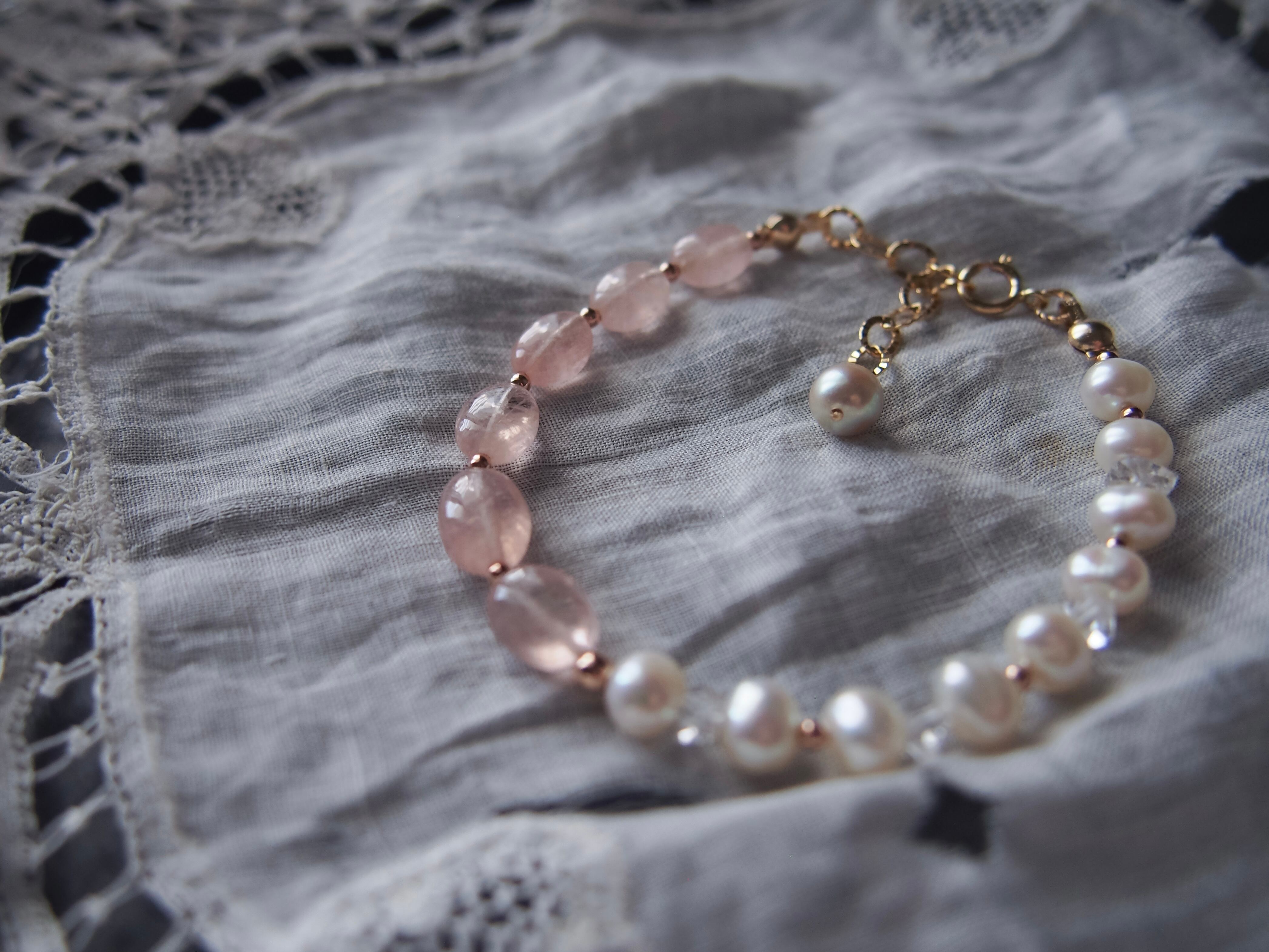 【 sugar pink 】モルガナイト × 淡水パール × ハーキマーダイヤモンド ブレスレット|14kgf 天然石 4月誕生石