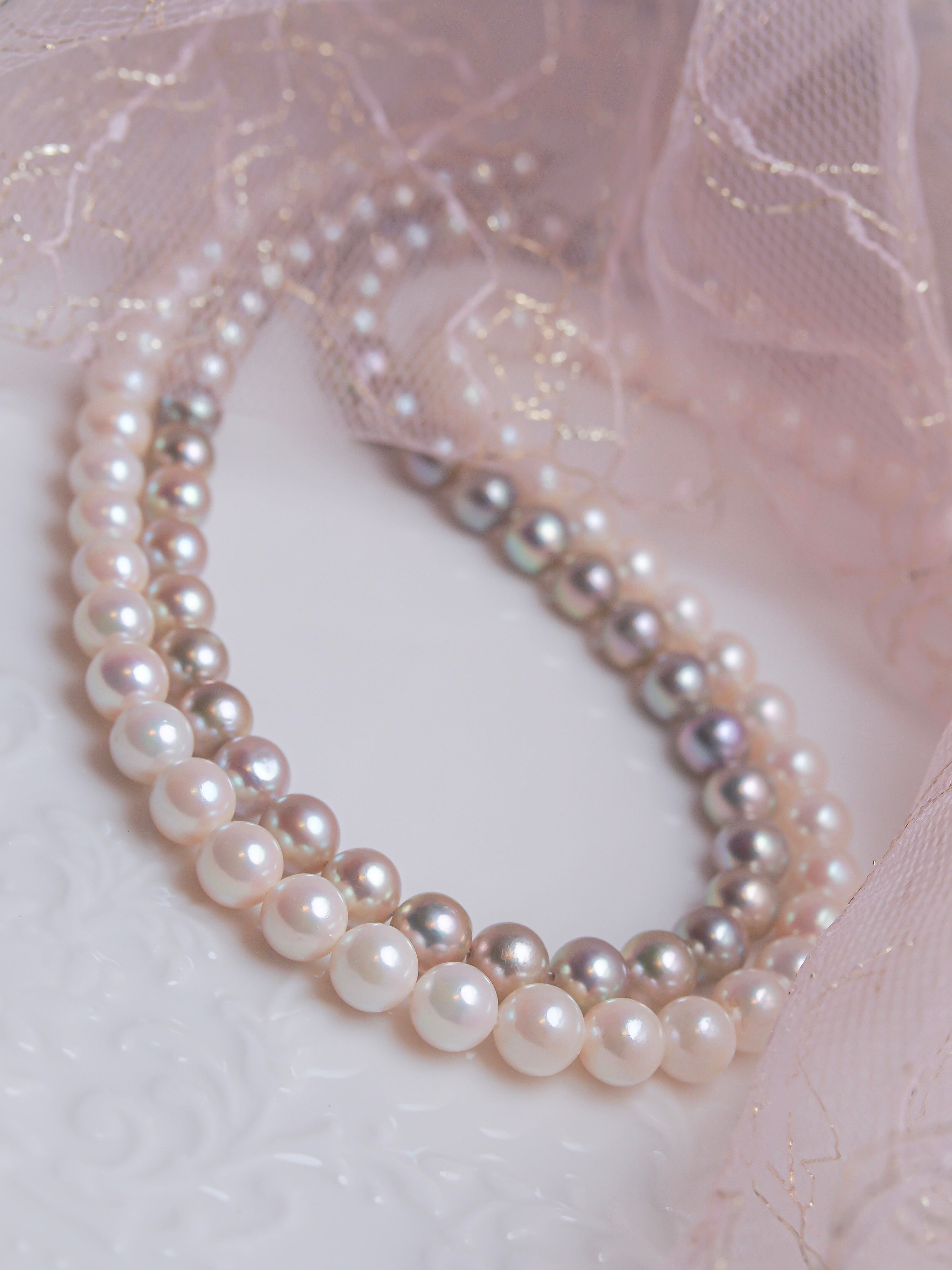 艶のあるMILKカラーのあこや真珠。