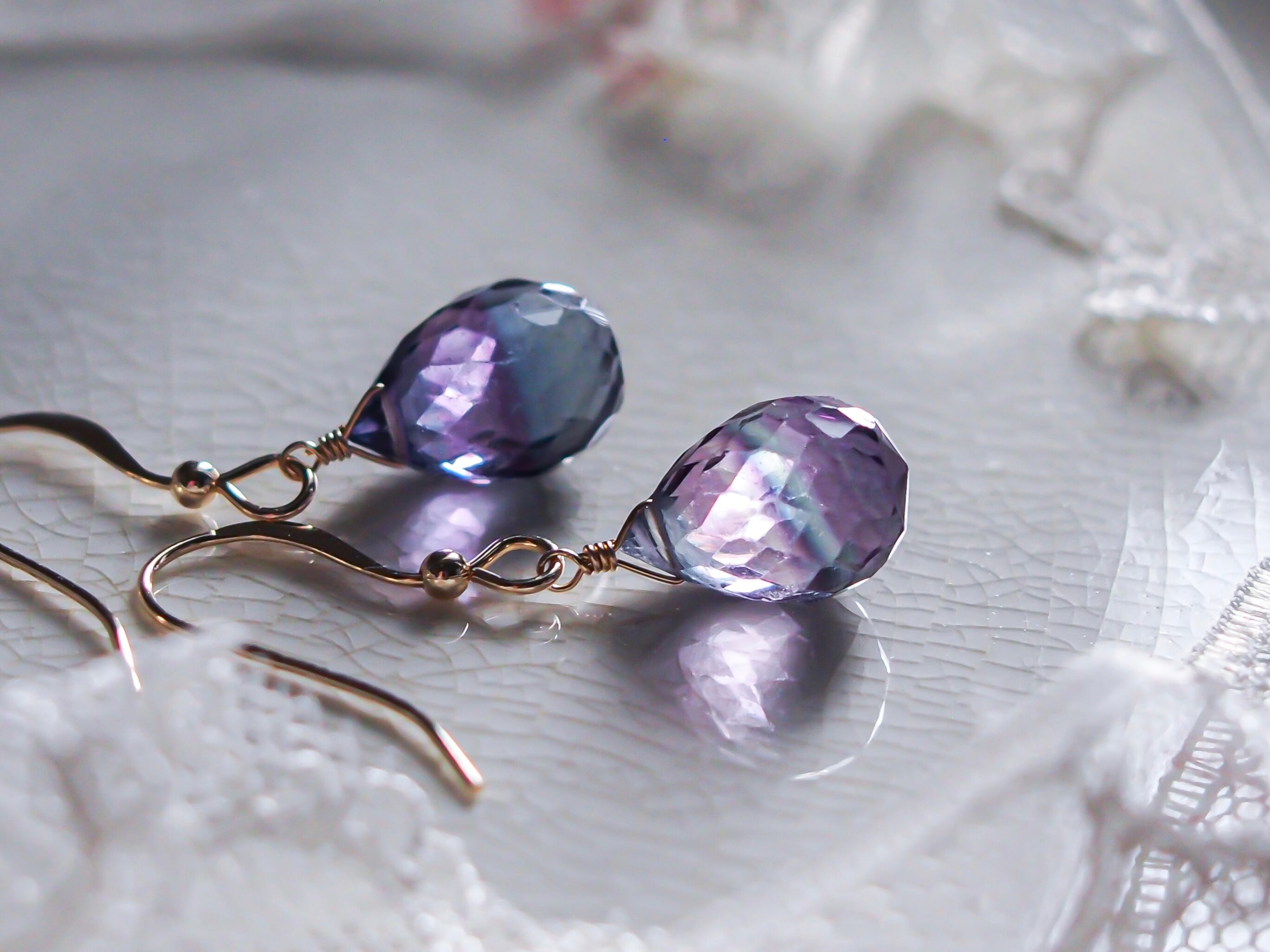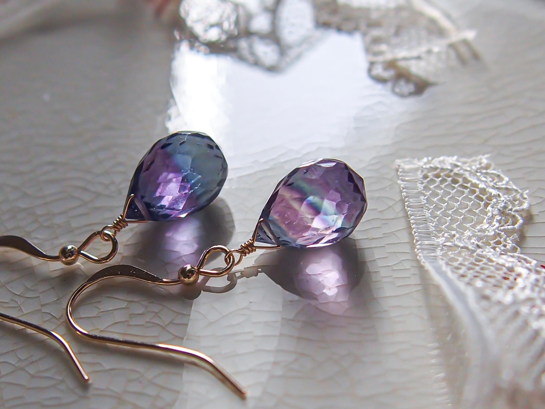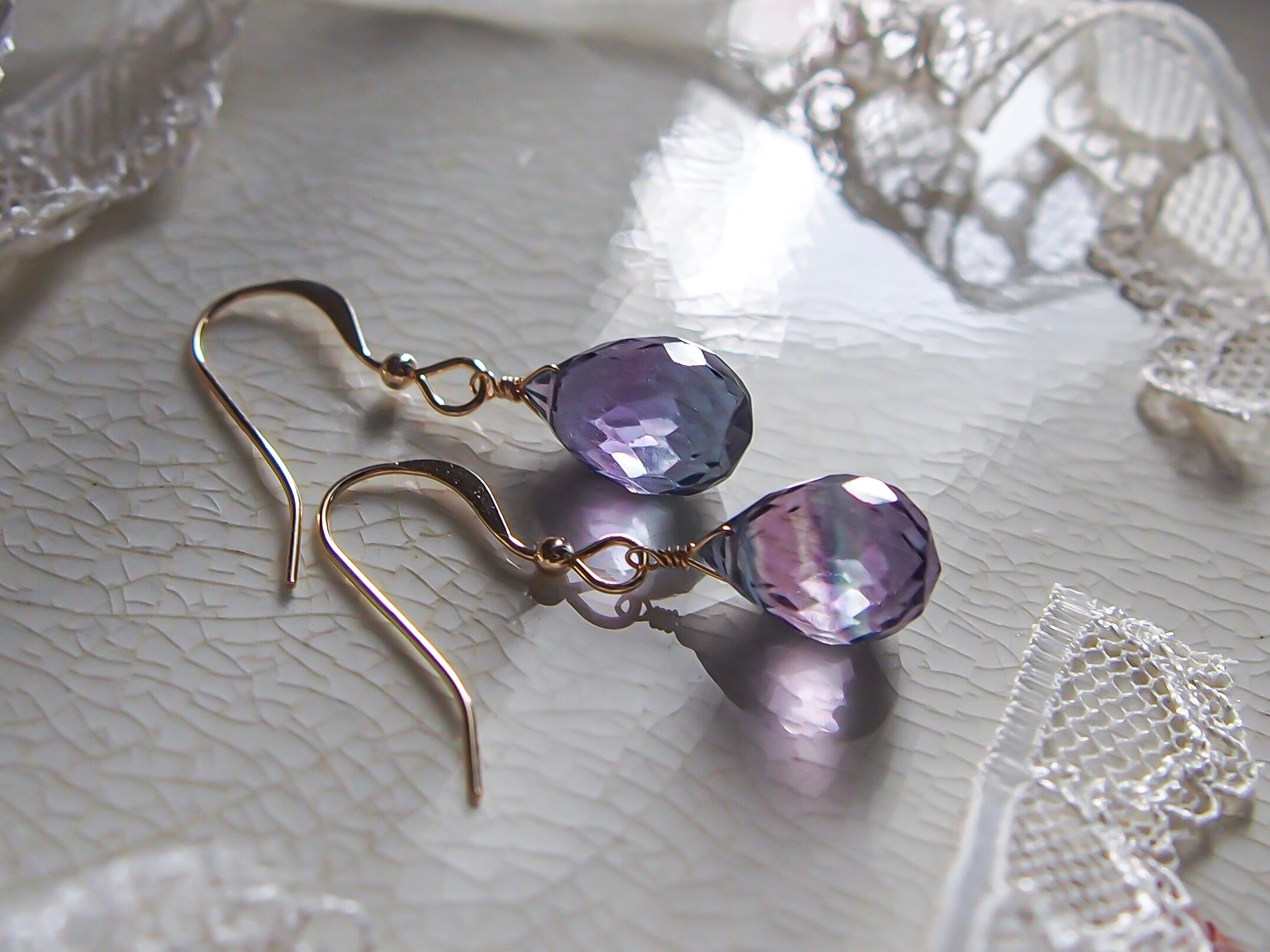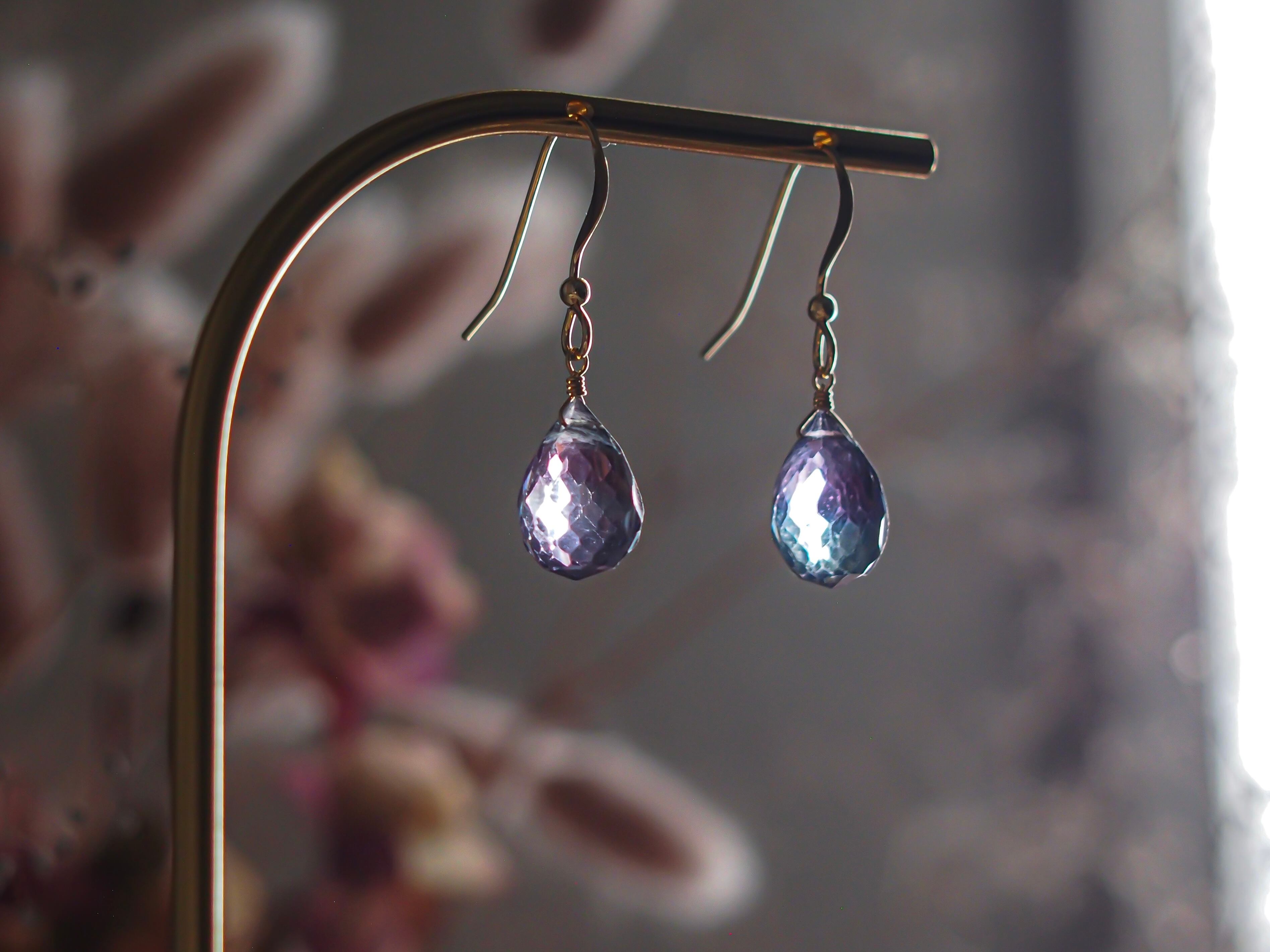 【夏の夜の夢】|フローライトのファセットドロップ 一粒 ピアス/イヤリング|14kgf 天然石|浴衣 シンプル