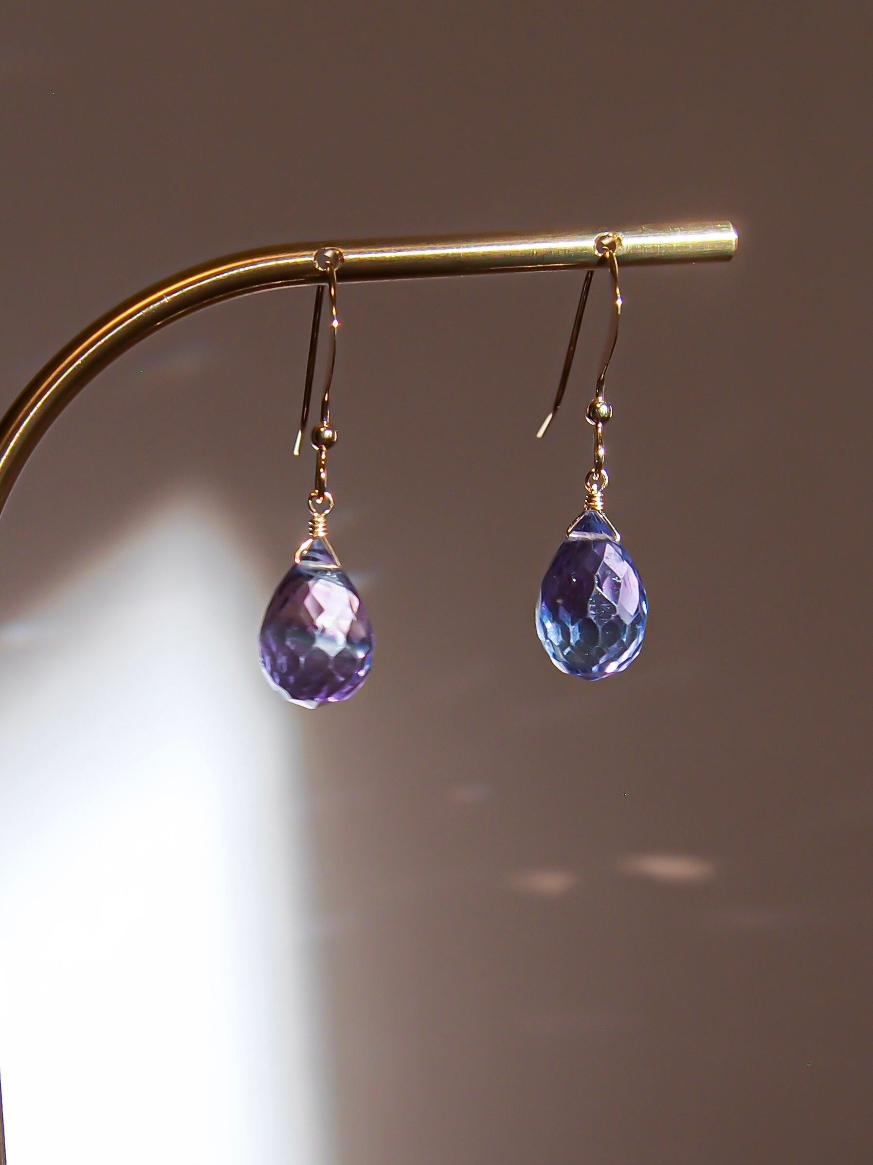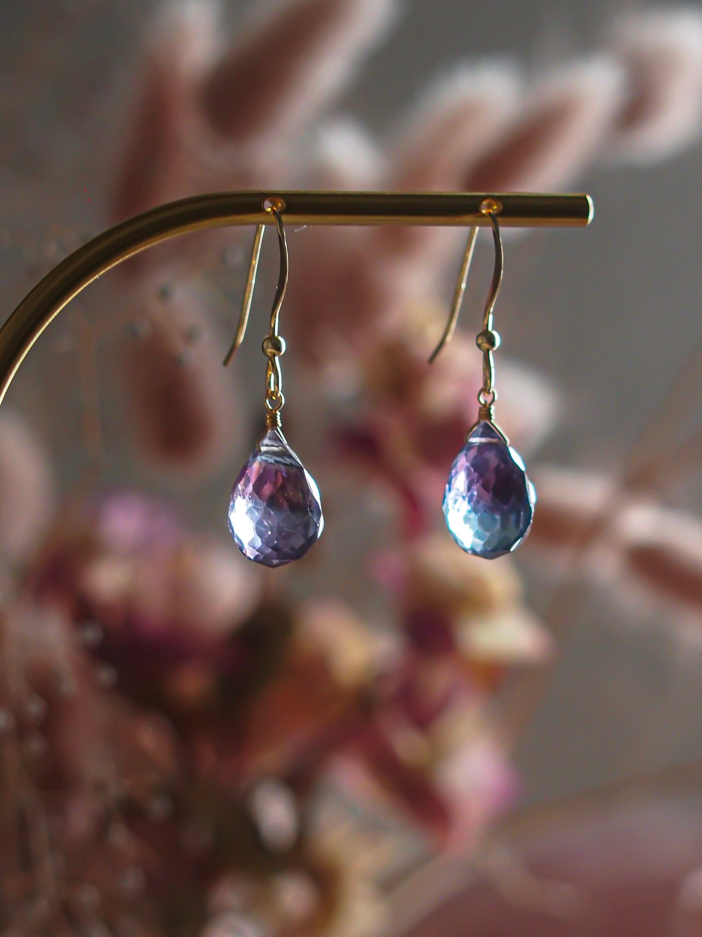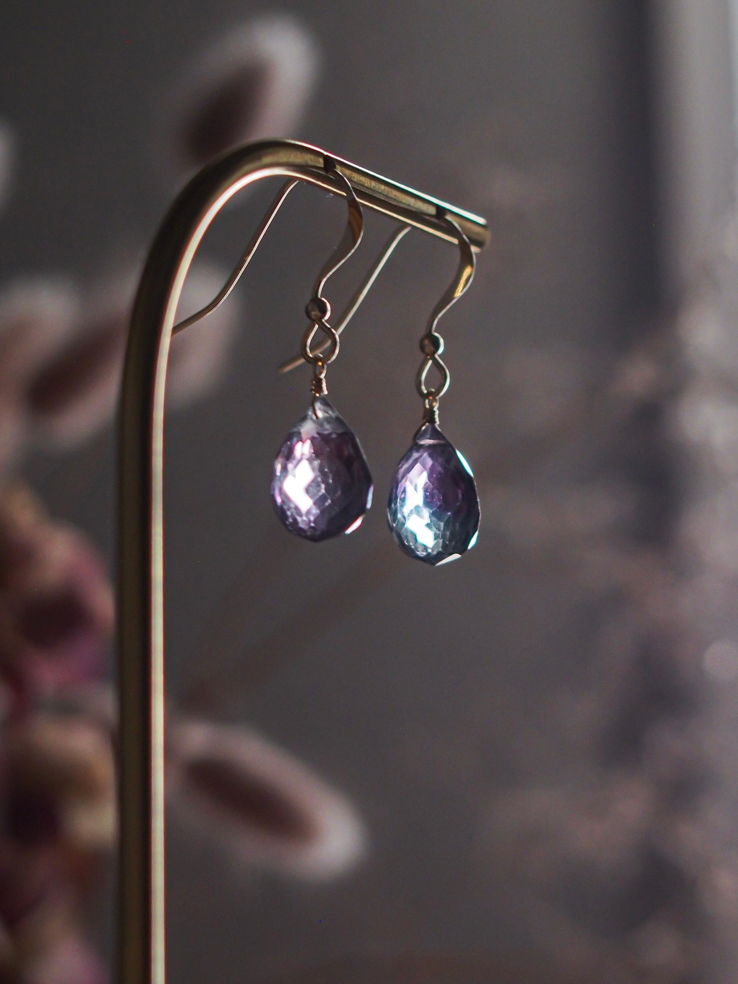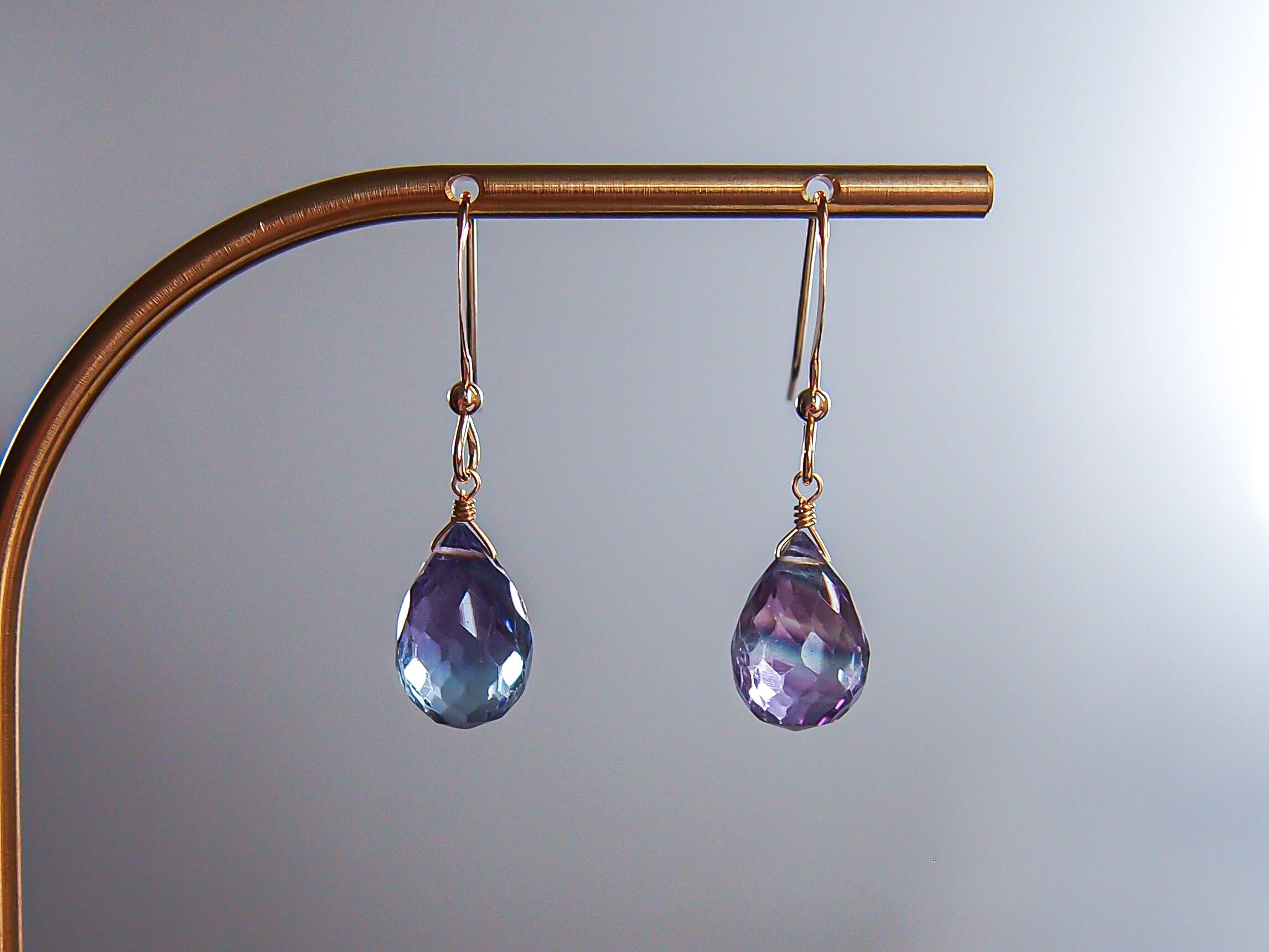 【夏の夜の夢】|フローライトのファセットドロップ 一粒 ピアス/イヤリング|14kgf 天然石|浴衣 シンプル