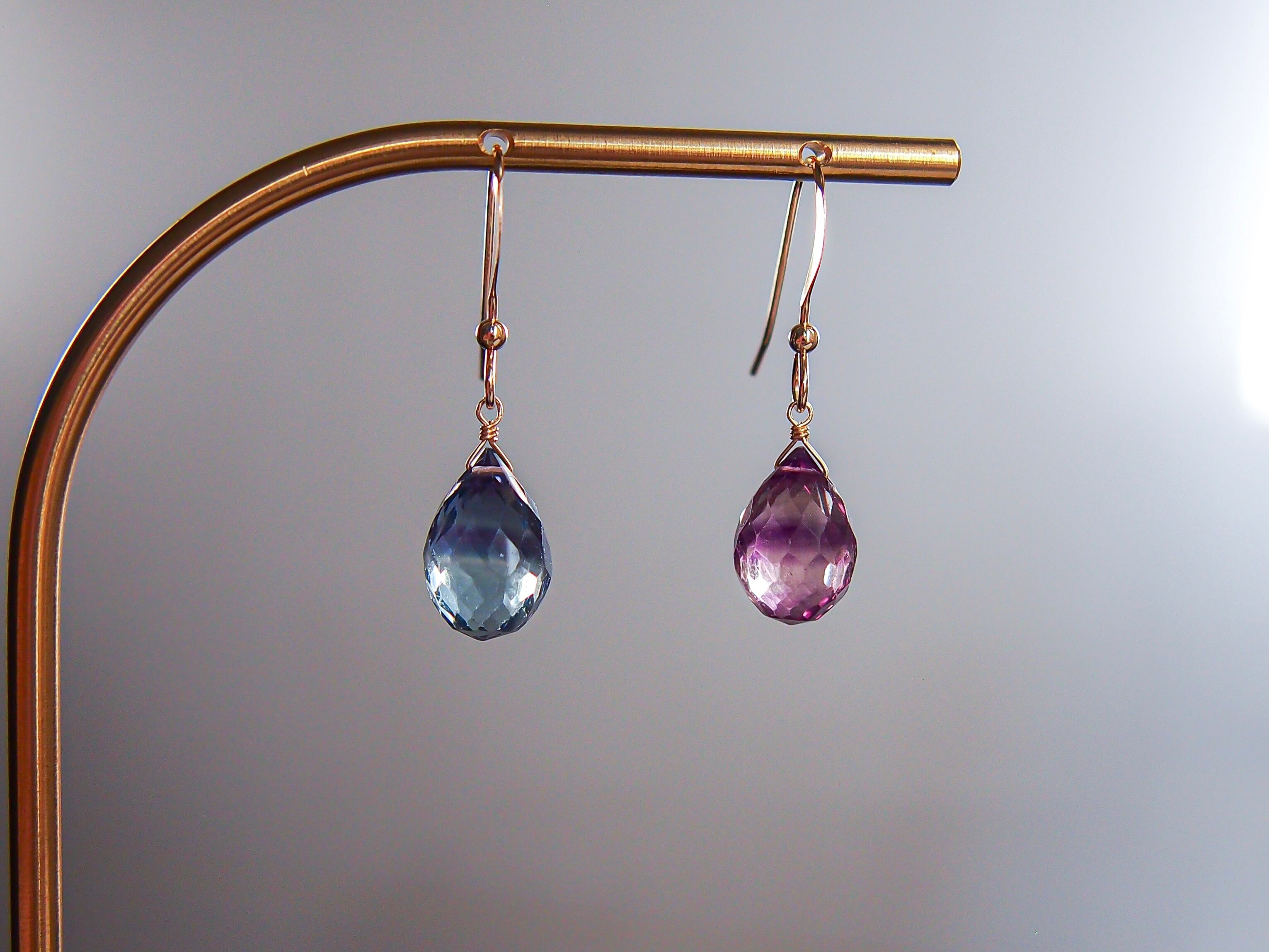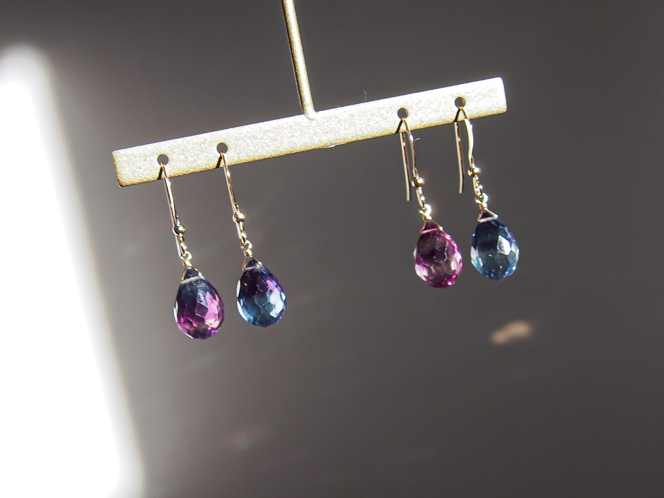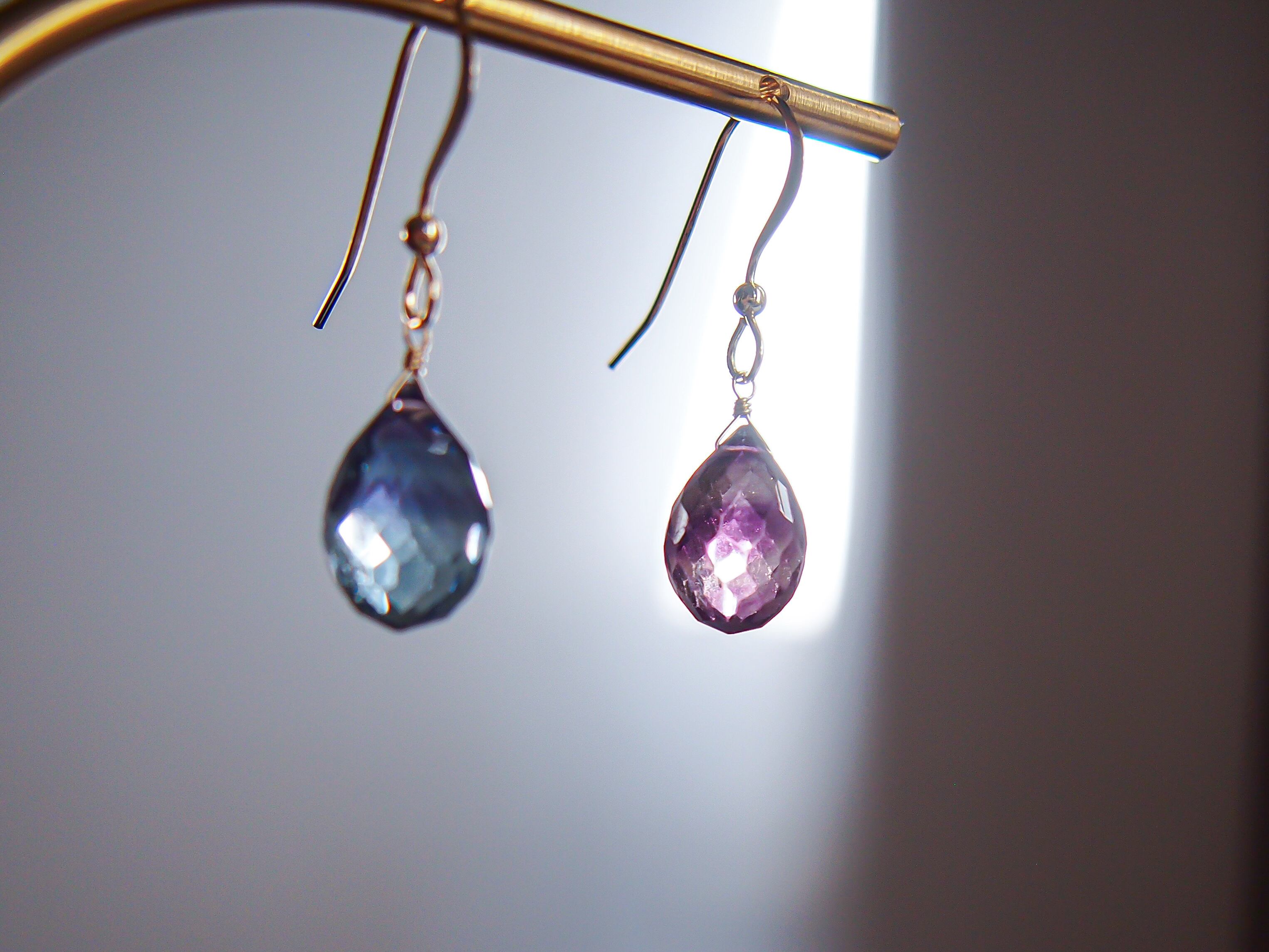 【宵と暁】a.|フローライトのファセットドロップ 一粒 ピアス/イヤリング|14kgf 天然石|浴衣 シンプル