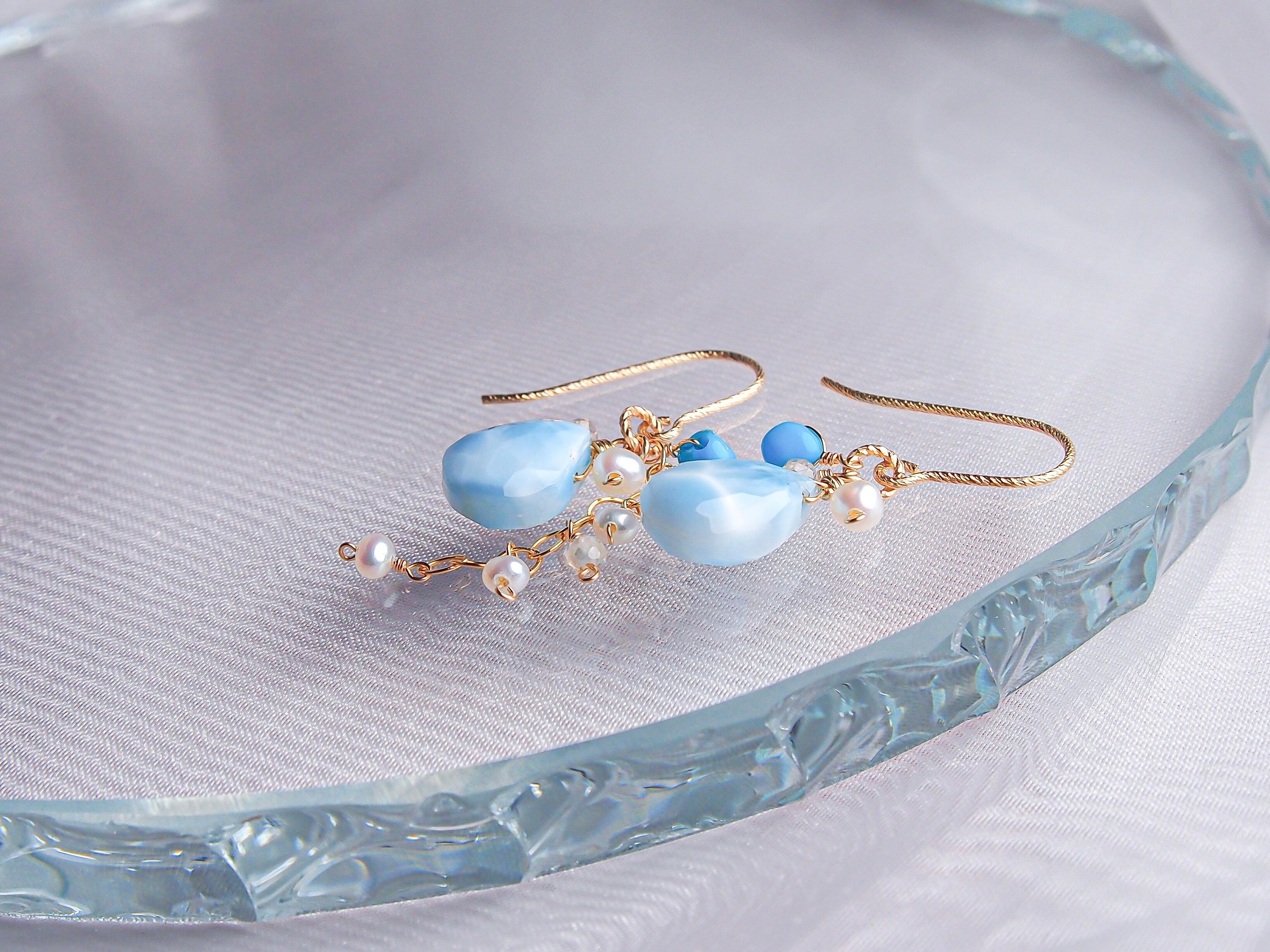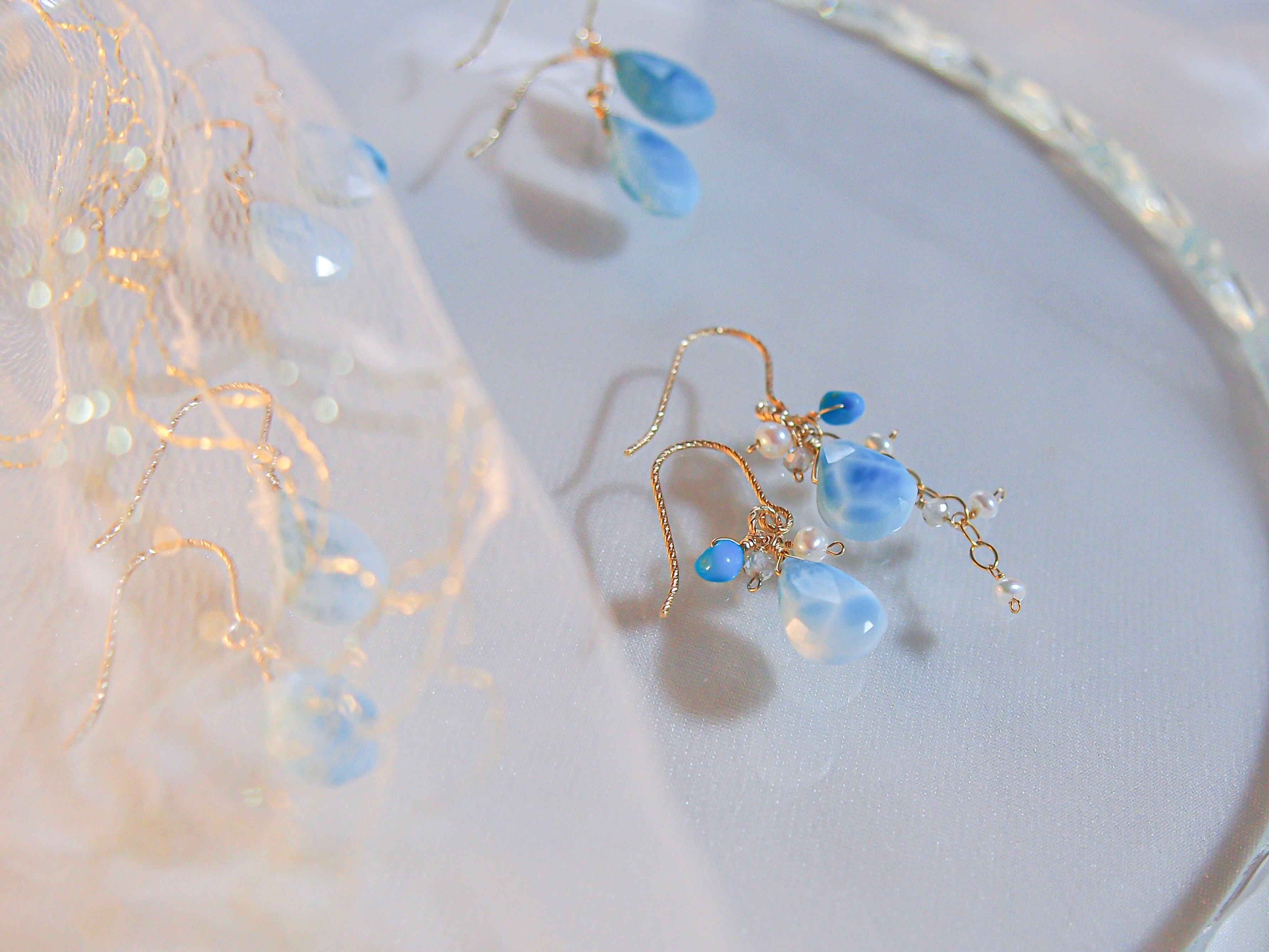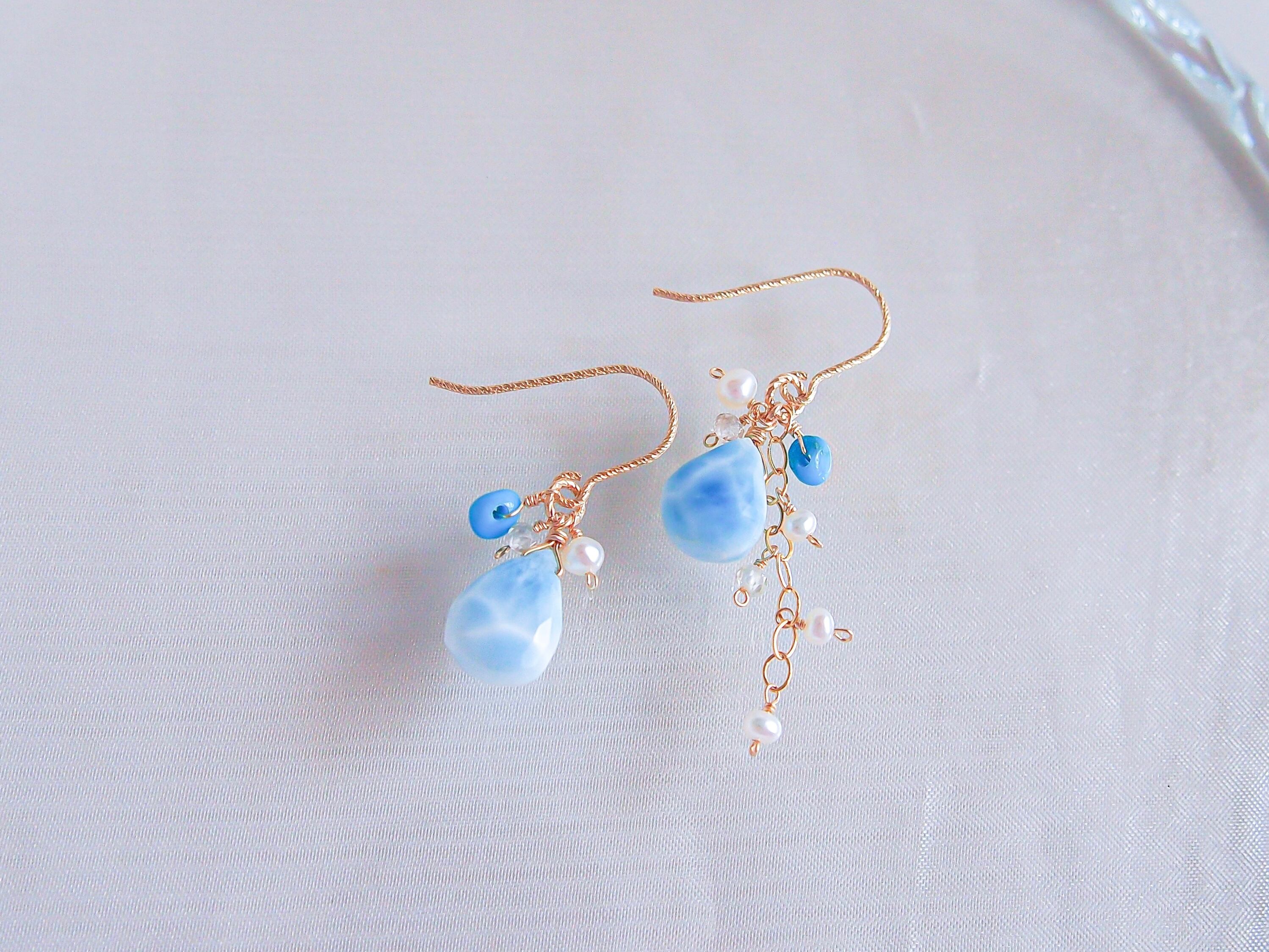 【人魚の涙】- tears of a mermaid -|ラリマー ドロップ ピアス/イヤリング|14kgf 天然石