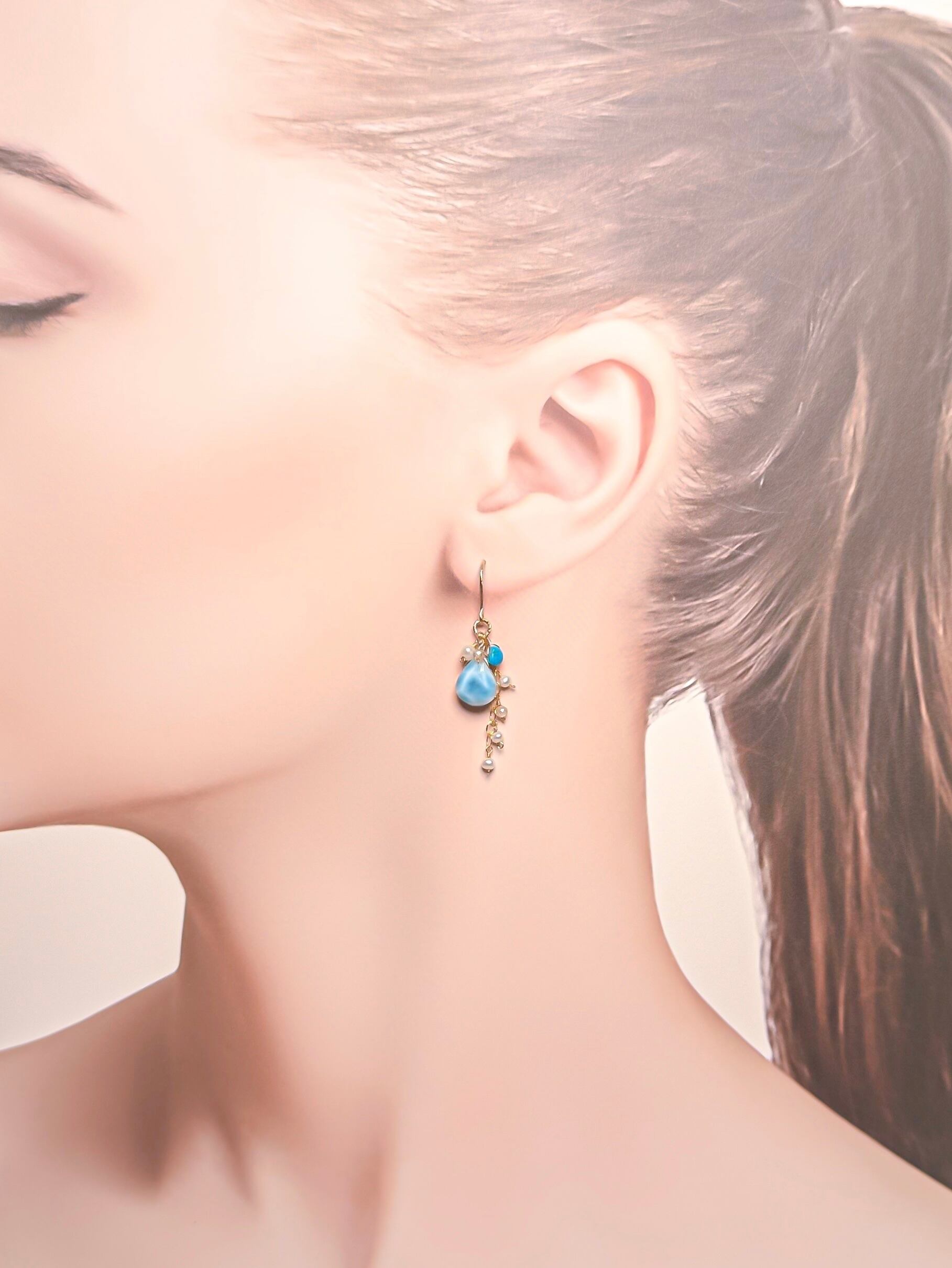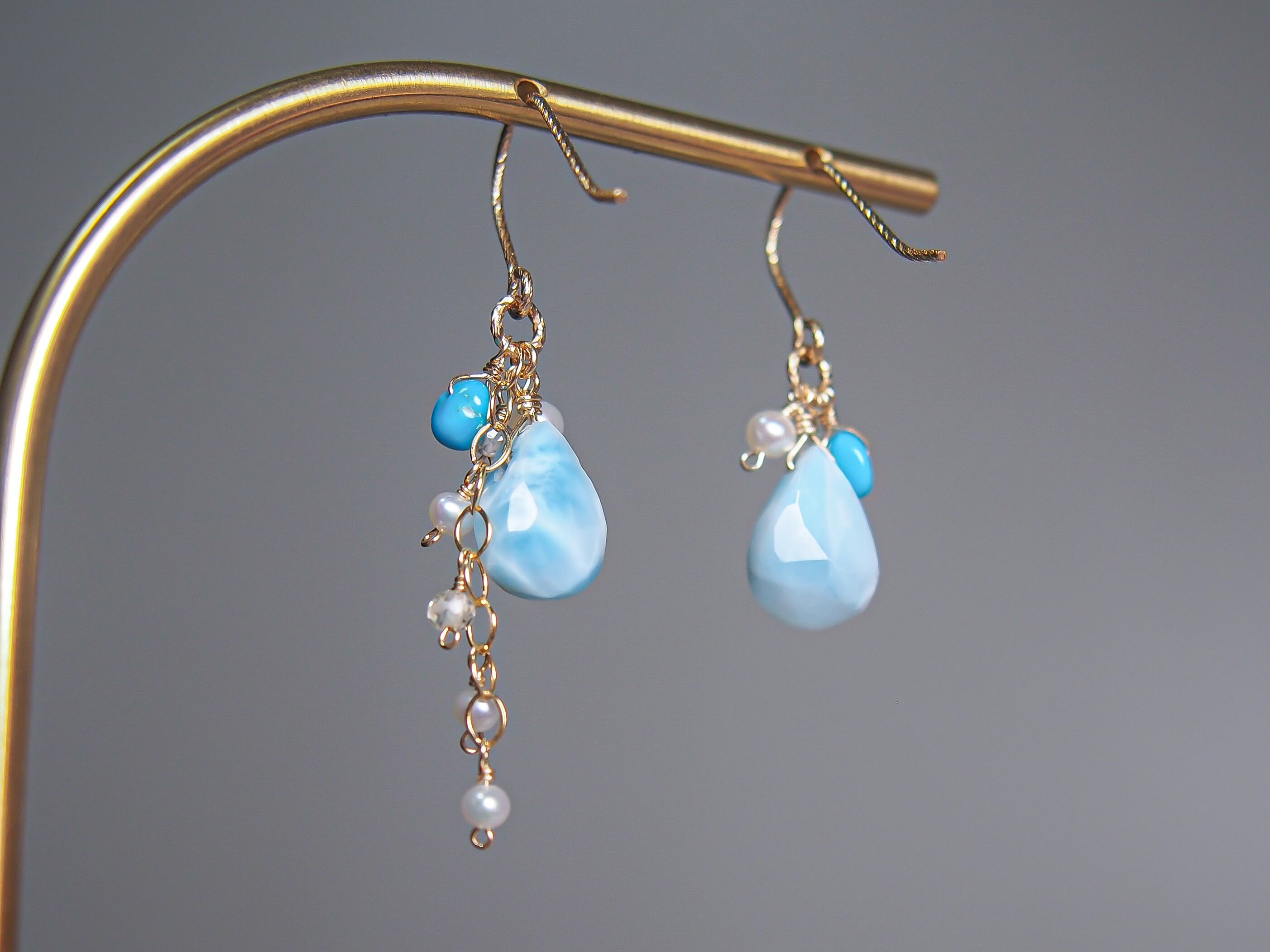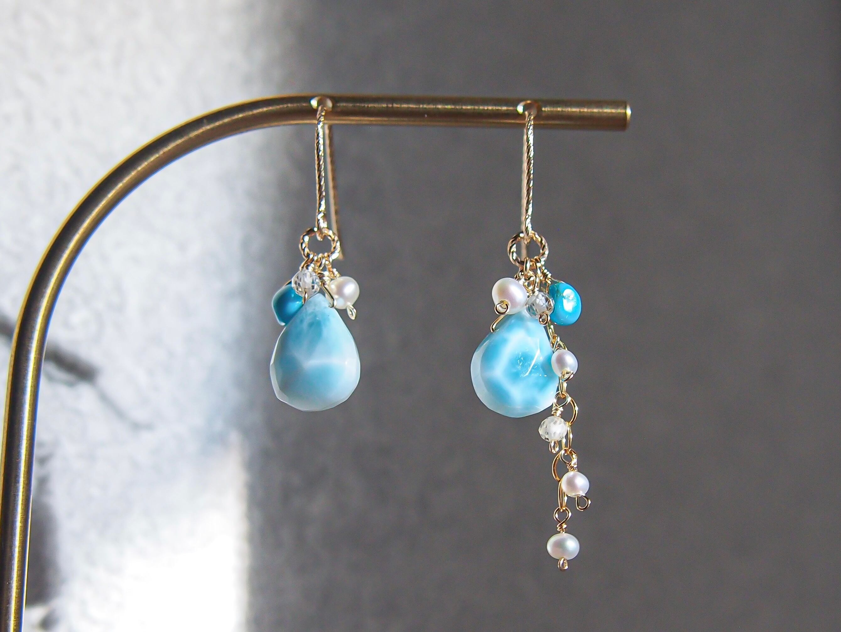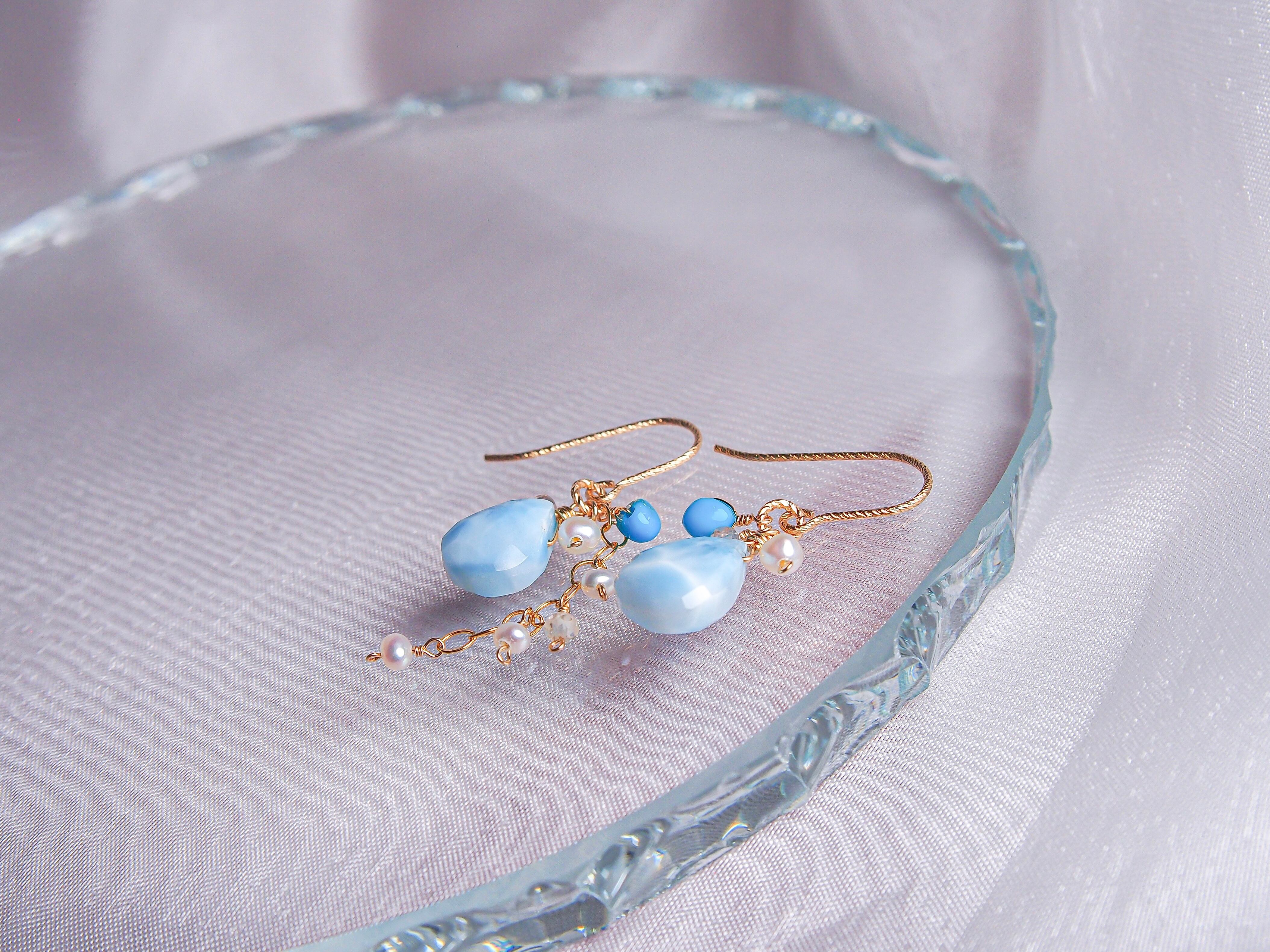 【人魚の涙】- tears of a mermaid -|ラリマー ドロップ ピアス/イヤリング|14kgf 天然石