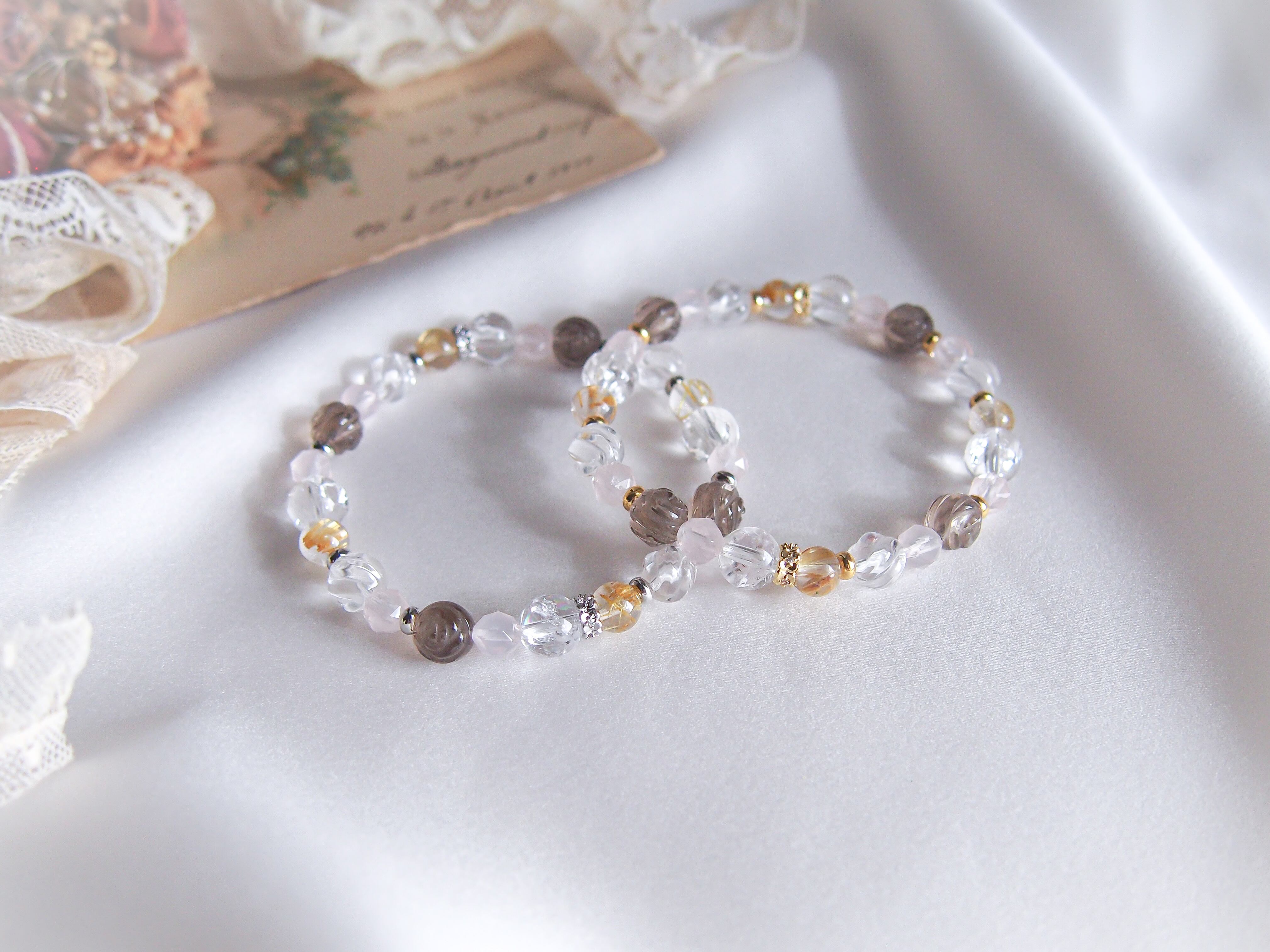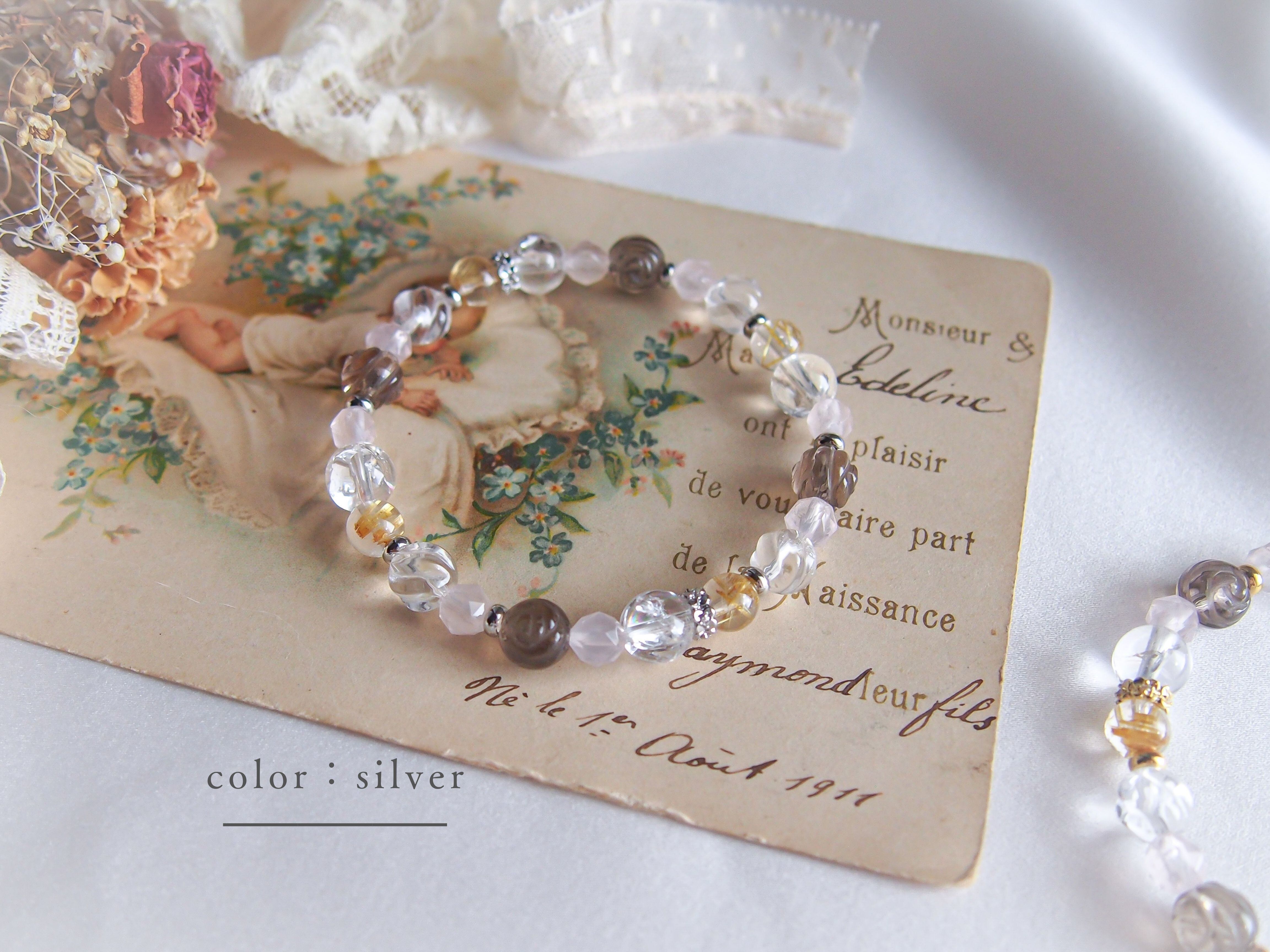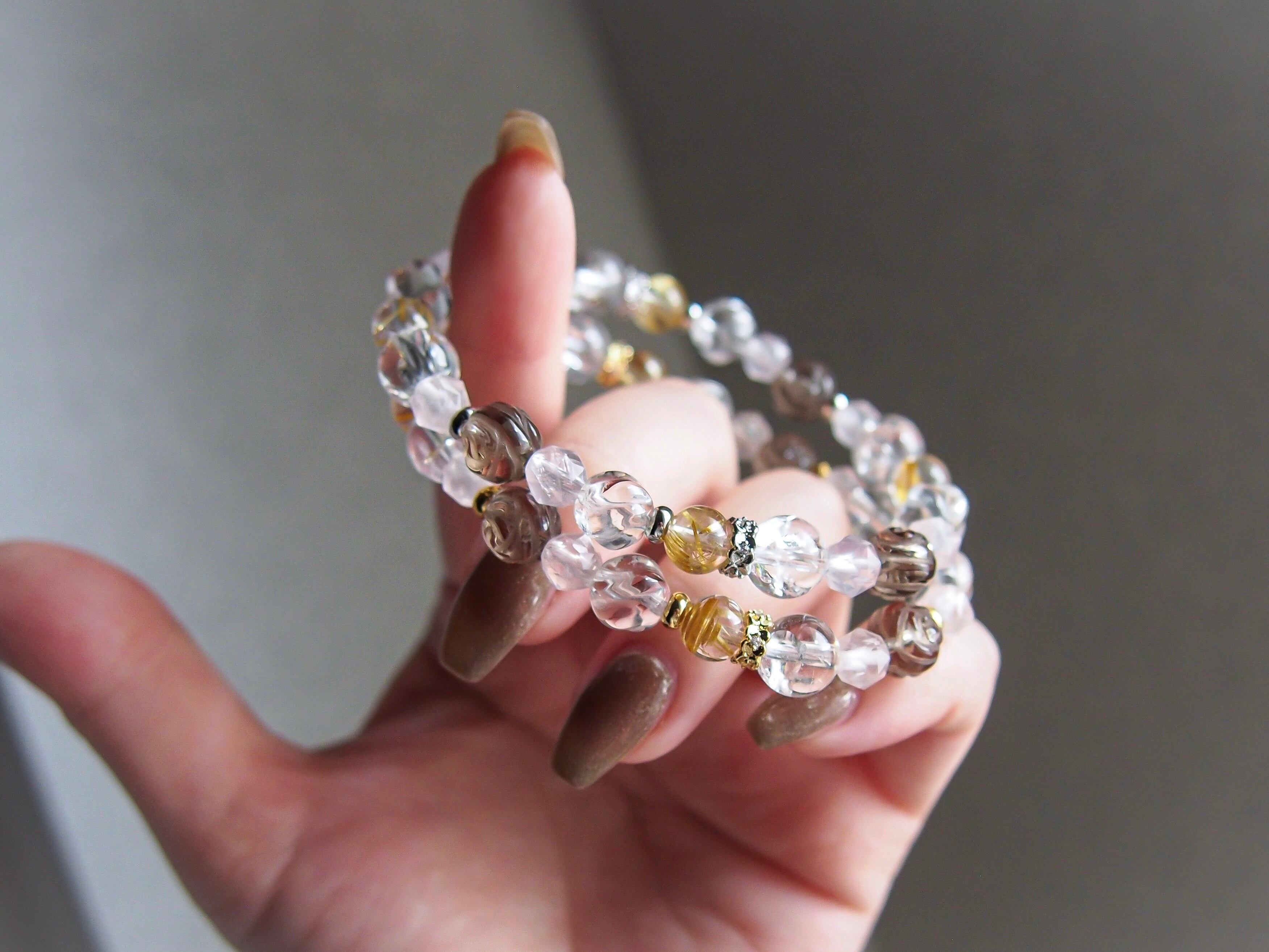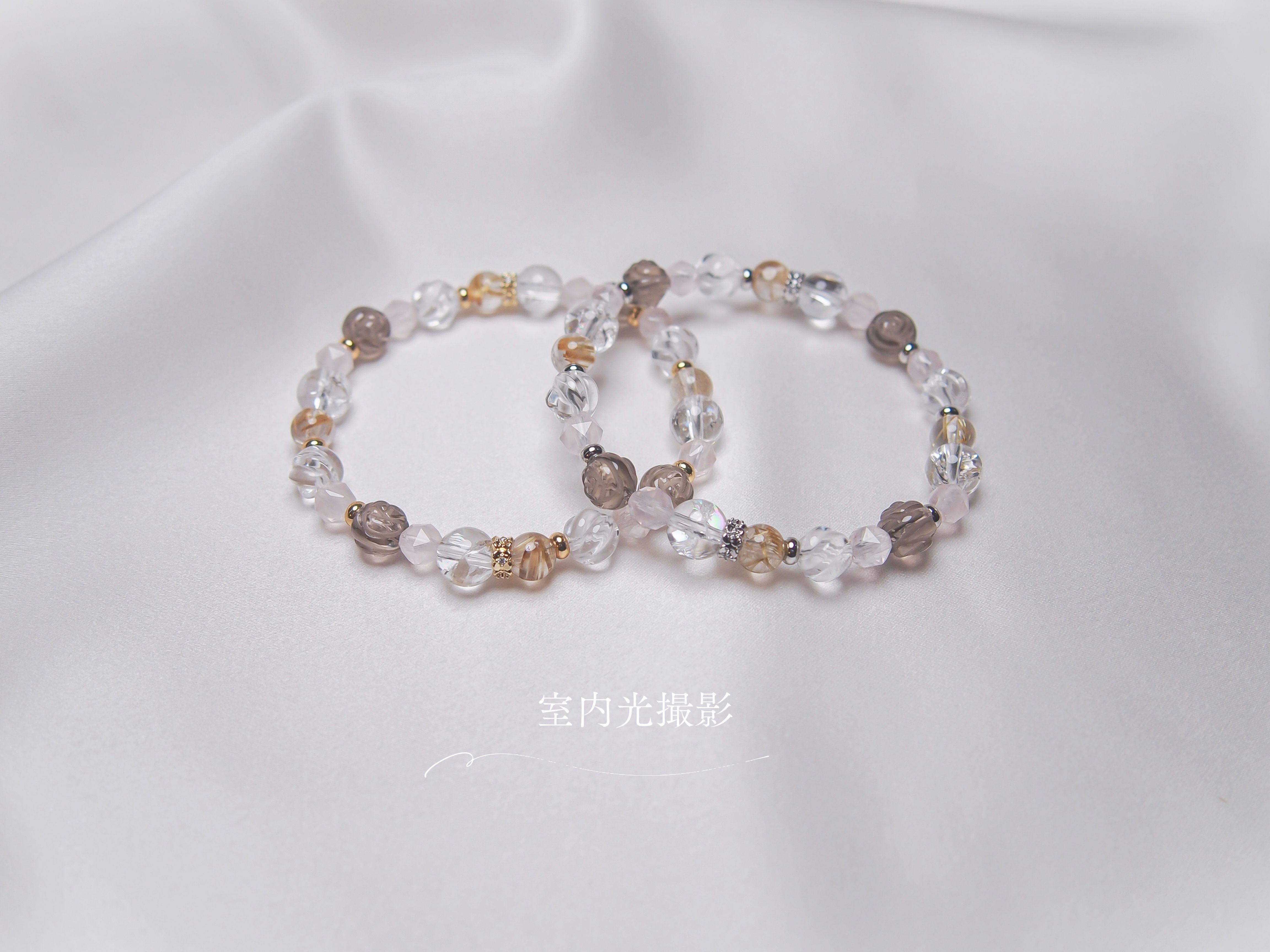 パーツや珠の配列などのデザインはおまかせになりますが、全体の雰囲気を崩さないようバランスをみて調整いたします。(ルチル以外の珠/パーツの増減にて調整)
