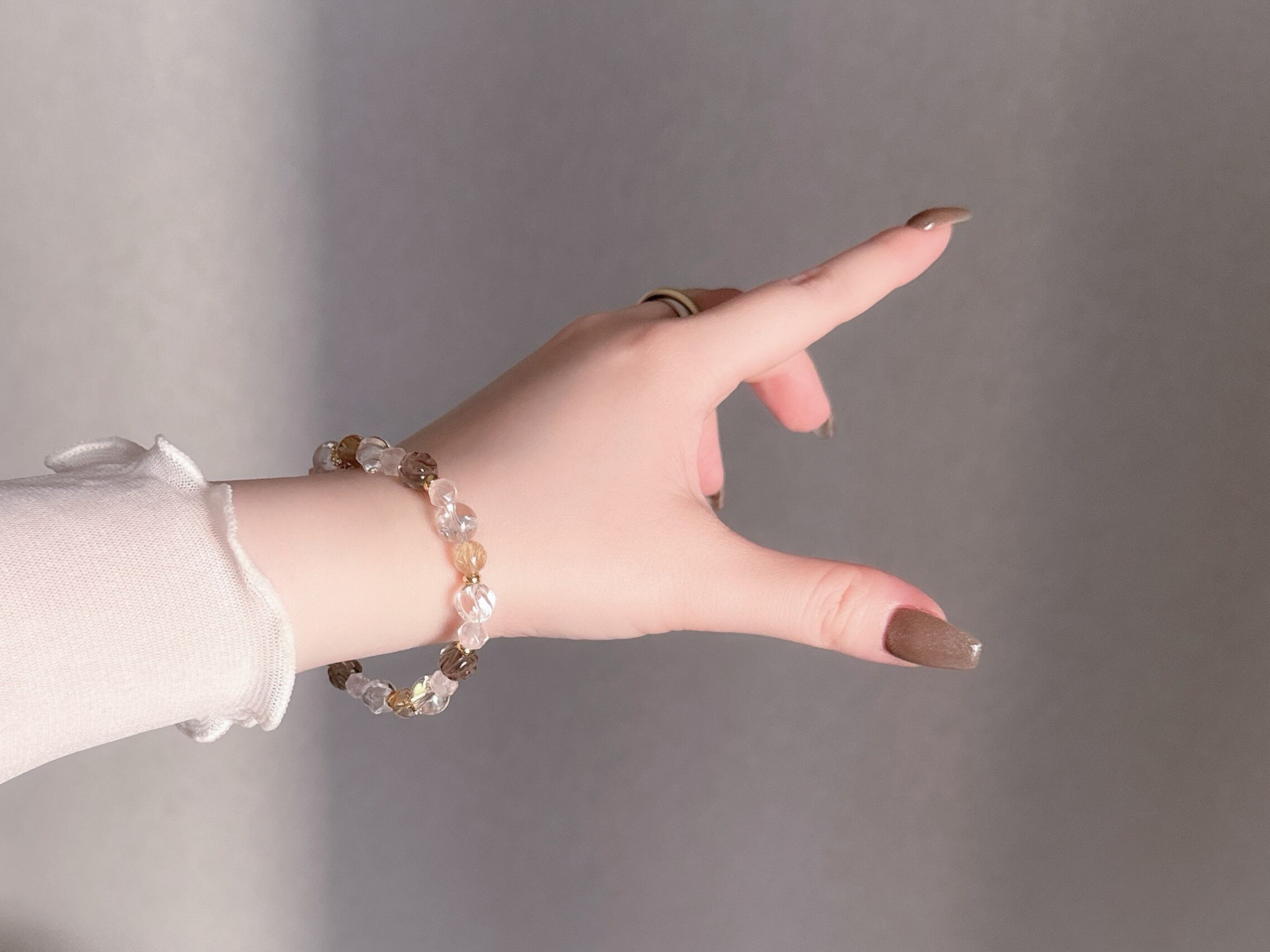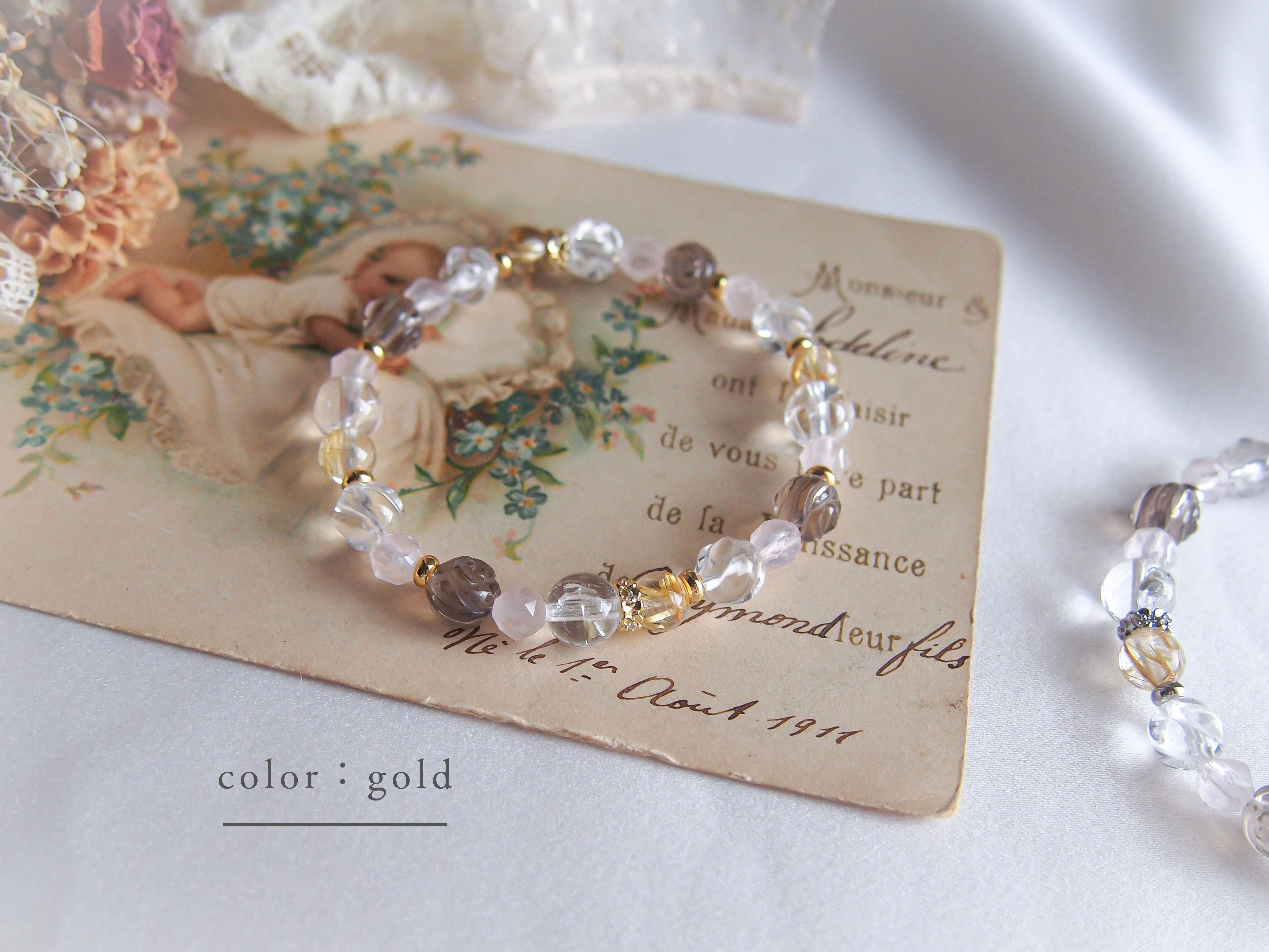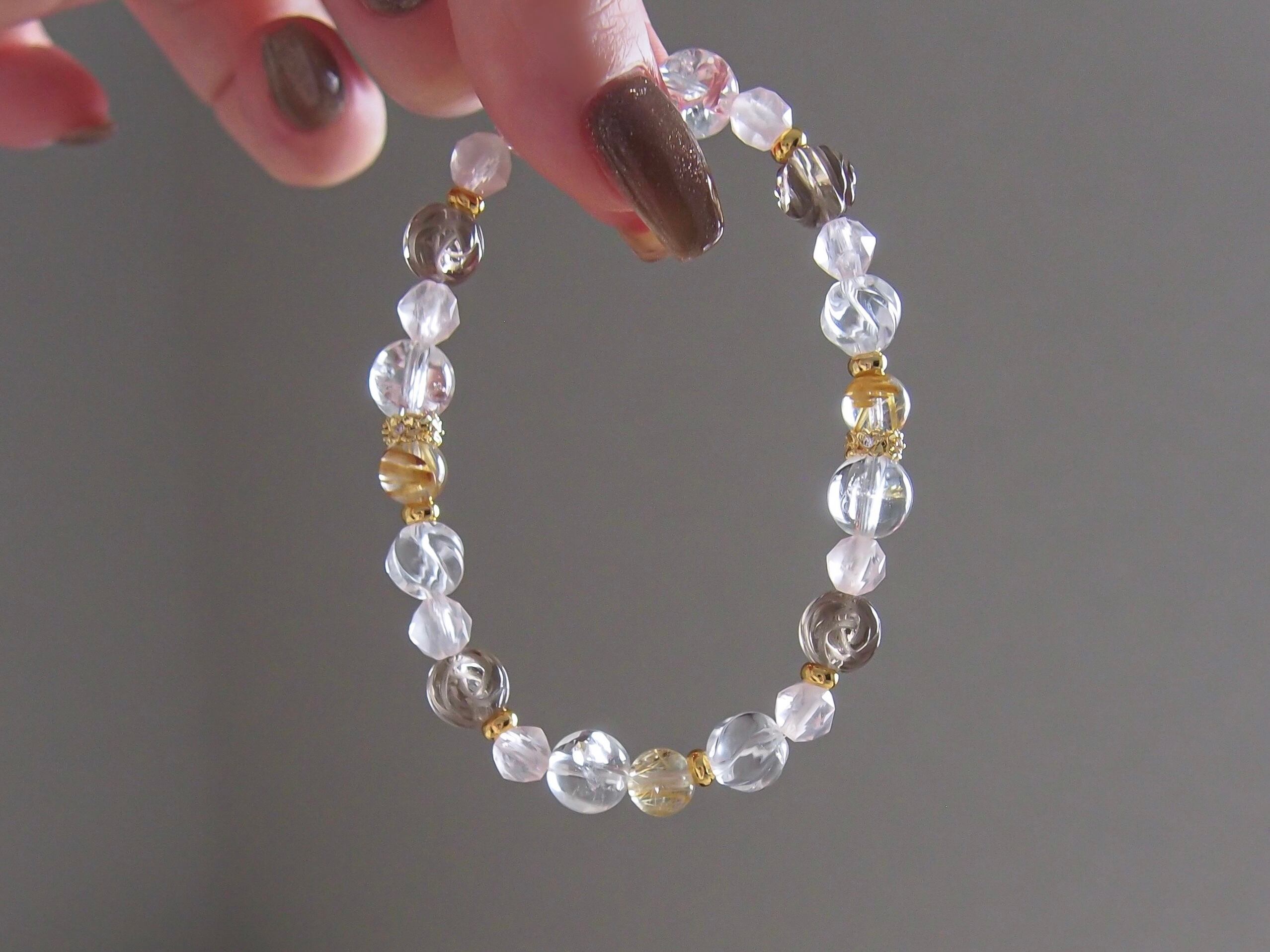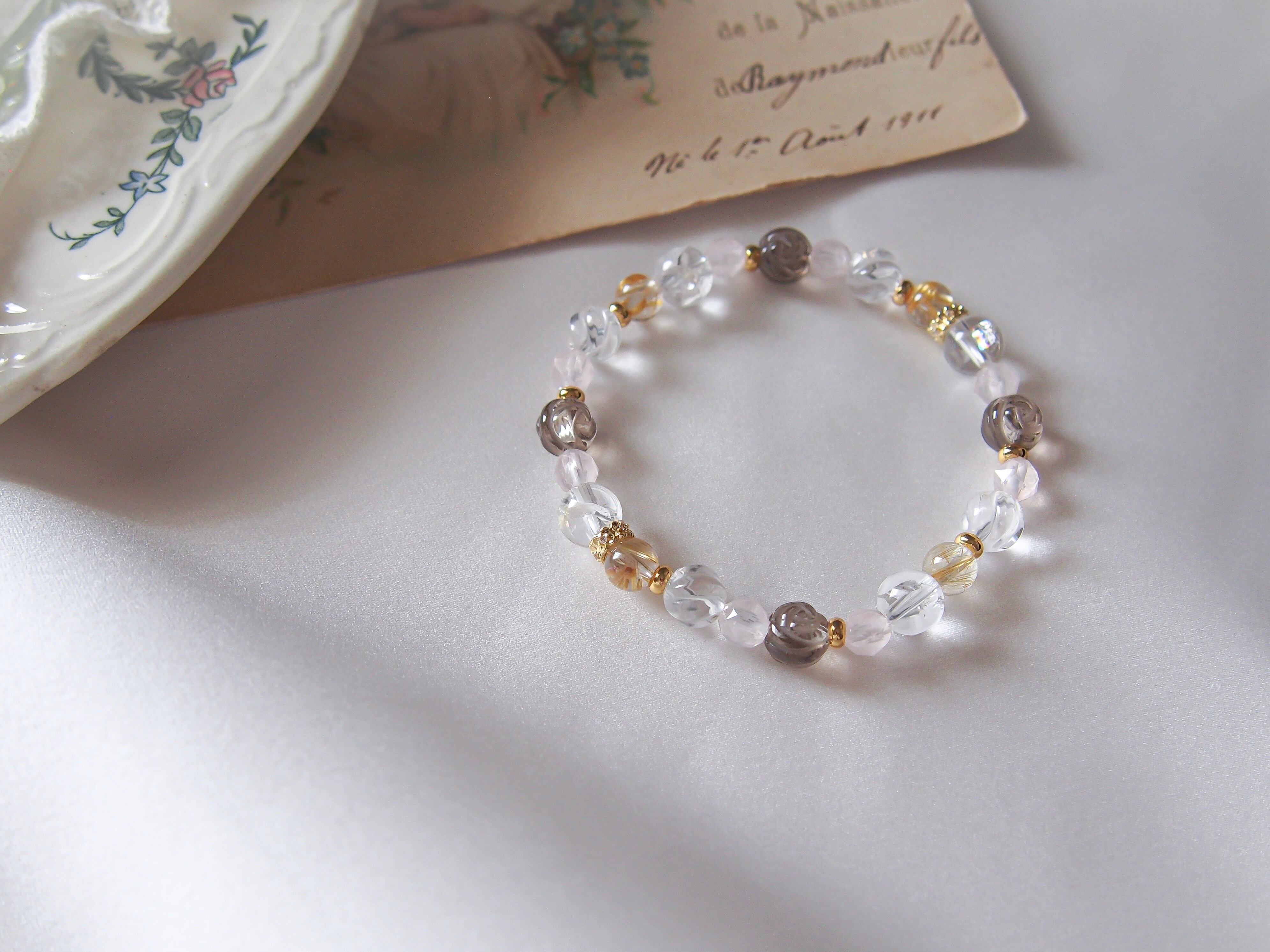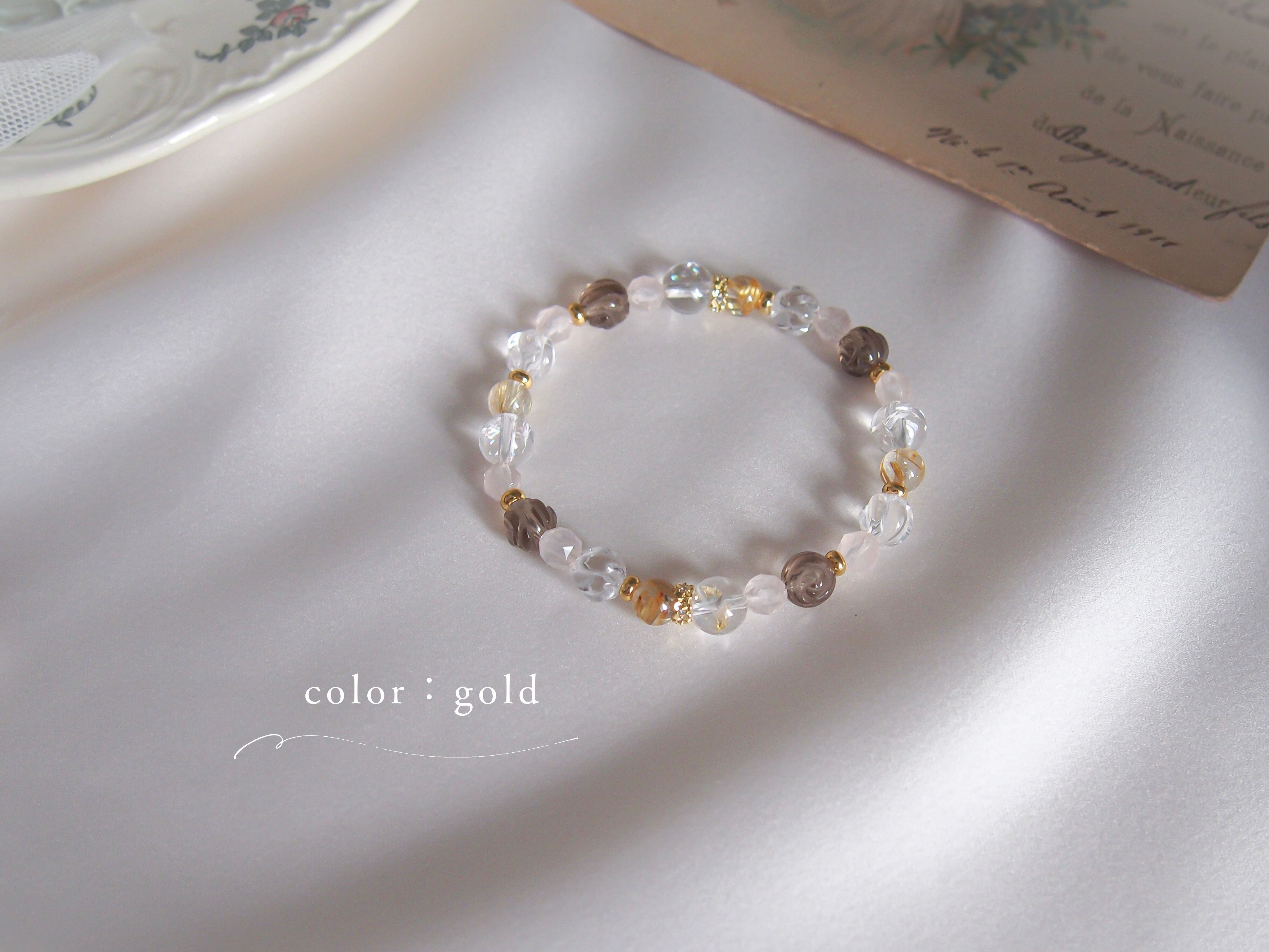 パーツや珠の配列などのデザインはおまかせになりますが、全体の雰囲気を崩さないようバランスをみて調整いたします。(ルチル以外の珠/パーツの増減にて調整)