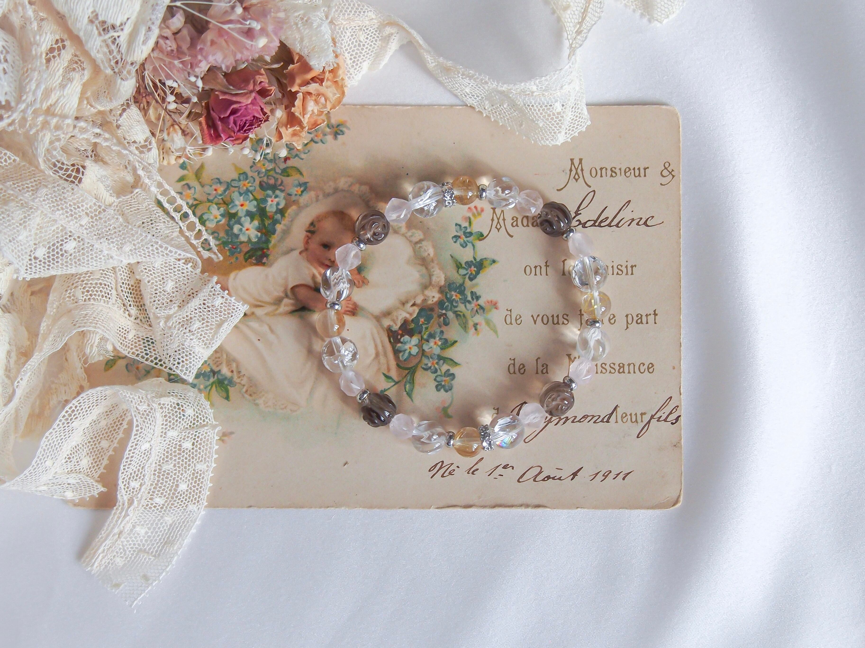 薔薇彫り スモーキークォーツ 8mm