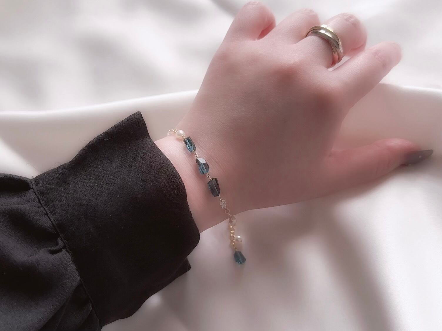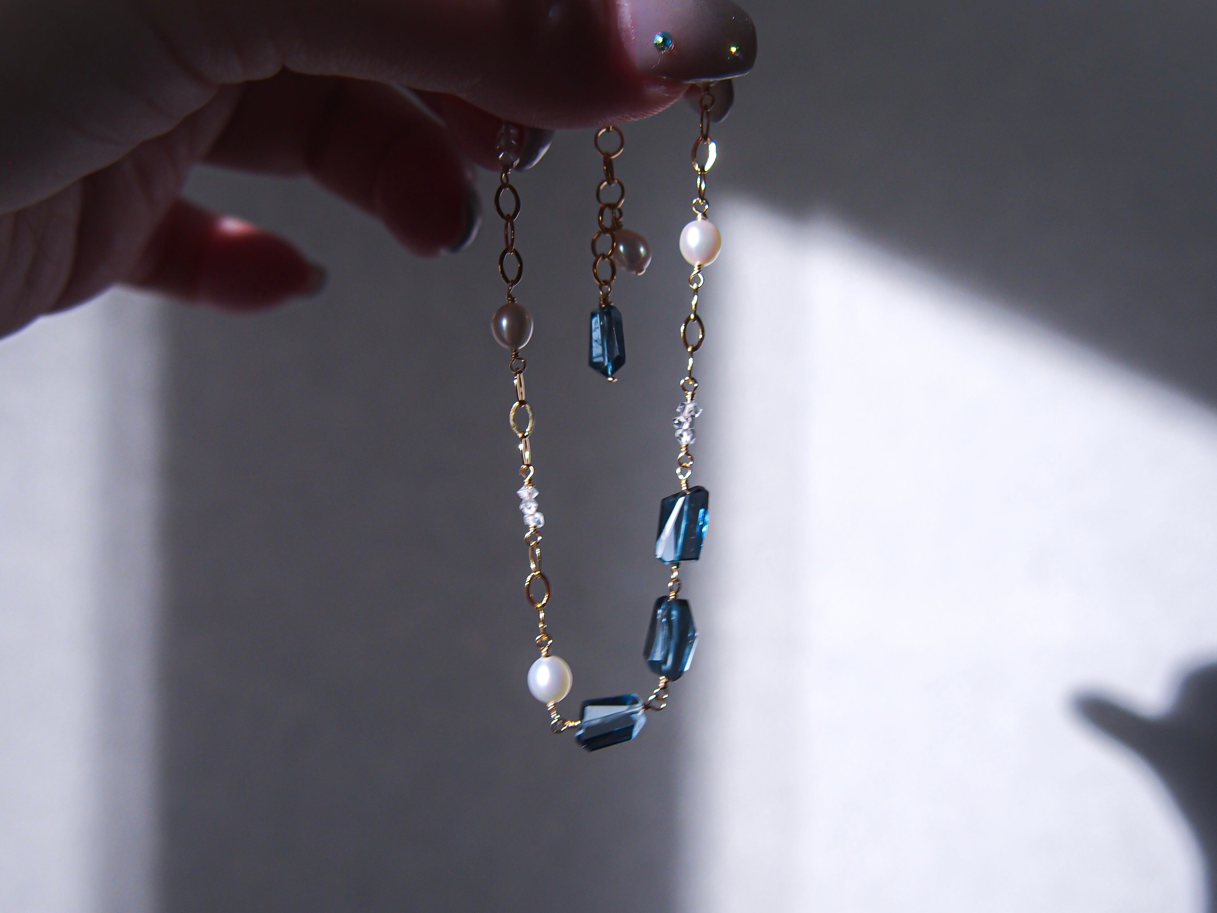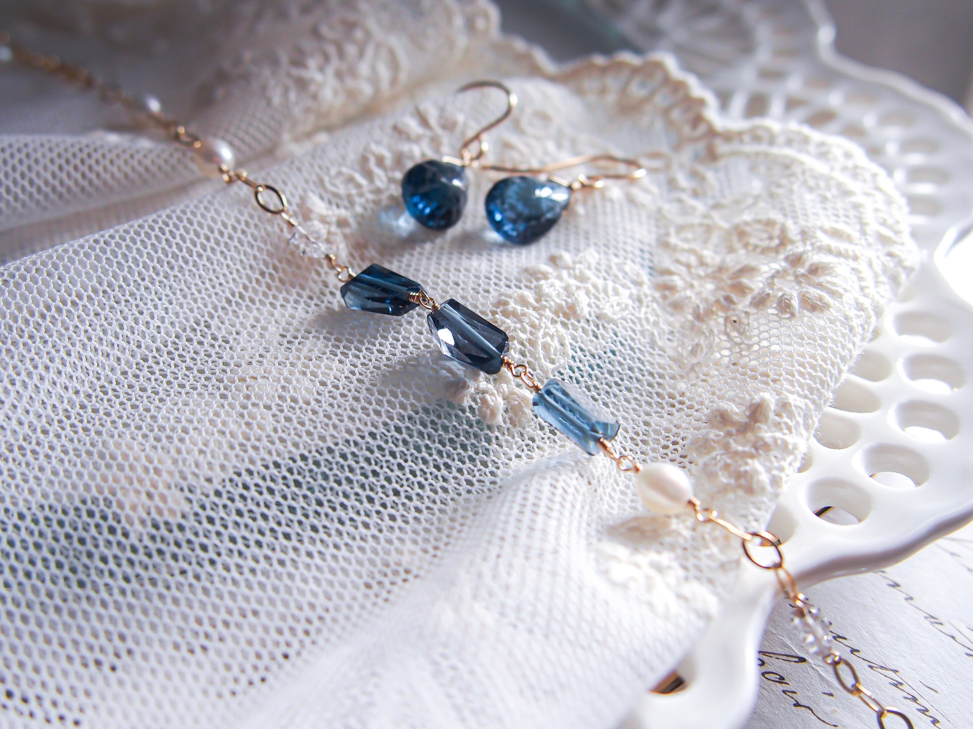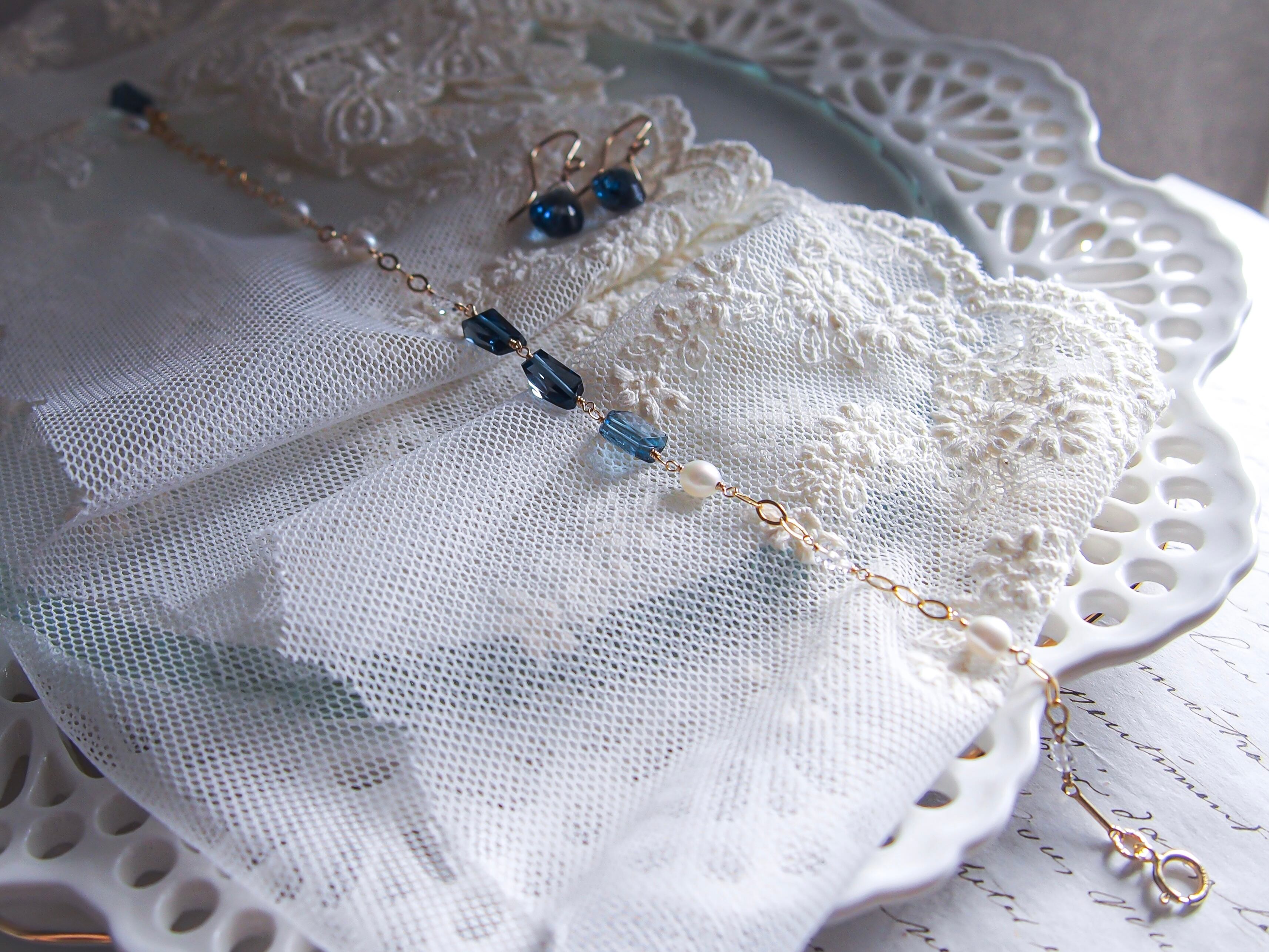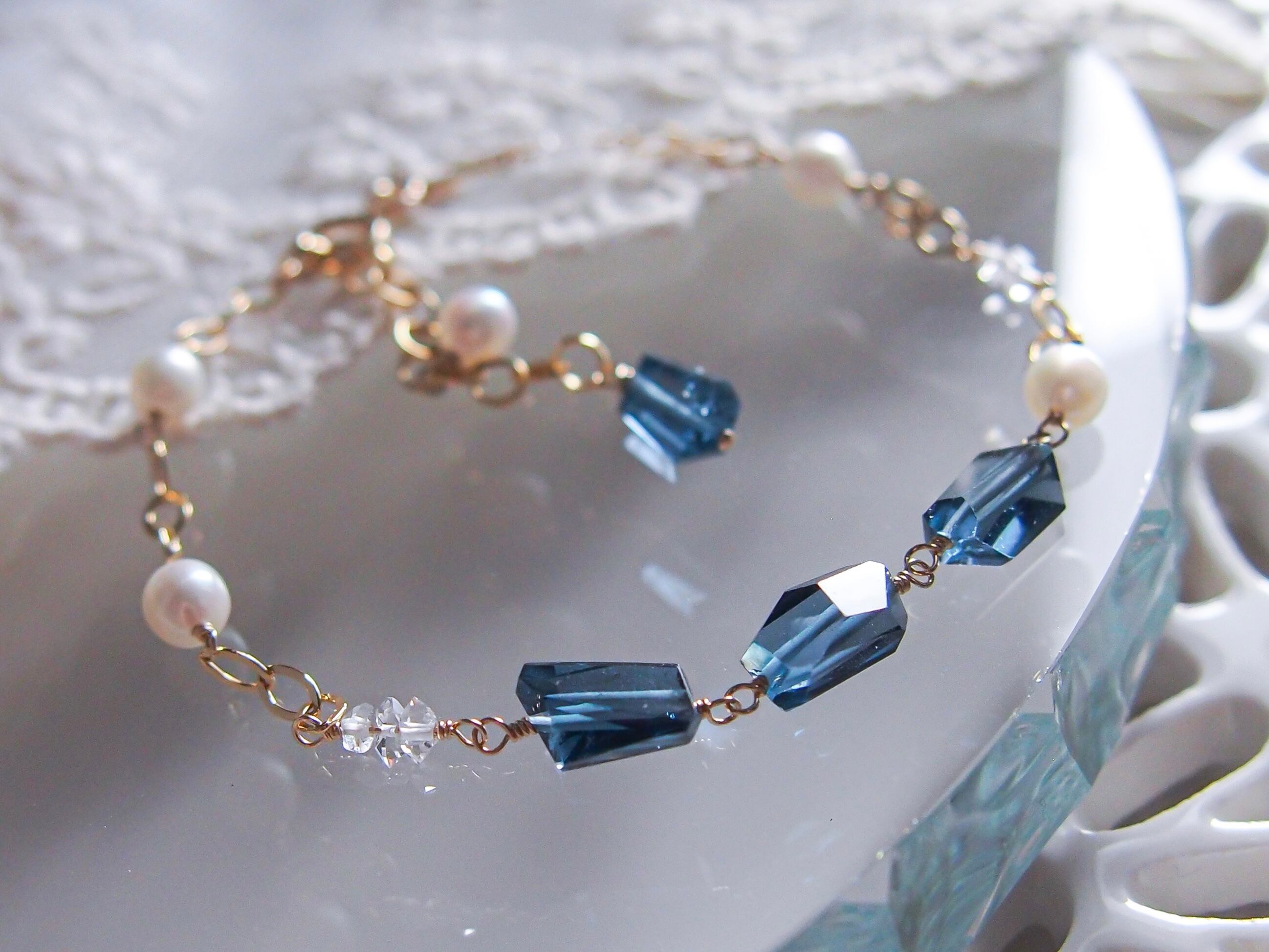 【 silent night 】|宝石質 ロンドンブルートパーズ × 淡水パール × ダイヤモンドクォーツ ブレスレット|14kgf ゴールド 天然石 真珠 トパーズ 11月誕生石