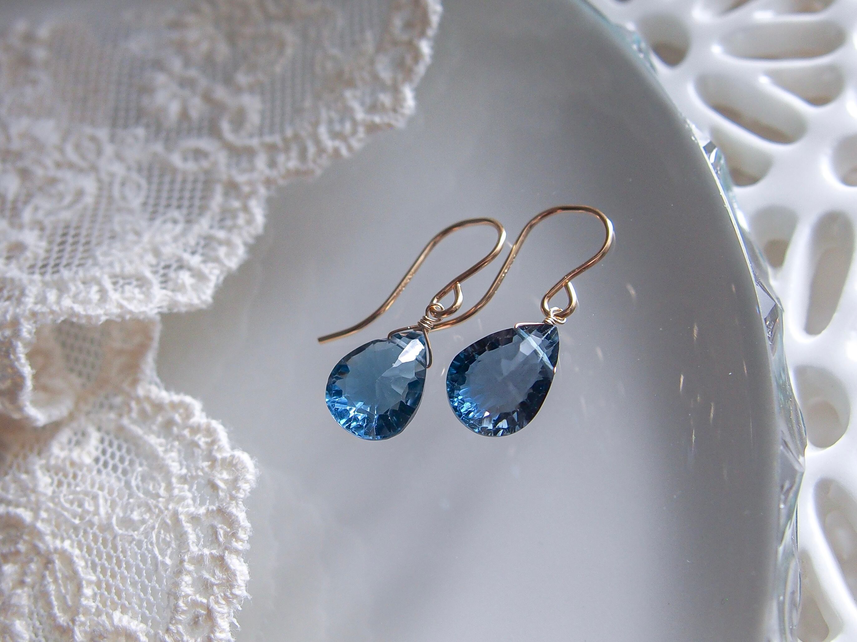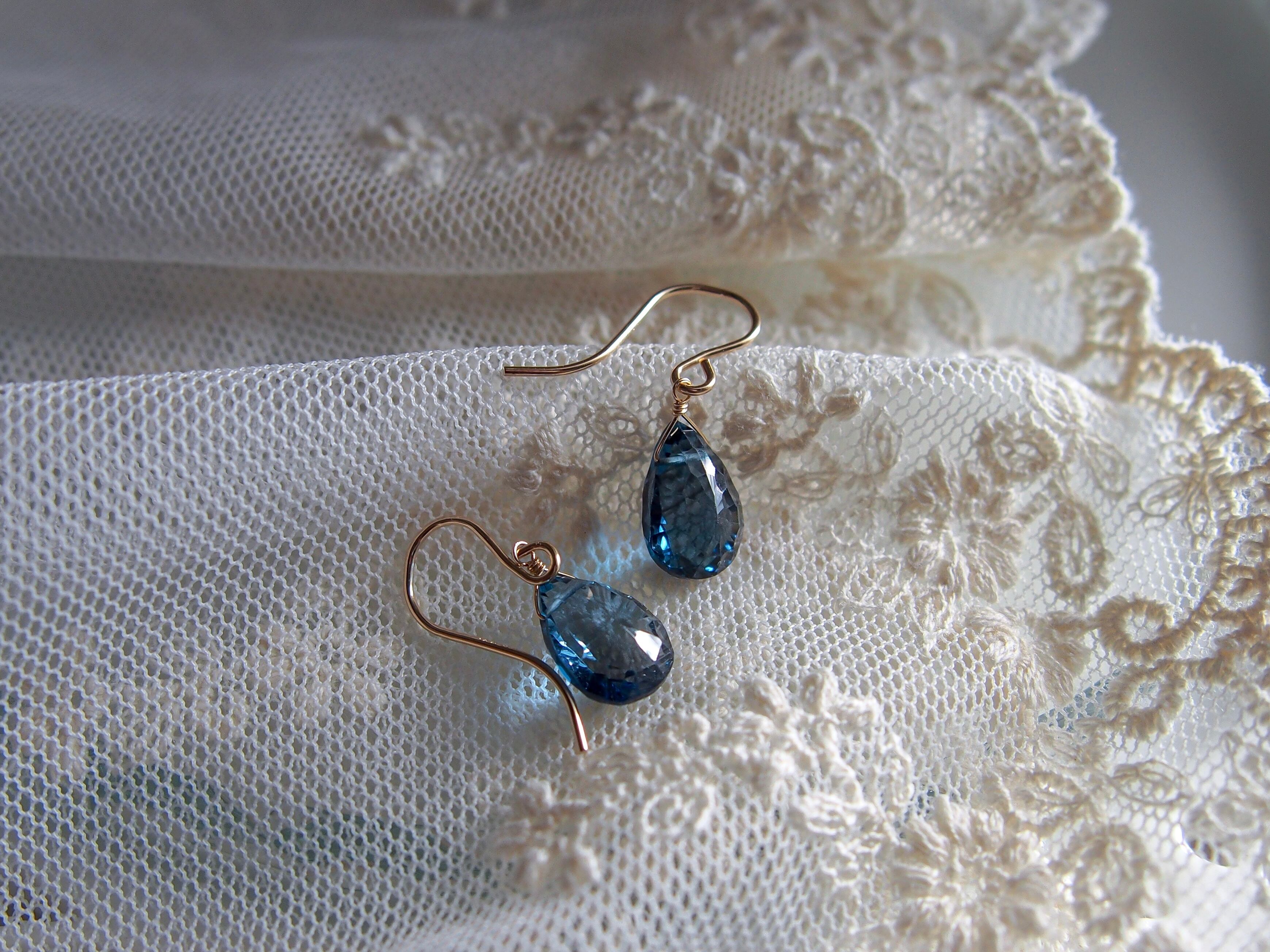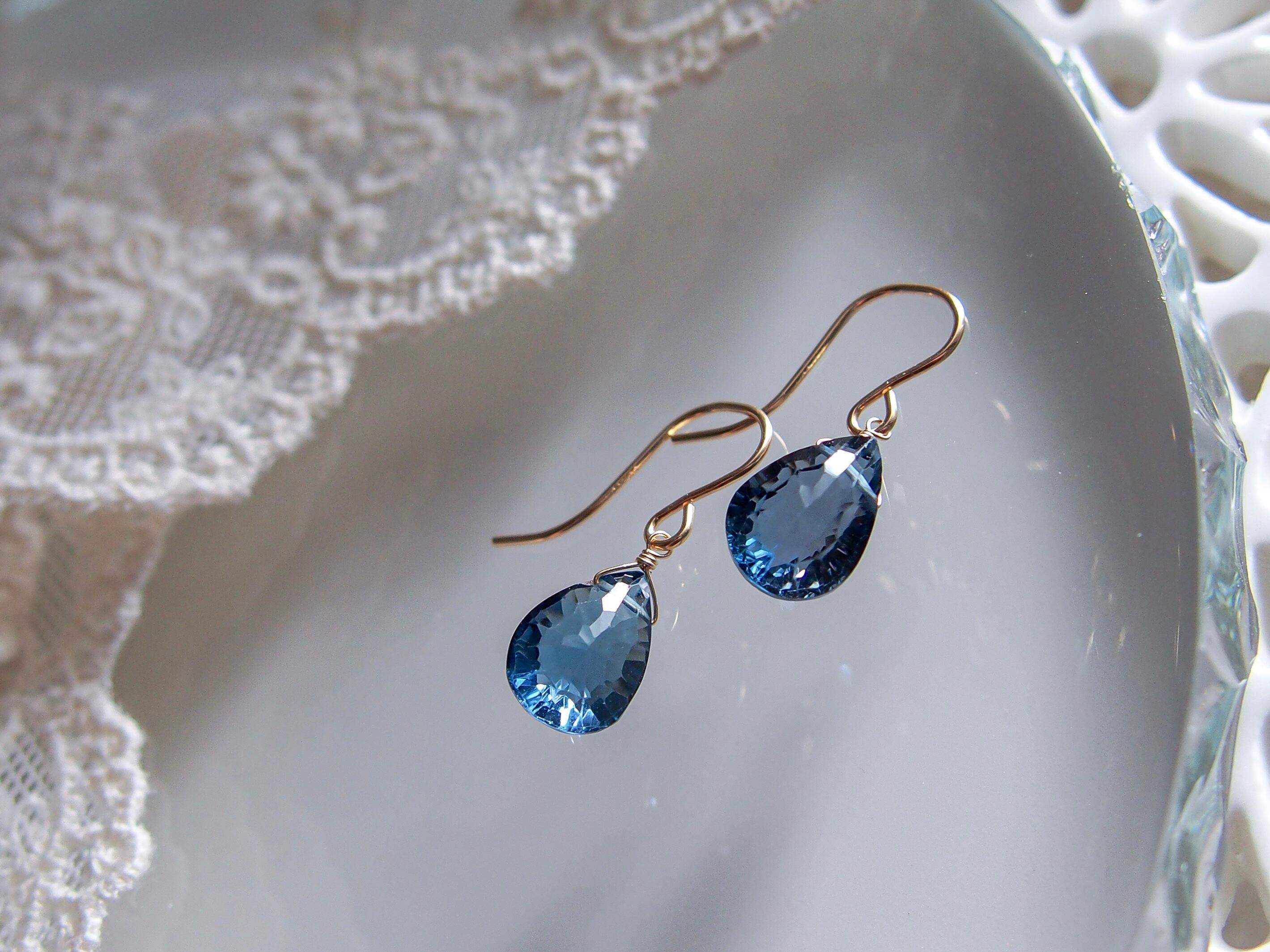 【 蒼 - London Blue Topaz -⠀】極上 宝石質 ロンドンブルートパーズ 一粒ピアス/イヤリング|14kgf 天然石 11月誕生石