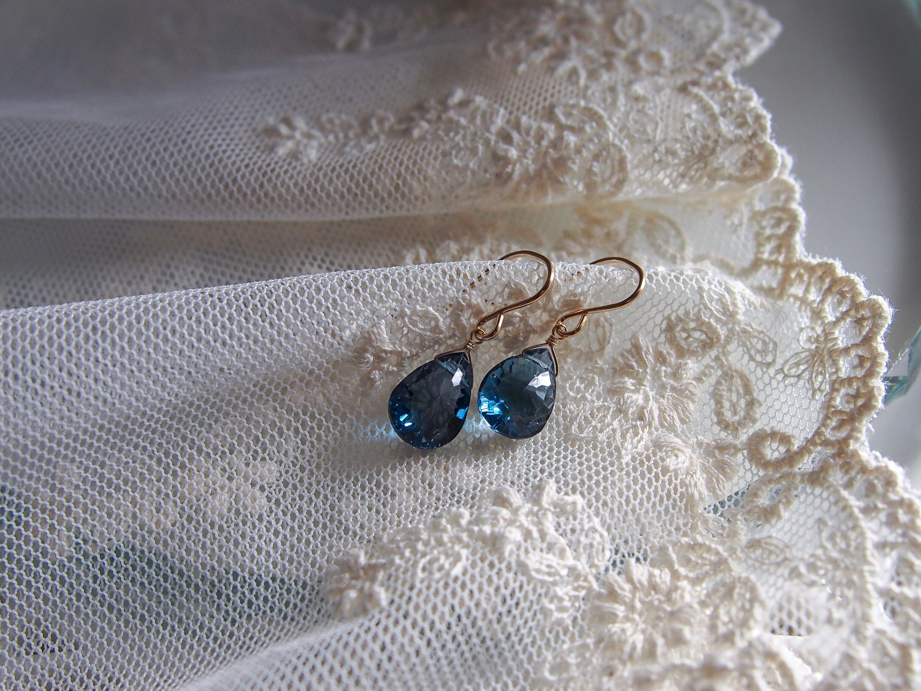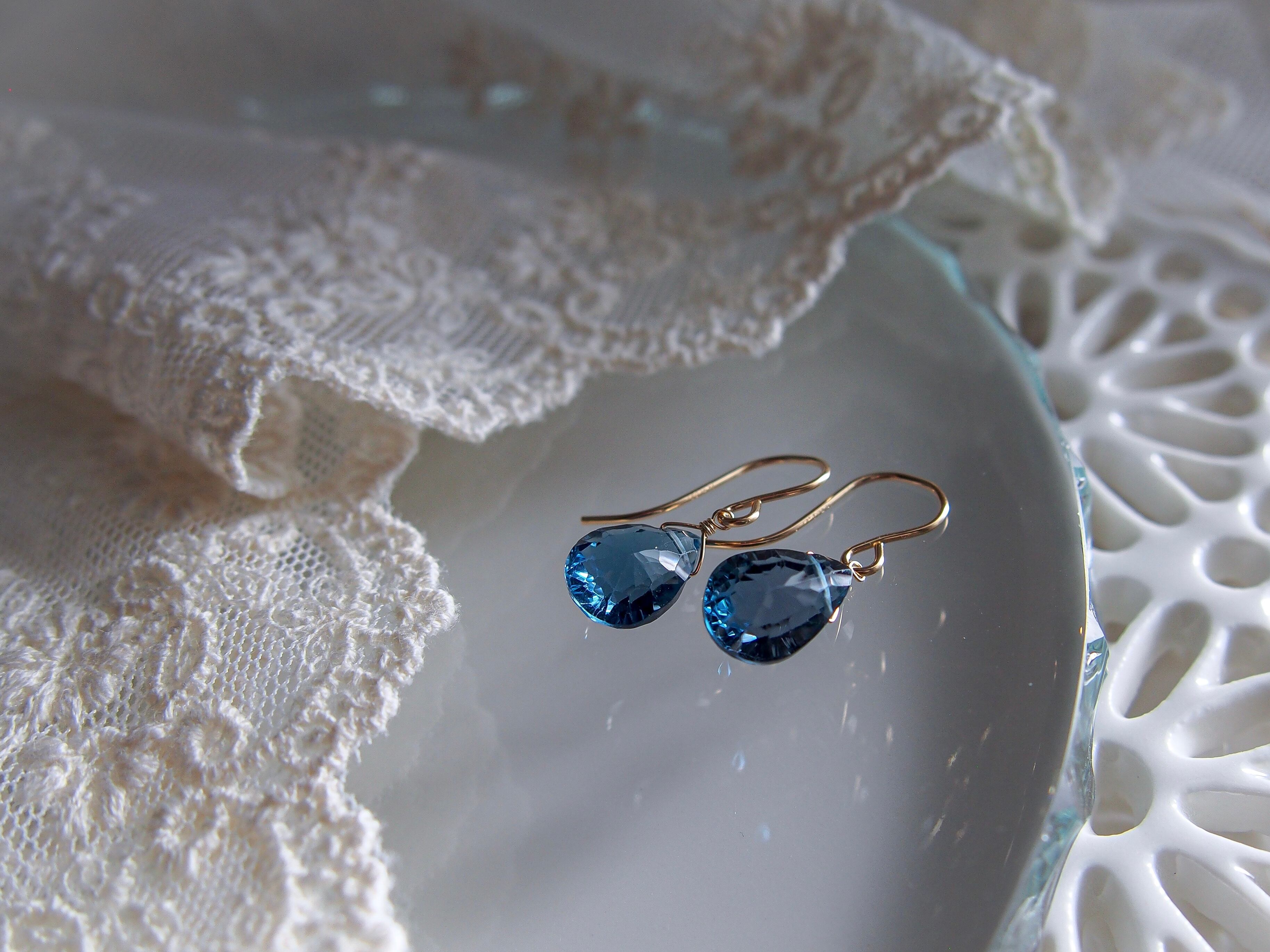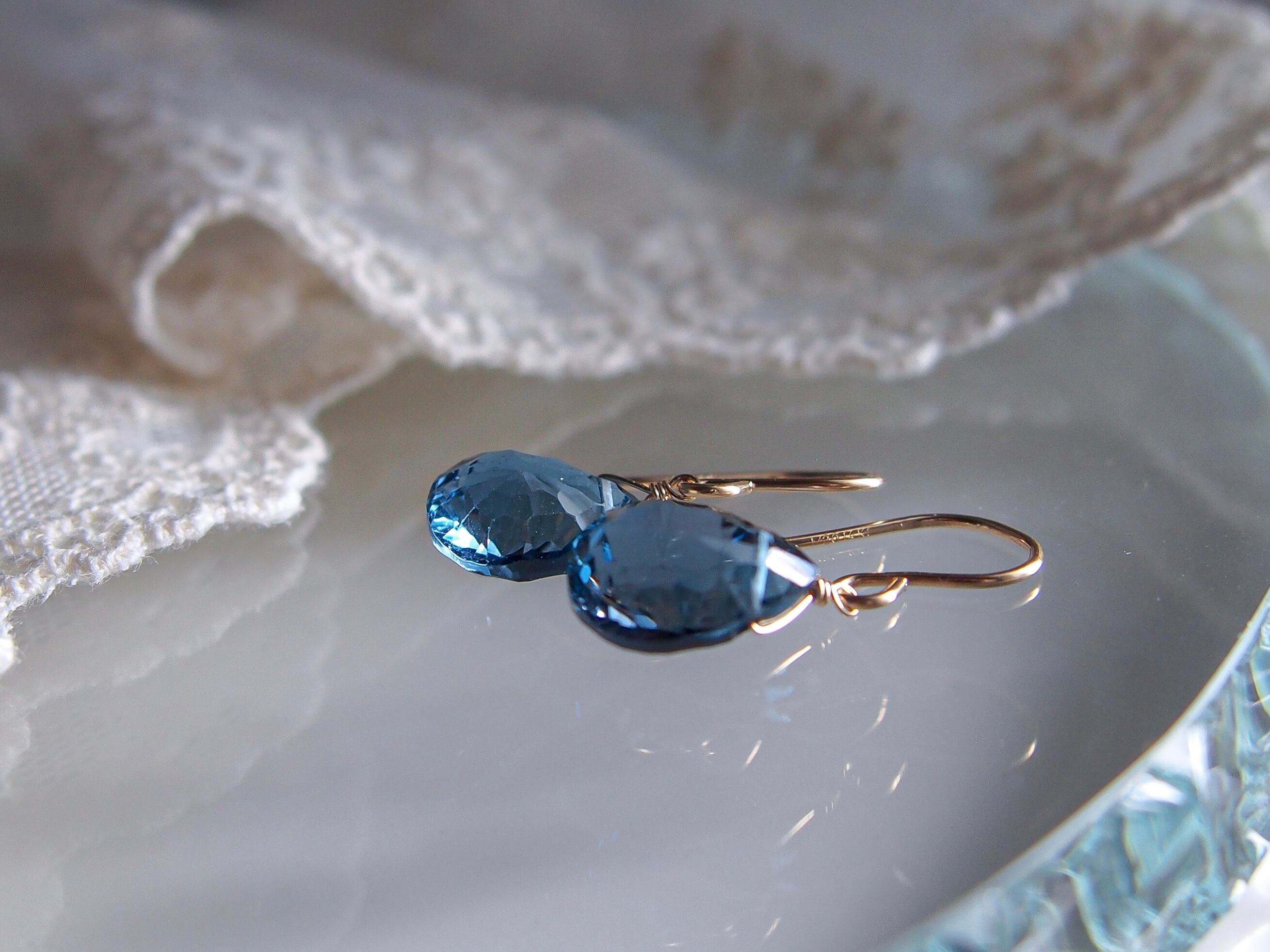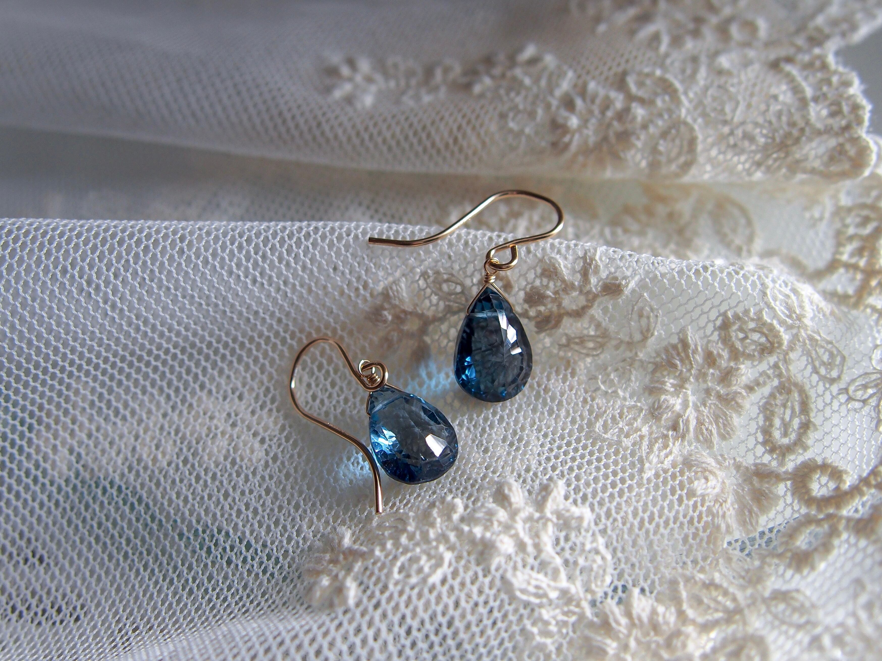 【 蒼 - London Blue Topaz -⠀】極上 宝石質 ロンドンブルートパーズ 一粒ピアス/イヤリング|14kgf 天然石 11月誕生石