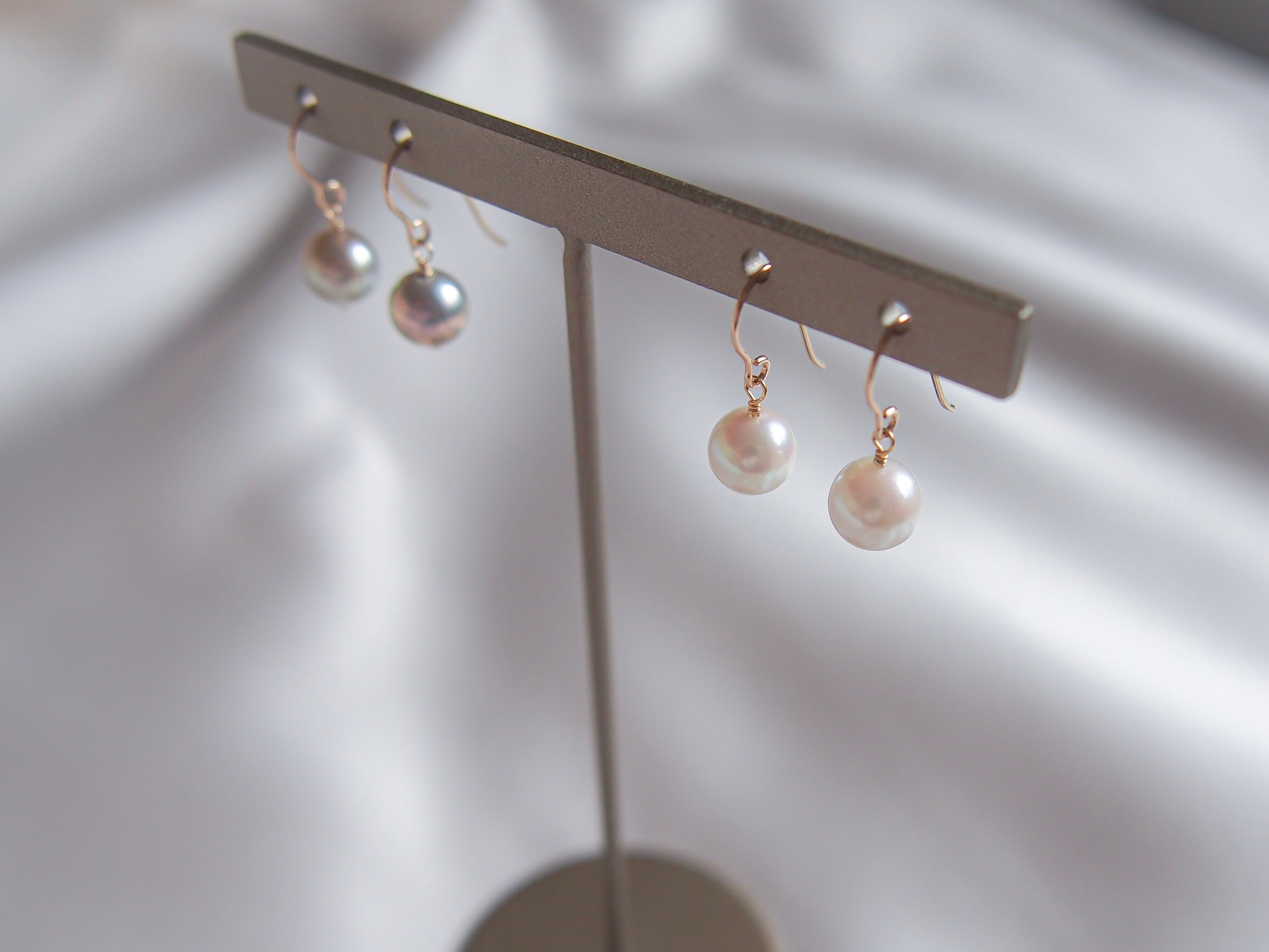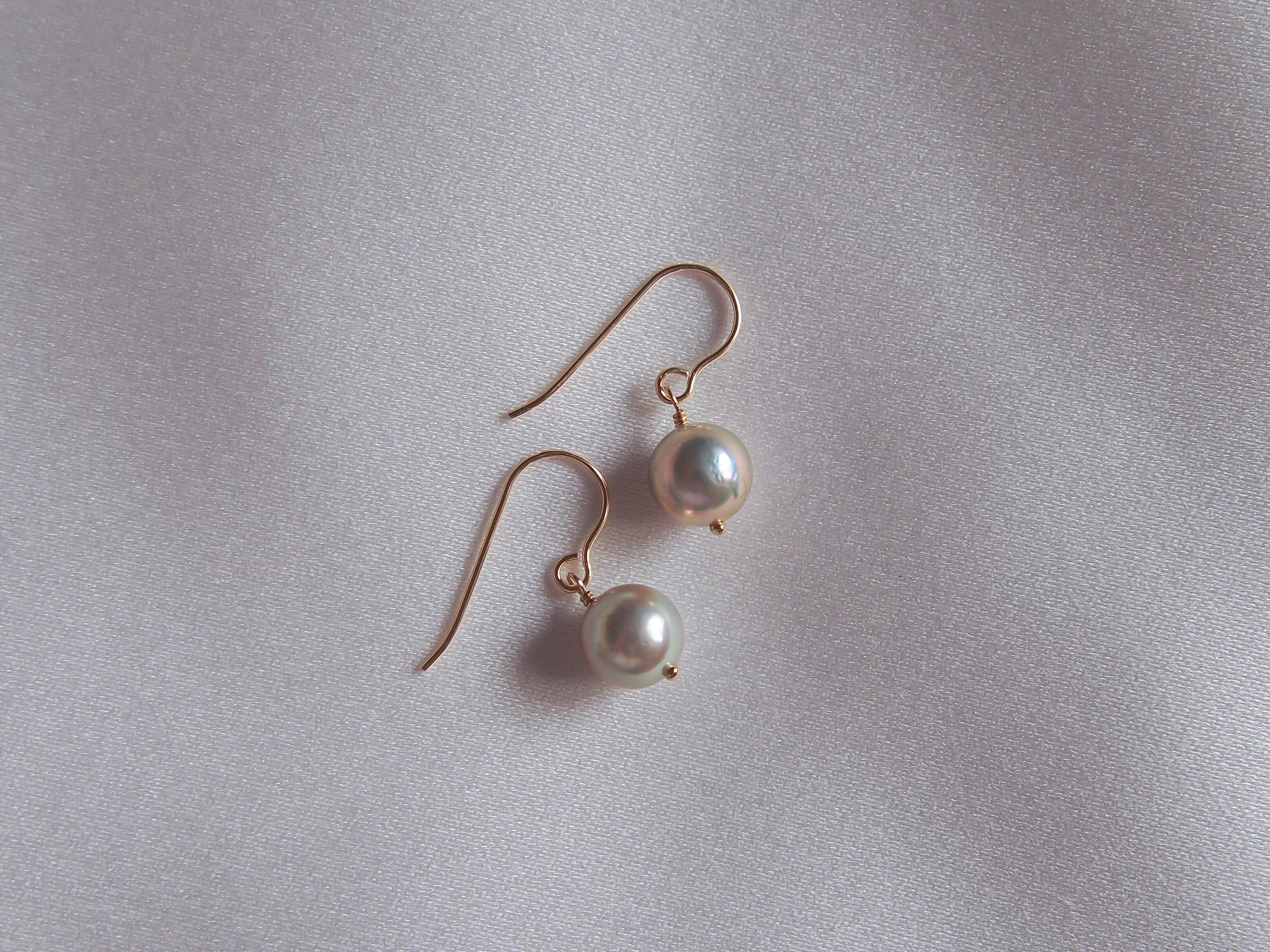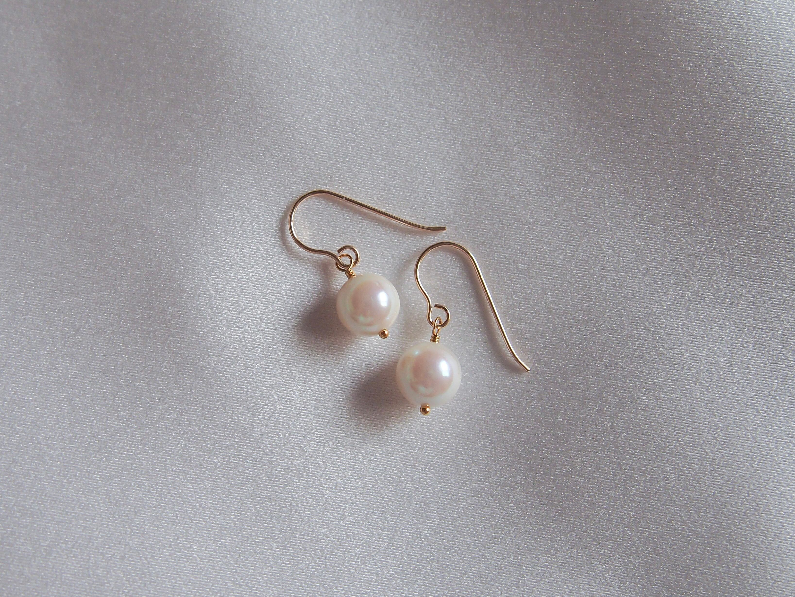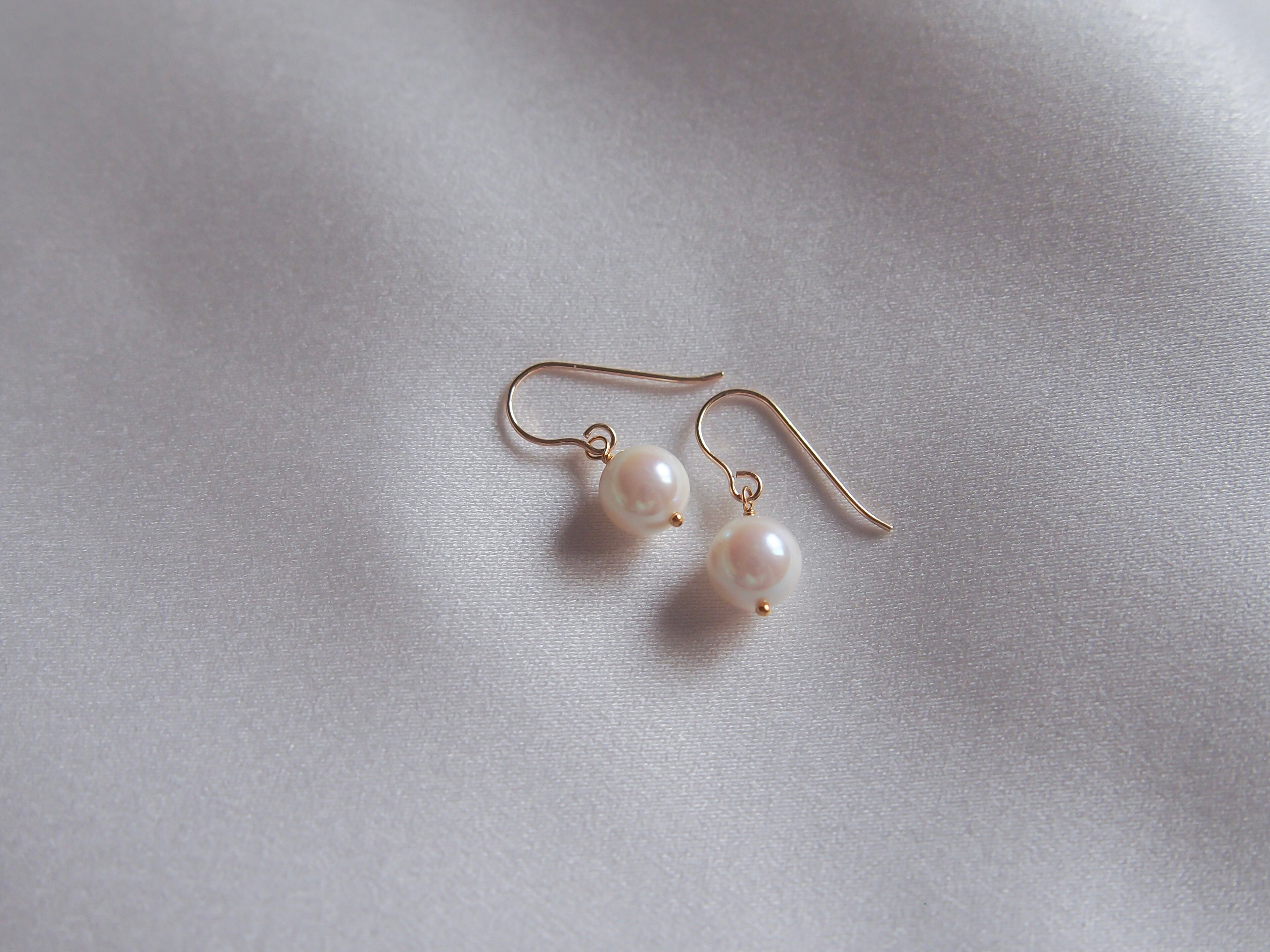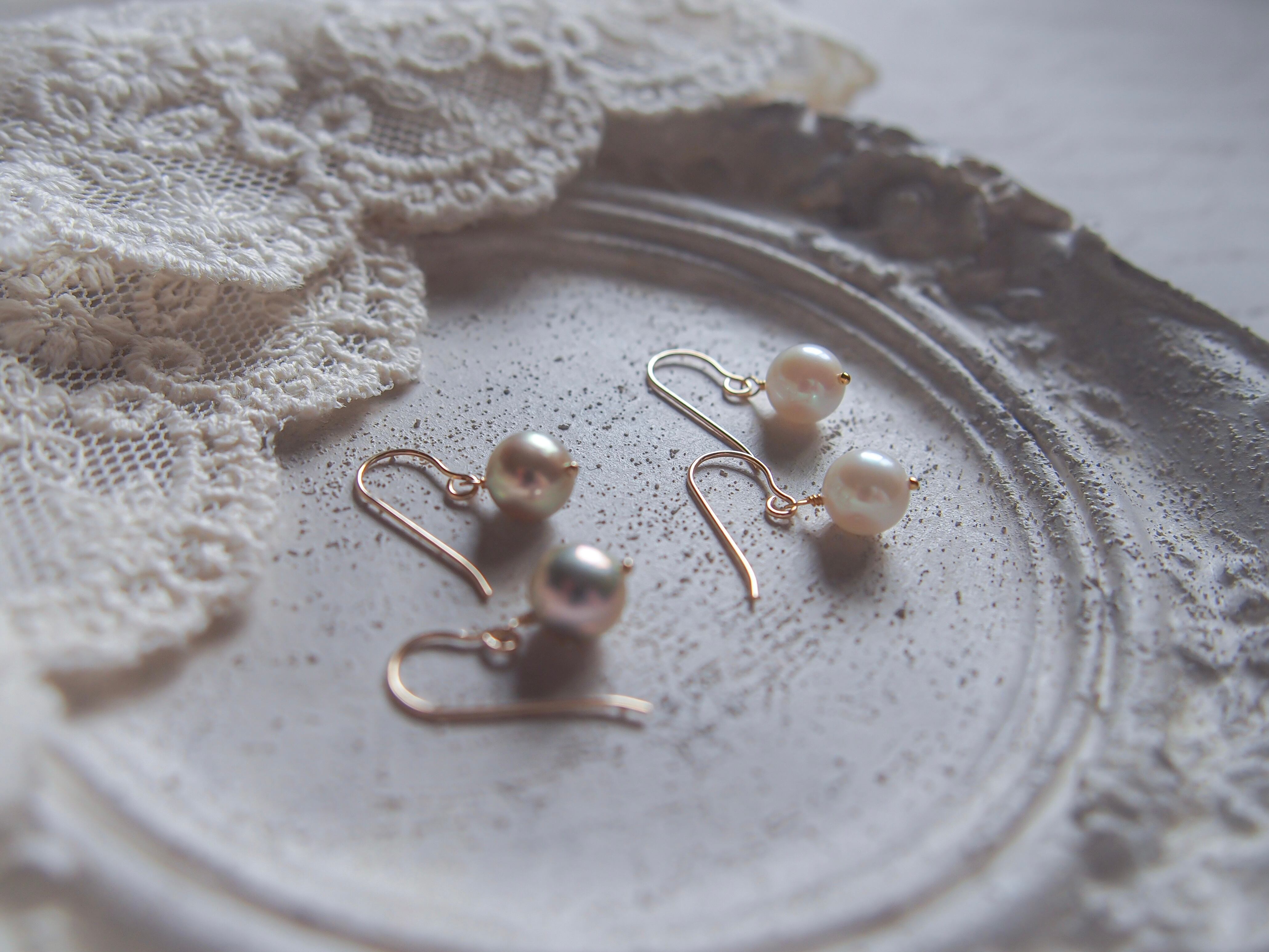 【 petit❤︎akoya 】あこや真珠の一粒ピアス/イヤリング|14kgf あこやパール 6月誕生石|white / greige