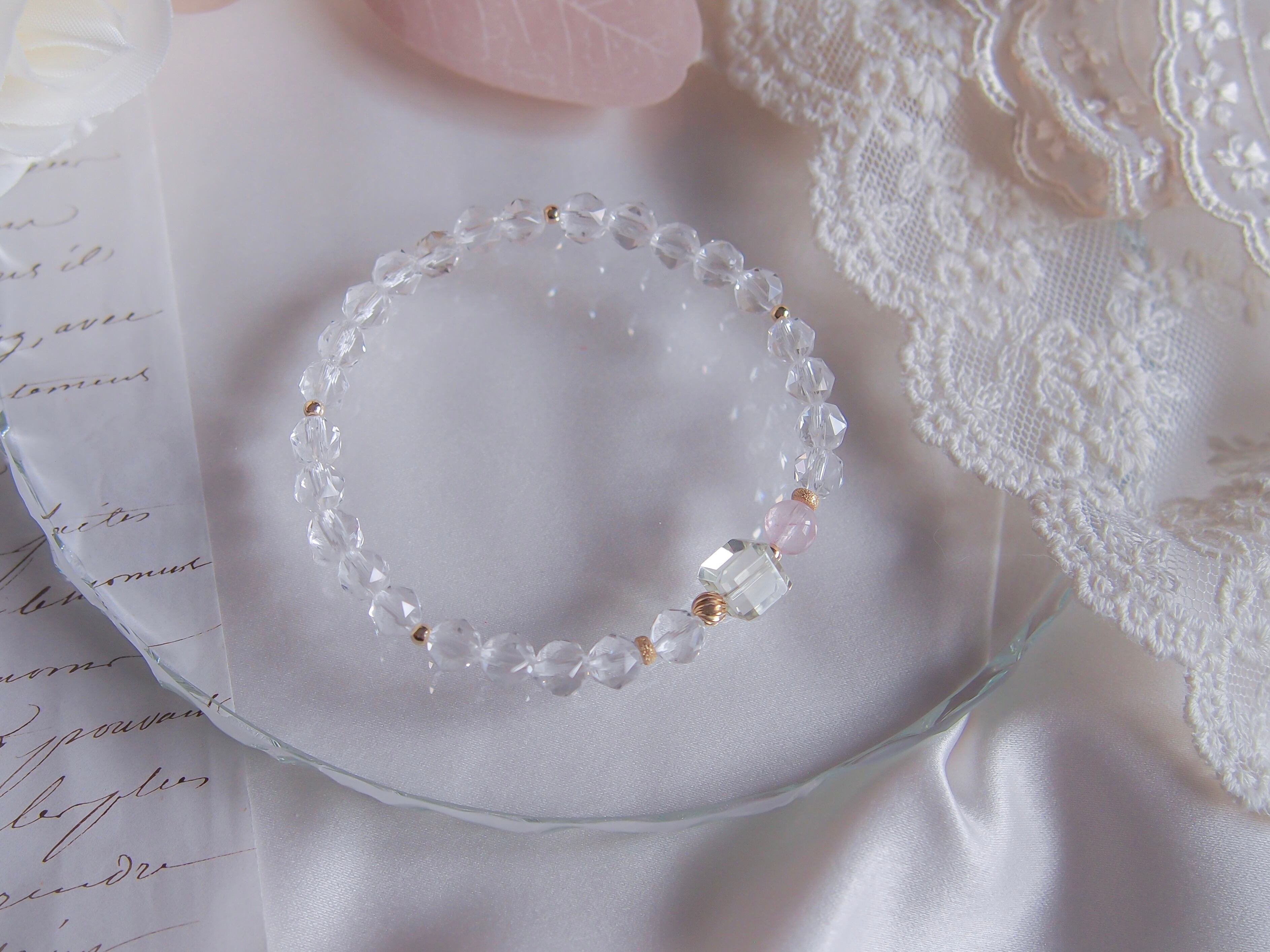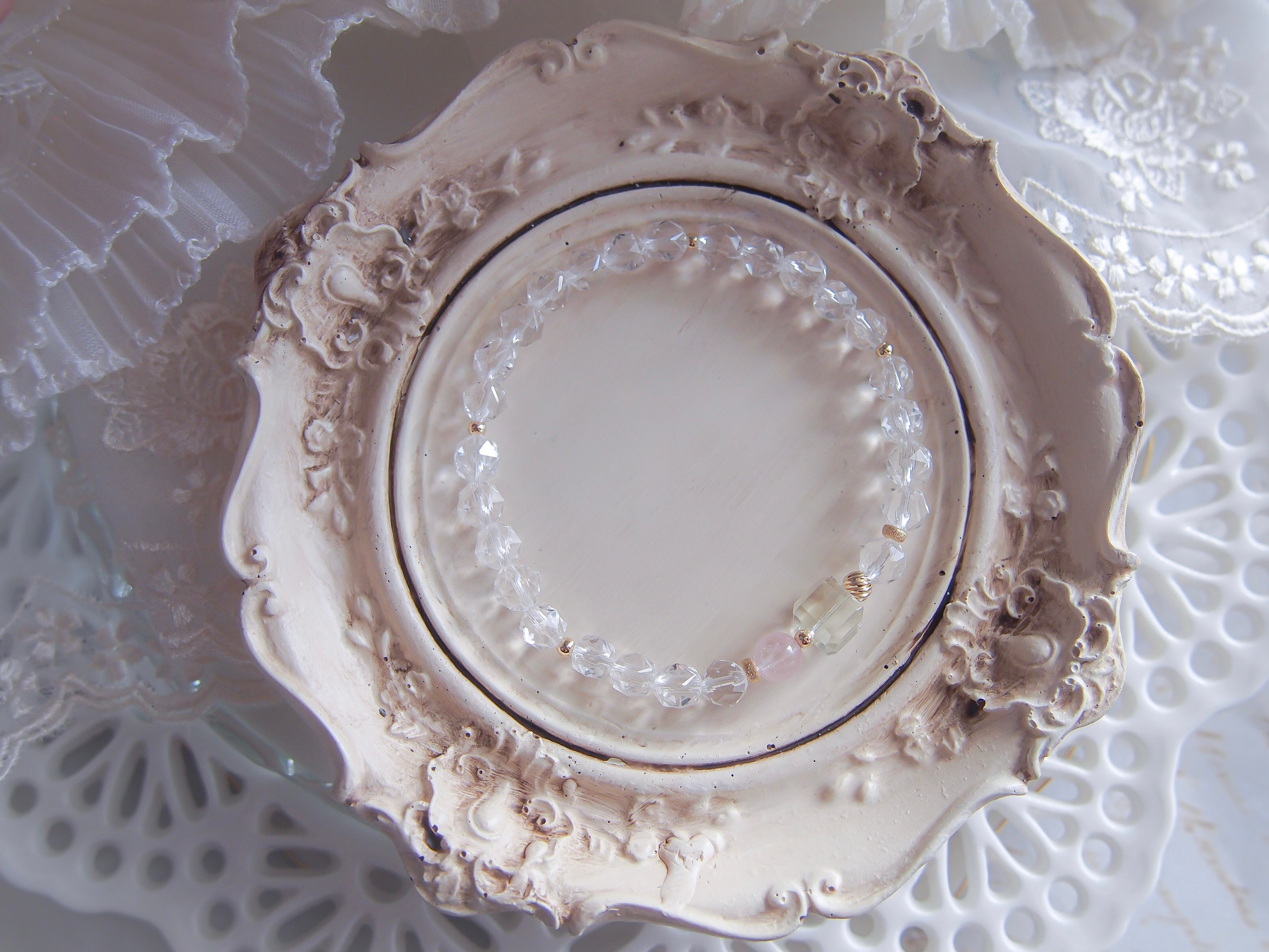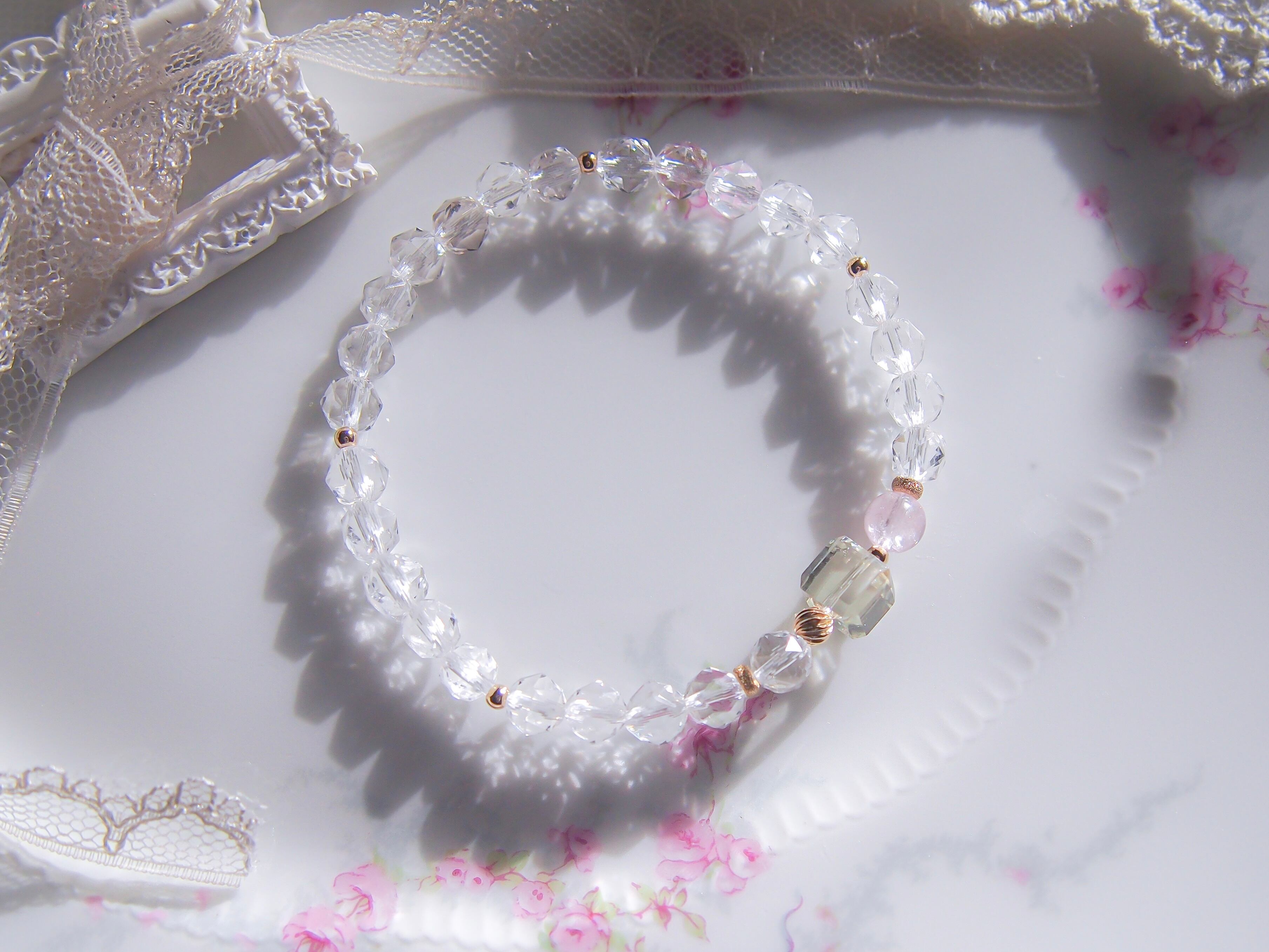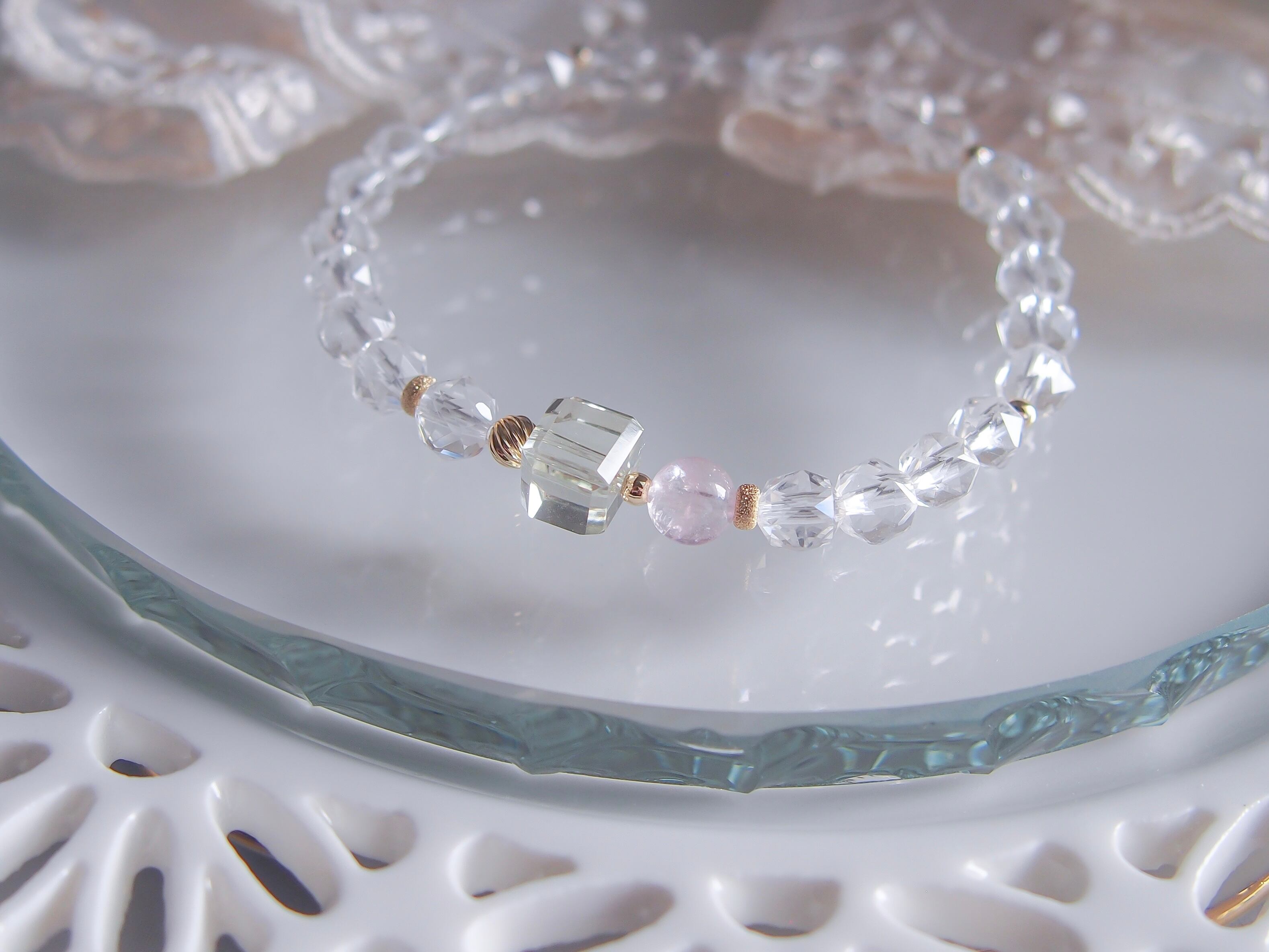 【 illumina ~ Libyan Glass ~ 】一点物 高品質 リビアングラス × モルガナイト × クリスタル水晶 デザインブレスレット|14kgf 天然石