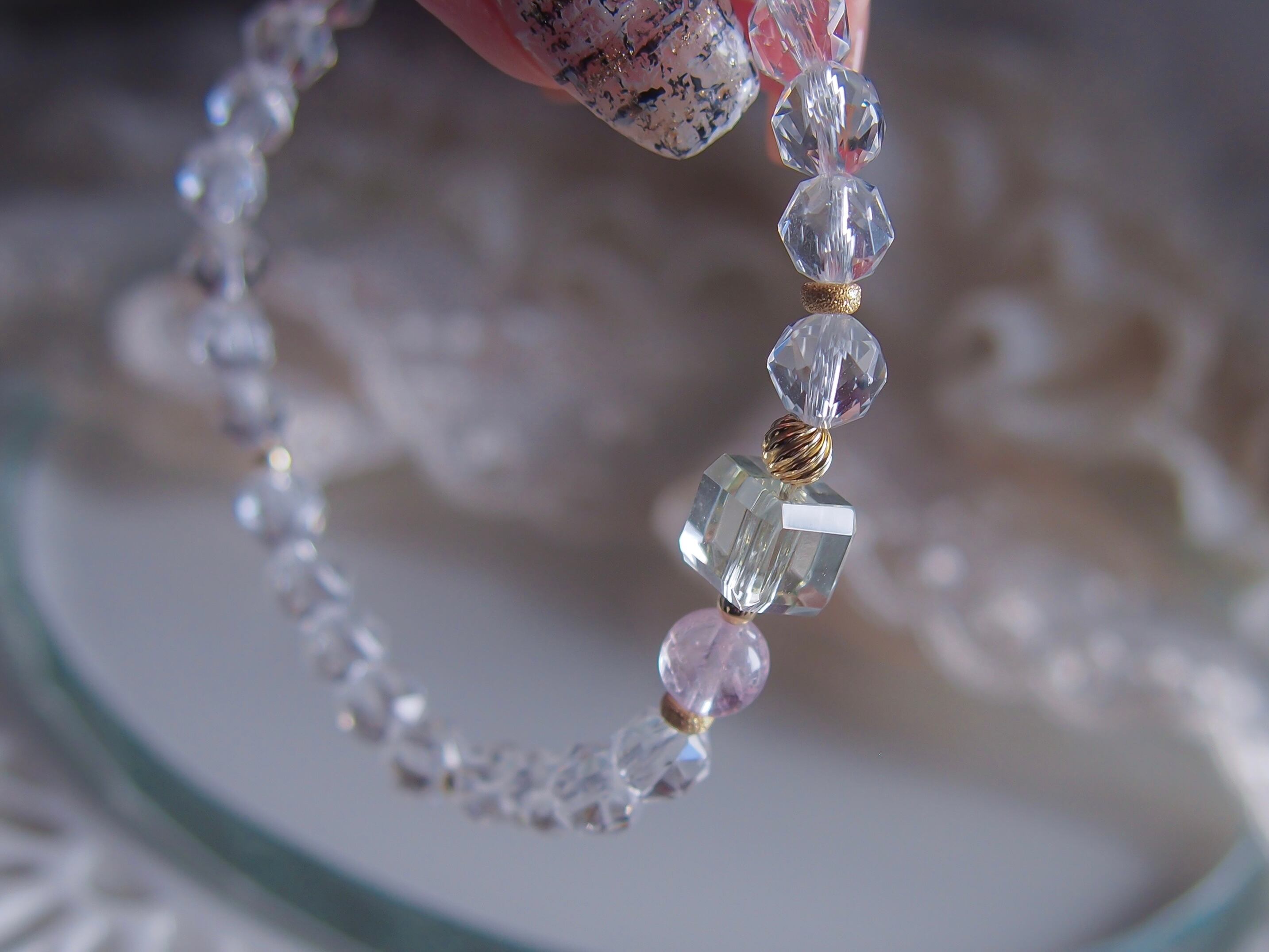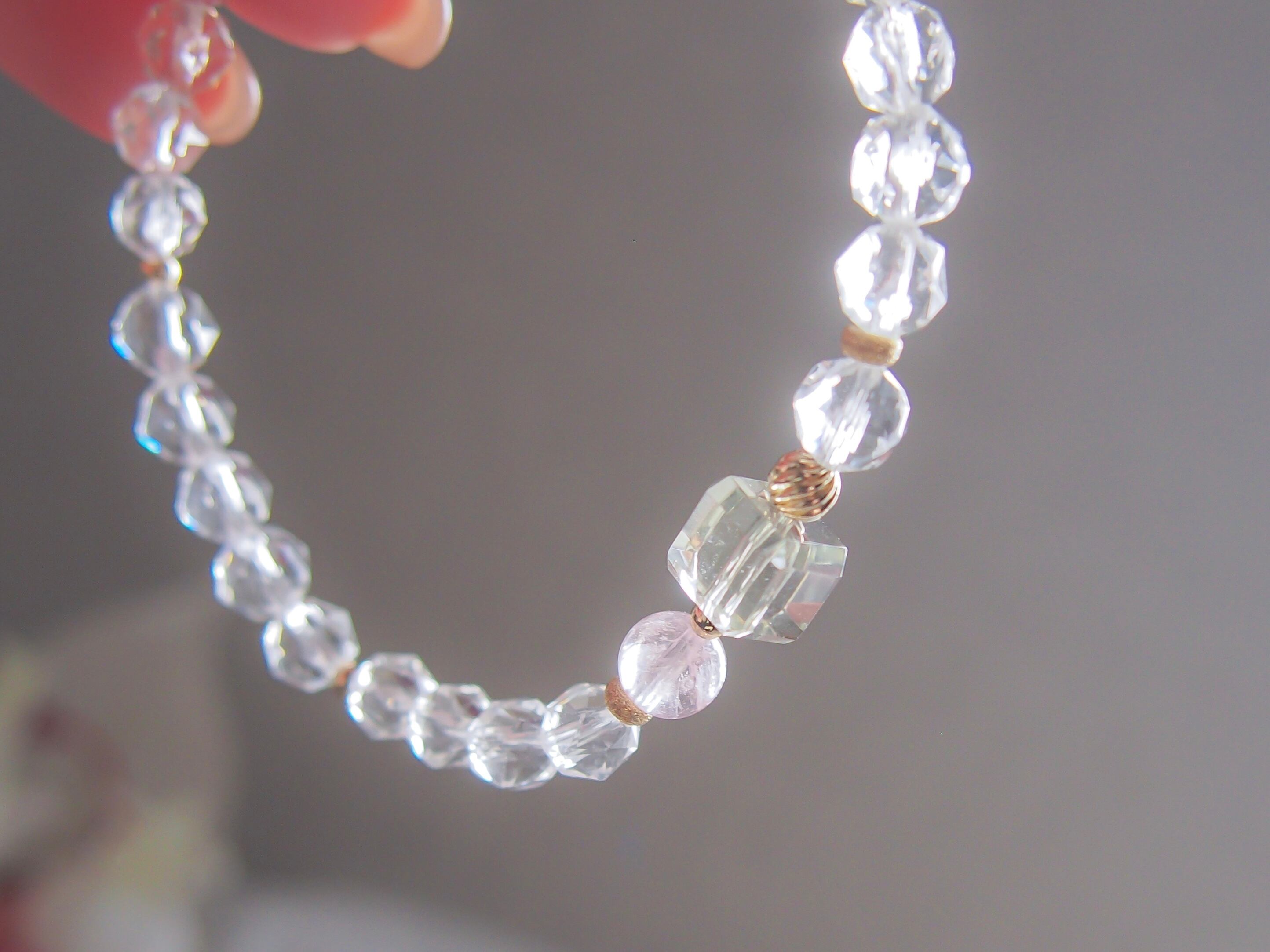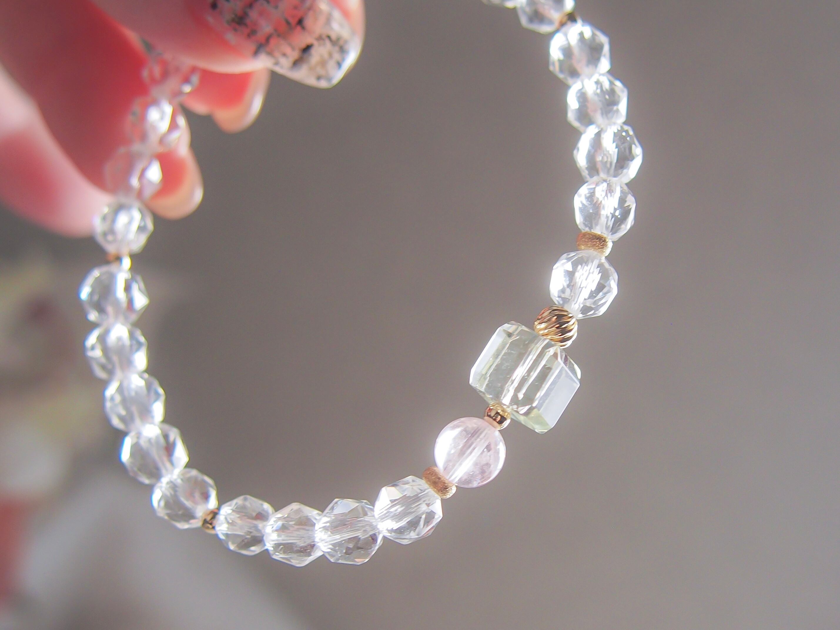 【 illumina ~ Libyan Glass ~ 】一点物 高品質 リビアングラス × モルガナイト × クリスタル水晶 デザインブレスレット|14kgf 天然石