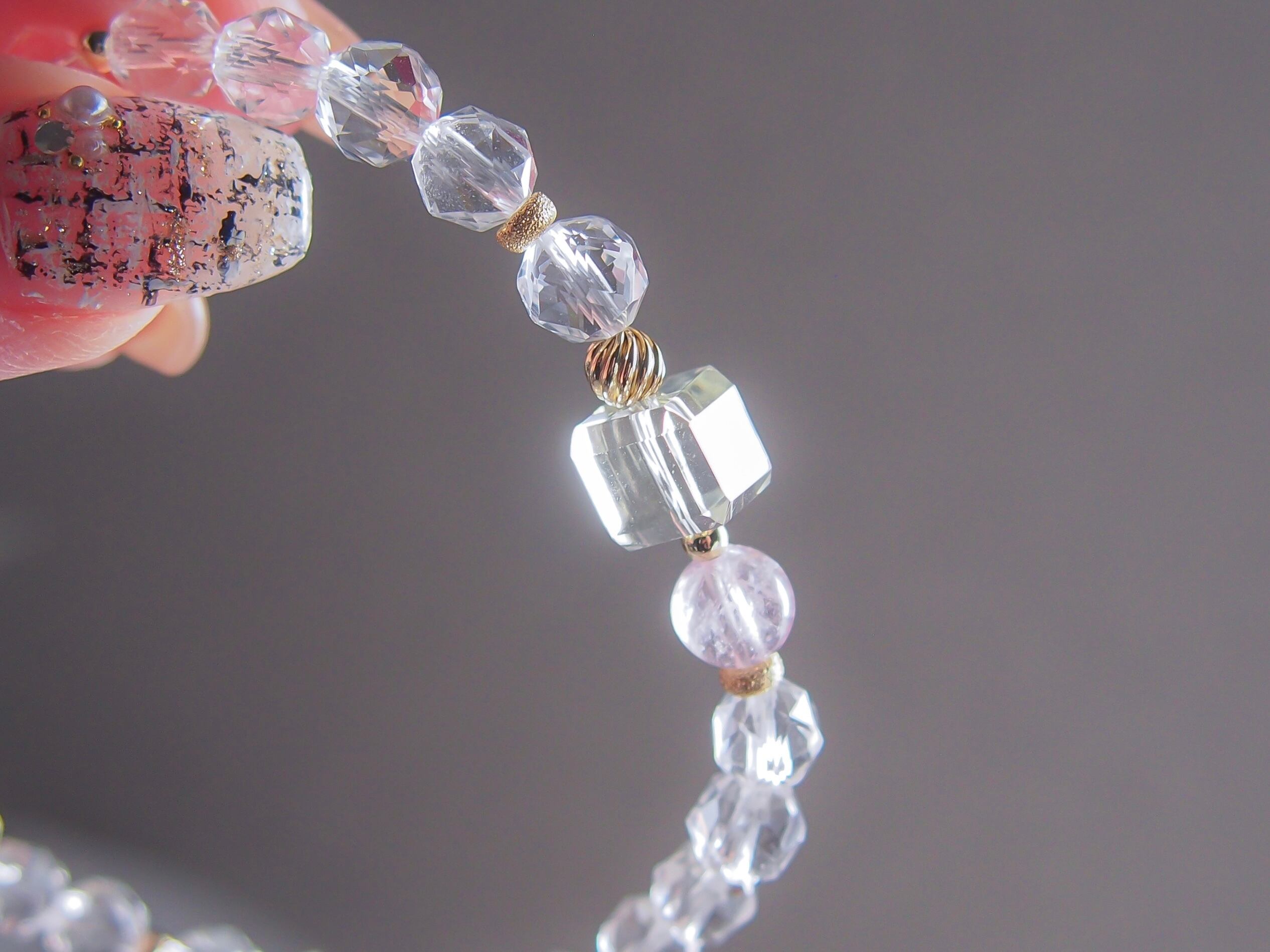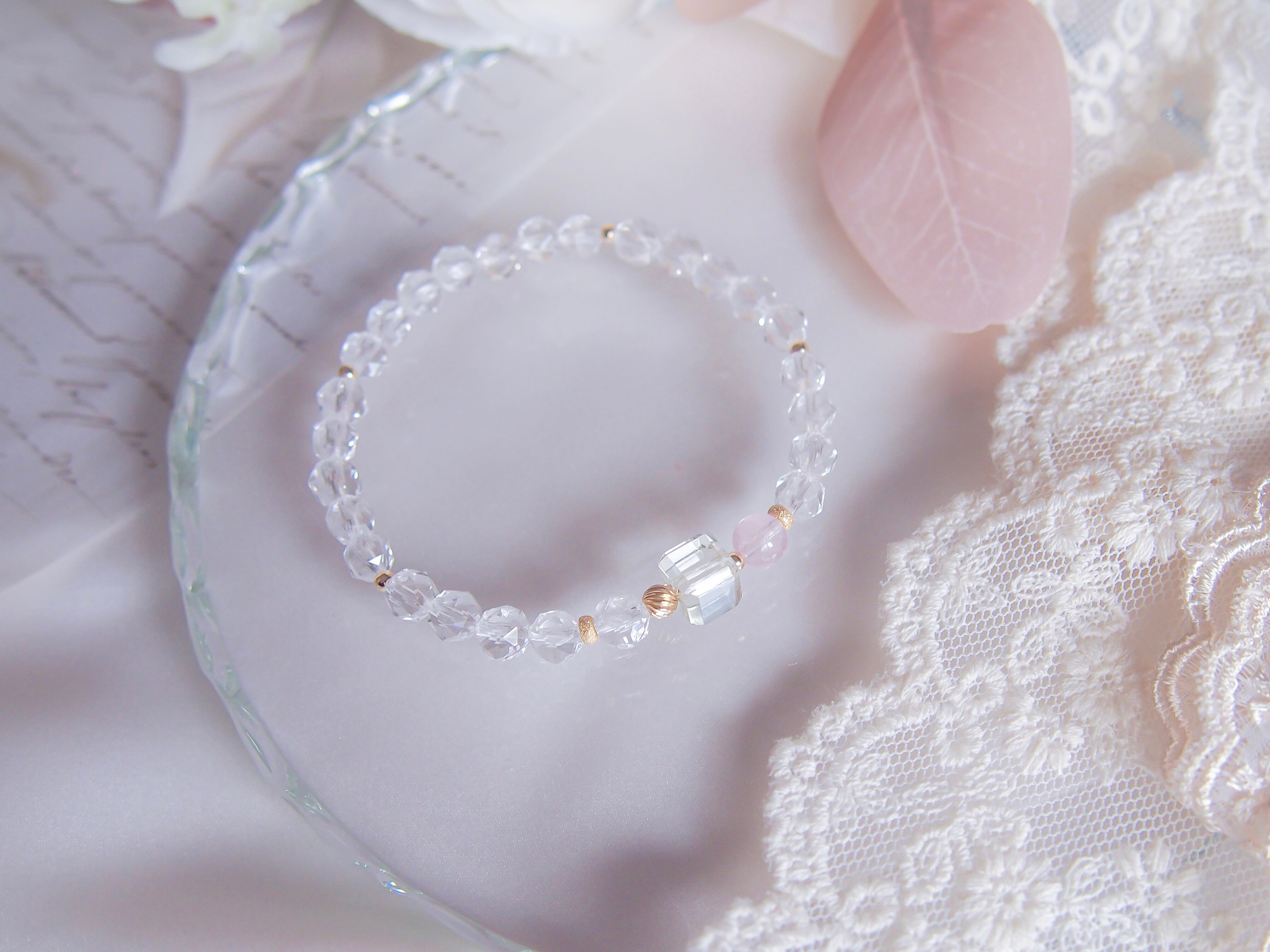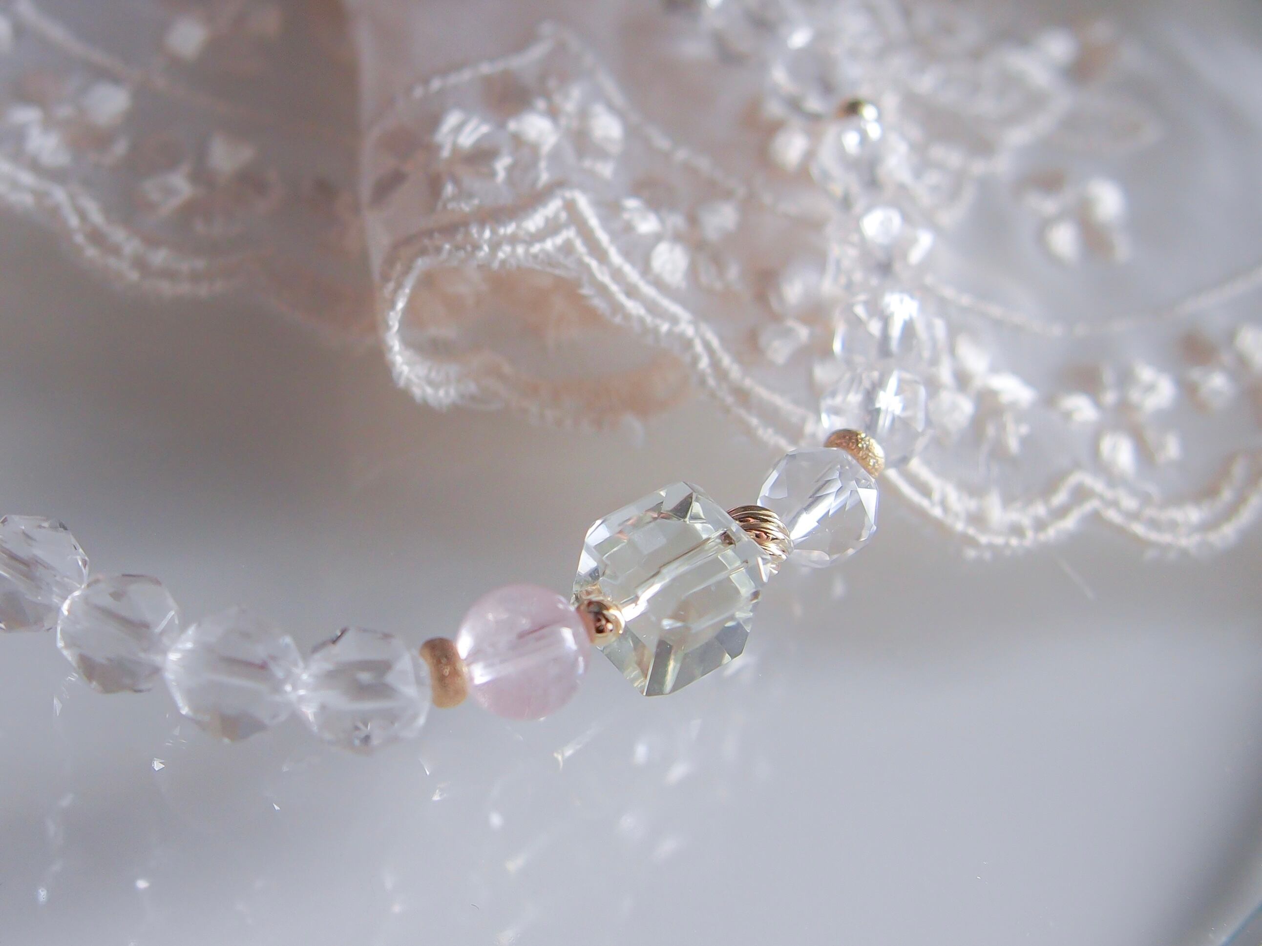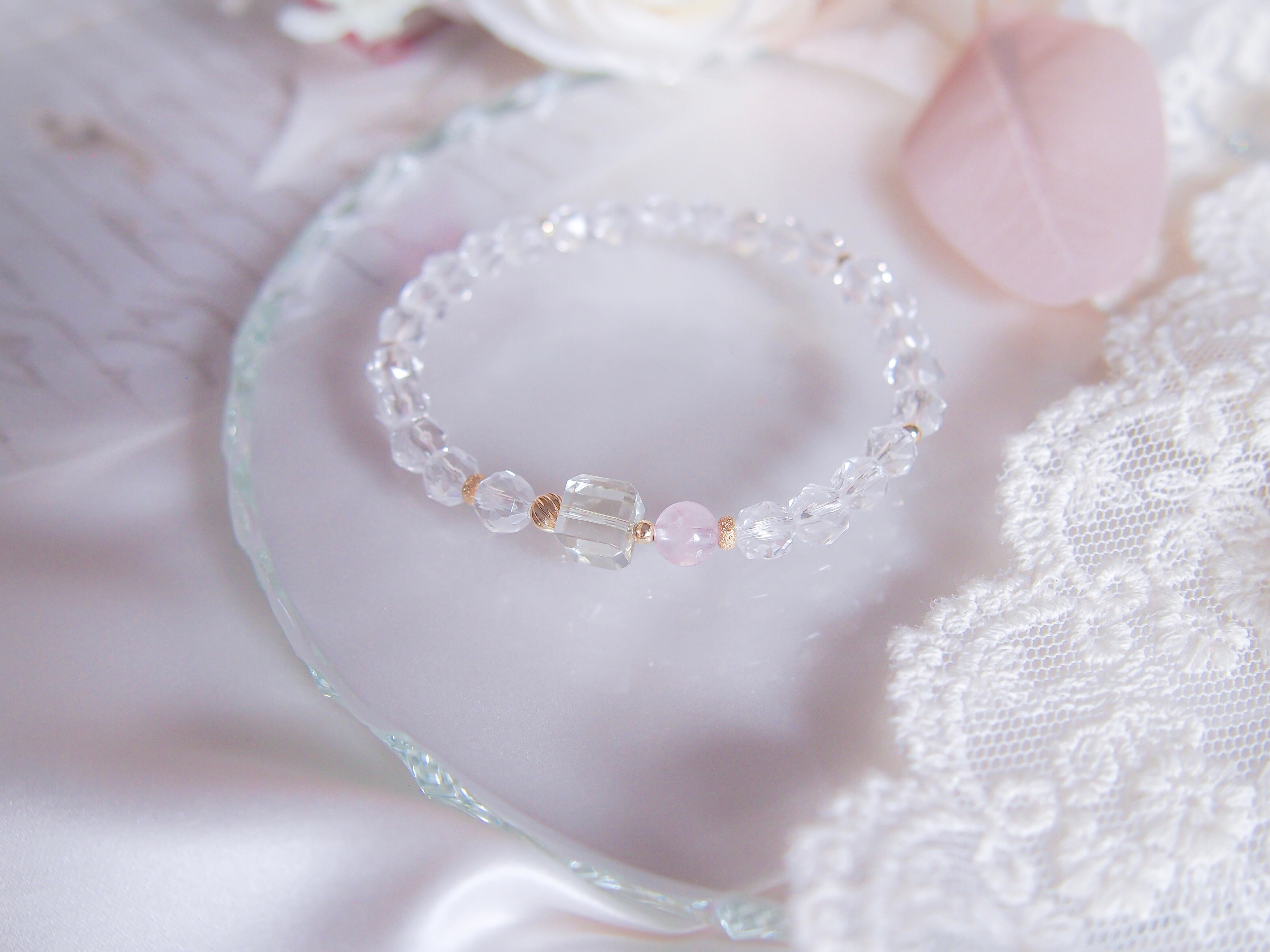 【 illumina ~ Libyan Glass ~ 】一点物 高品質 リビアングラス × モルガナイト × クリスタル水晶 デザインブレスレット|14kgf 天然石