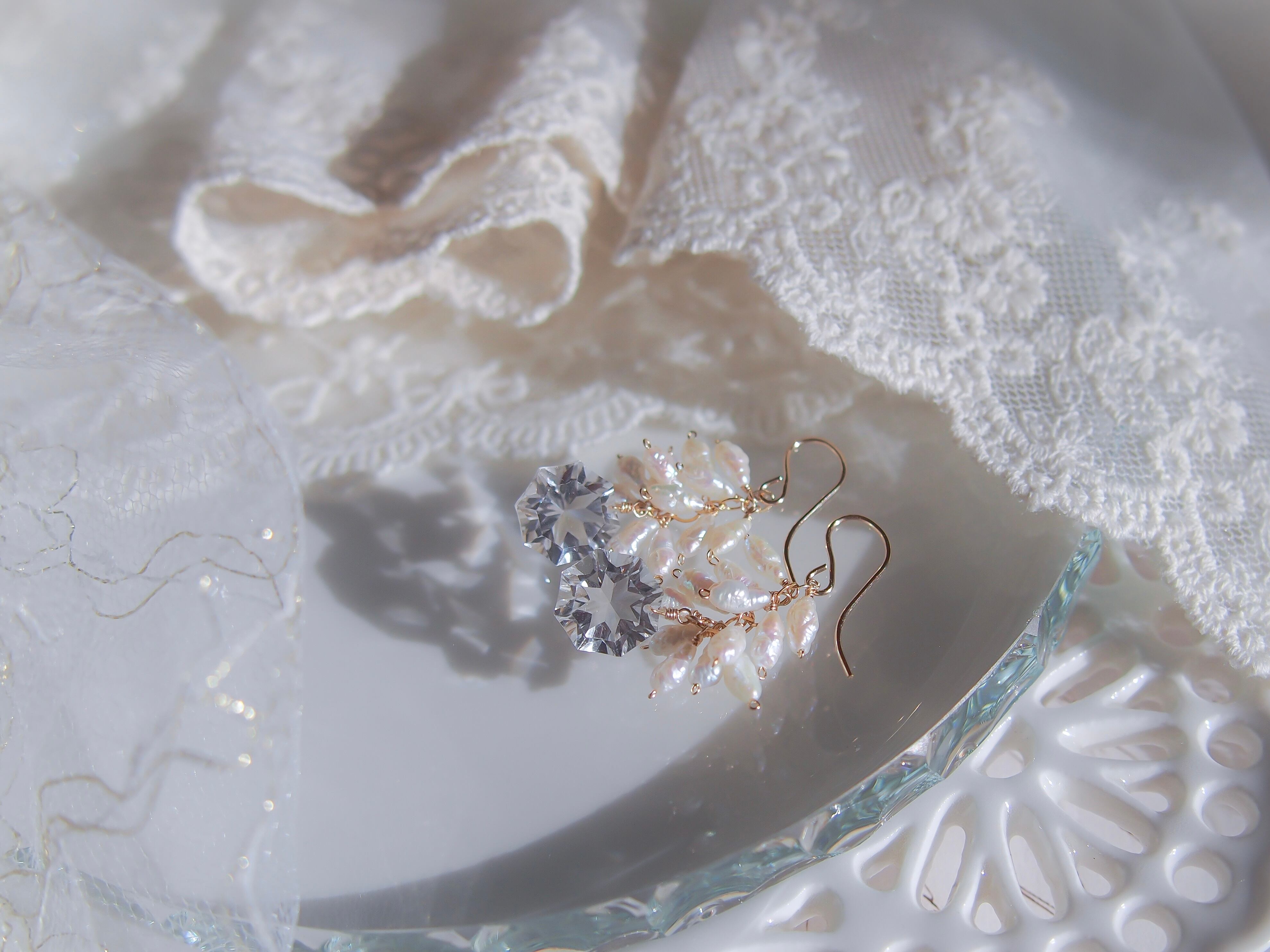 ピュアな透明感たっぷりの耳飾りです。