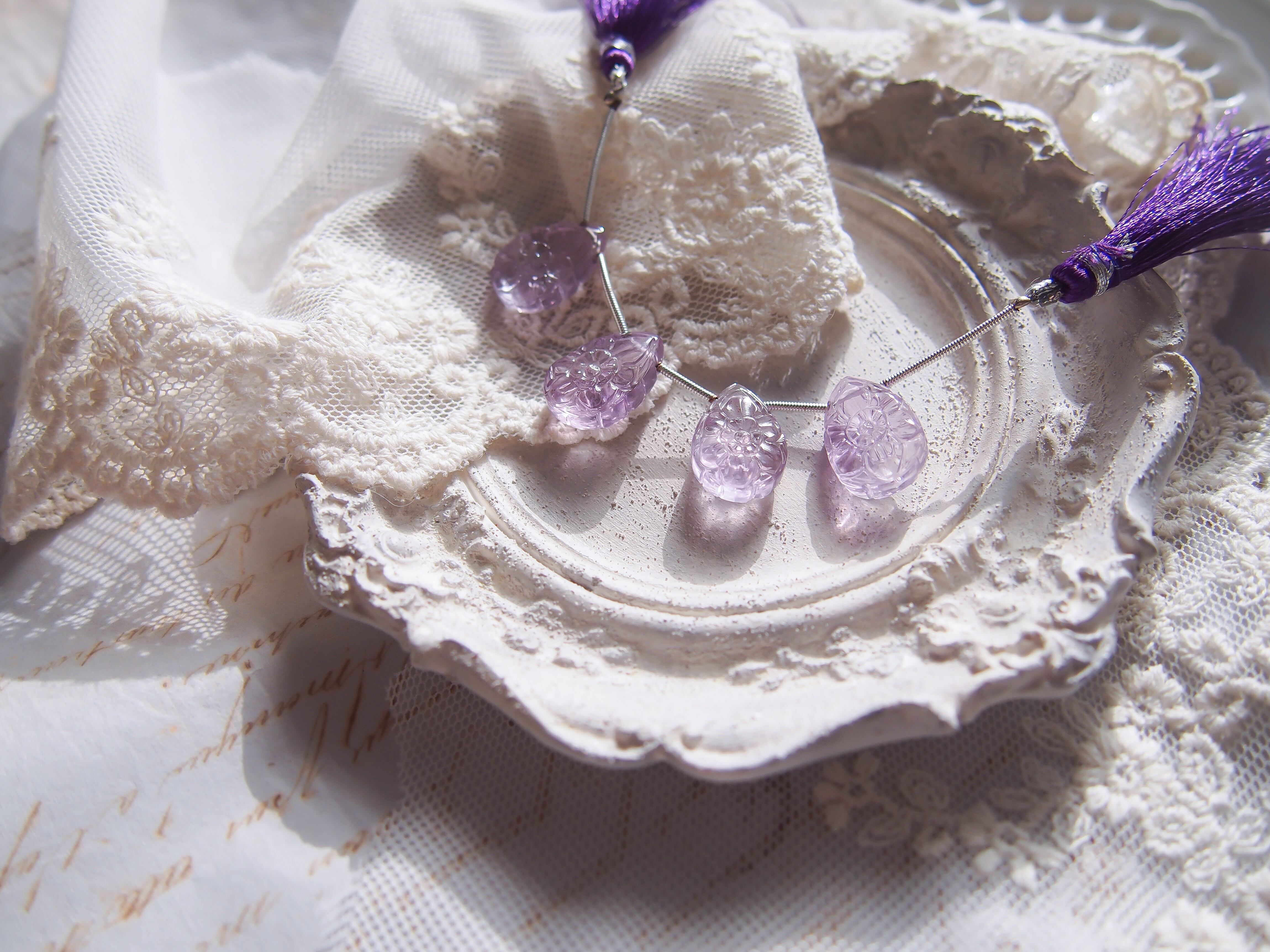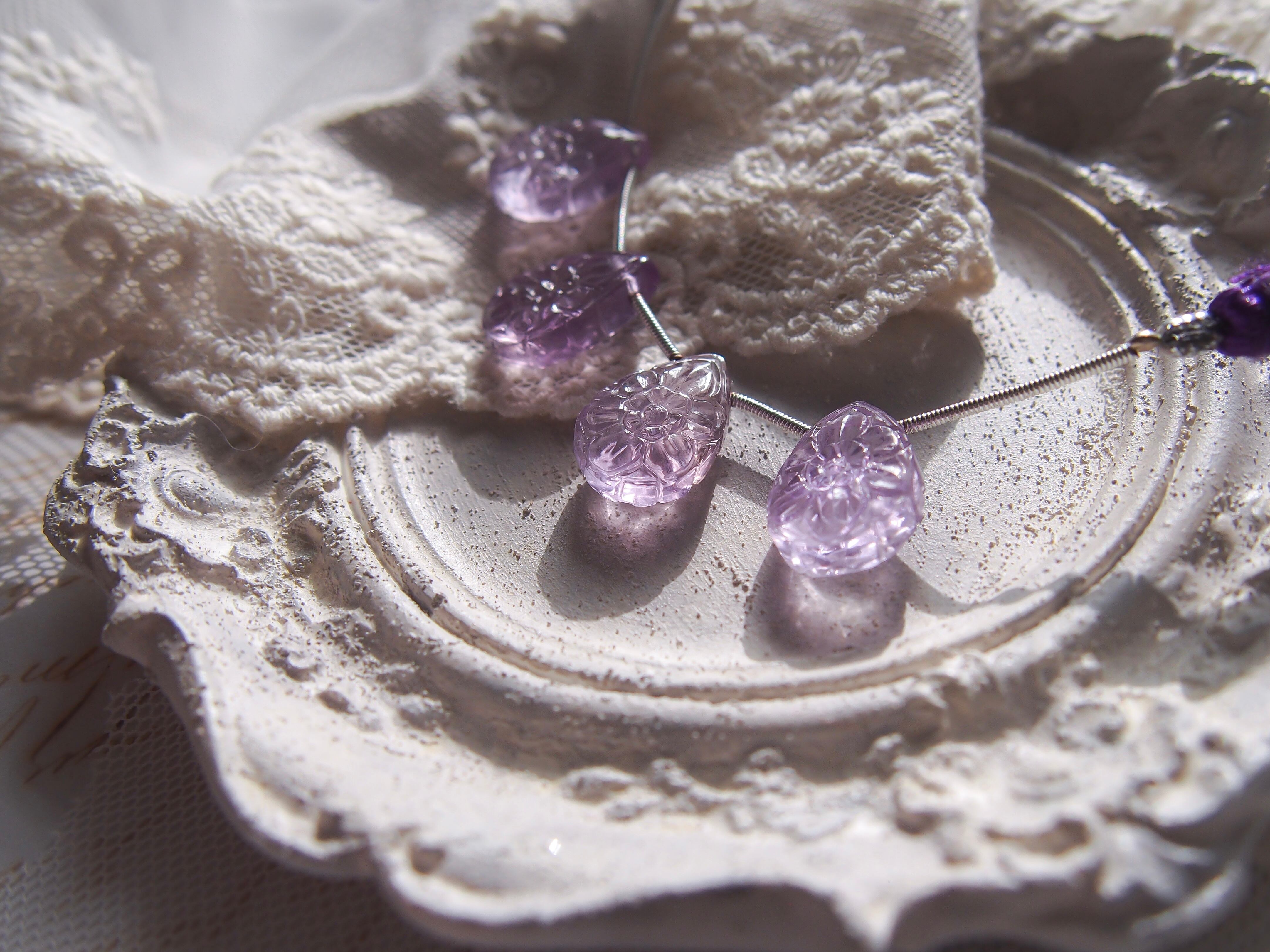 ラベンダーアメジスト 両面カービングビーズ