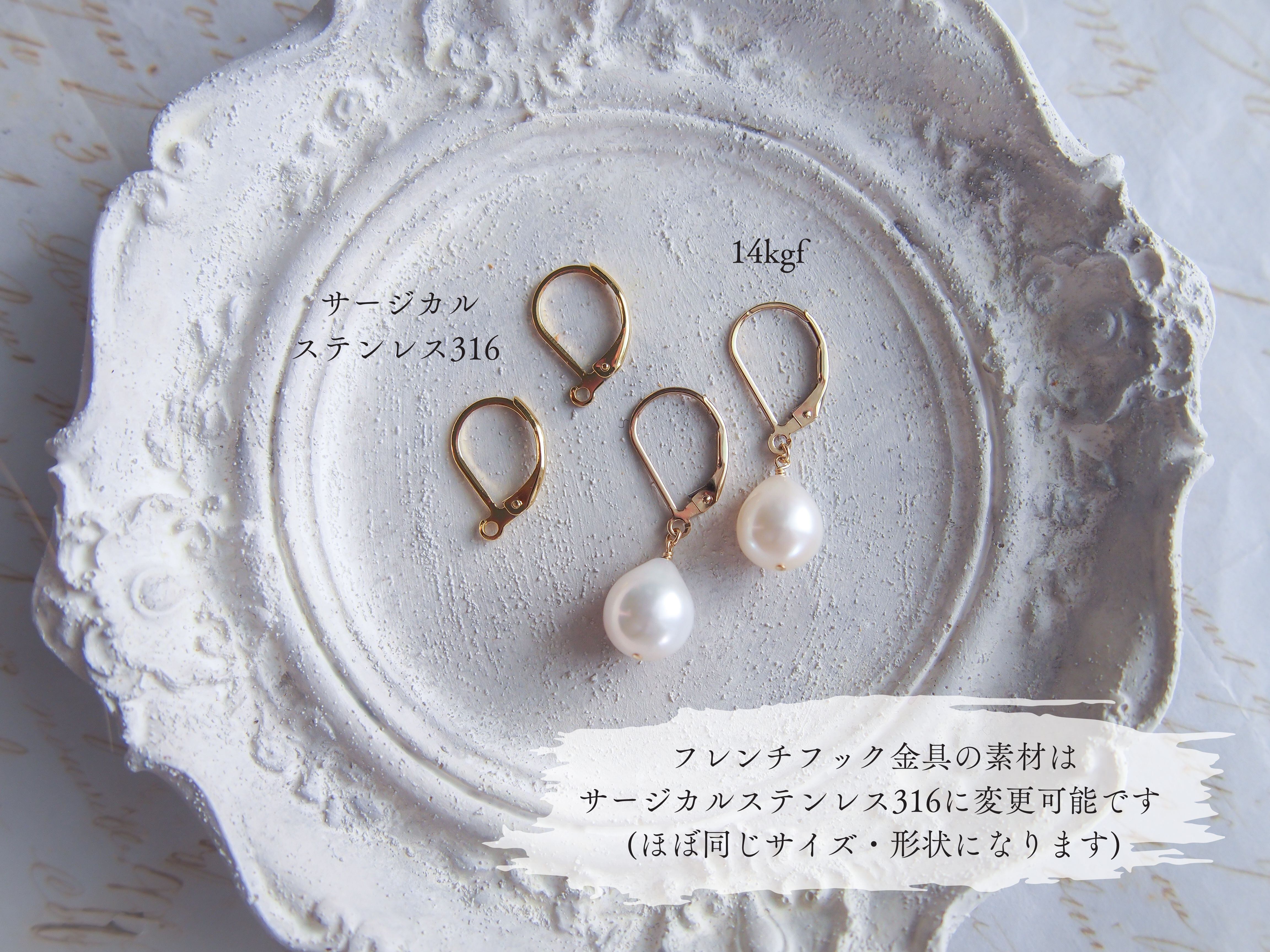 ▸ フレンチフックピアス (14kgf ¥800/サージカルステンレス) or イヤリング を オプションよりお選びいただけます。